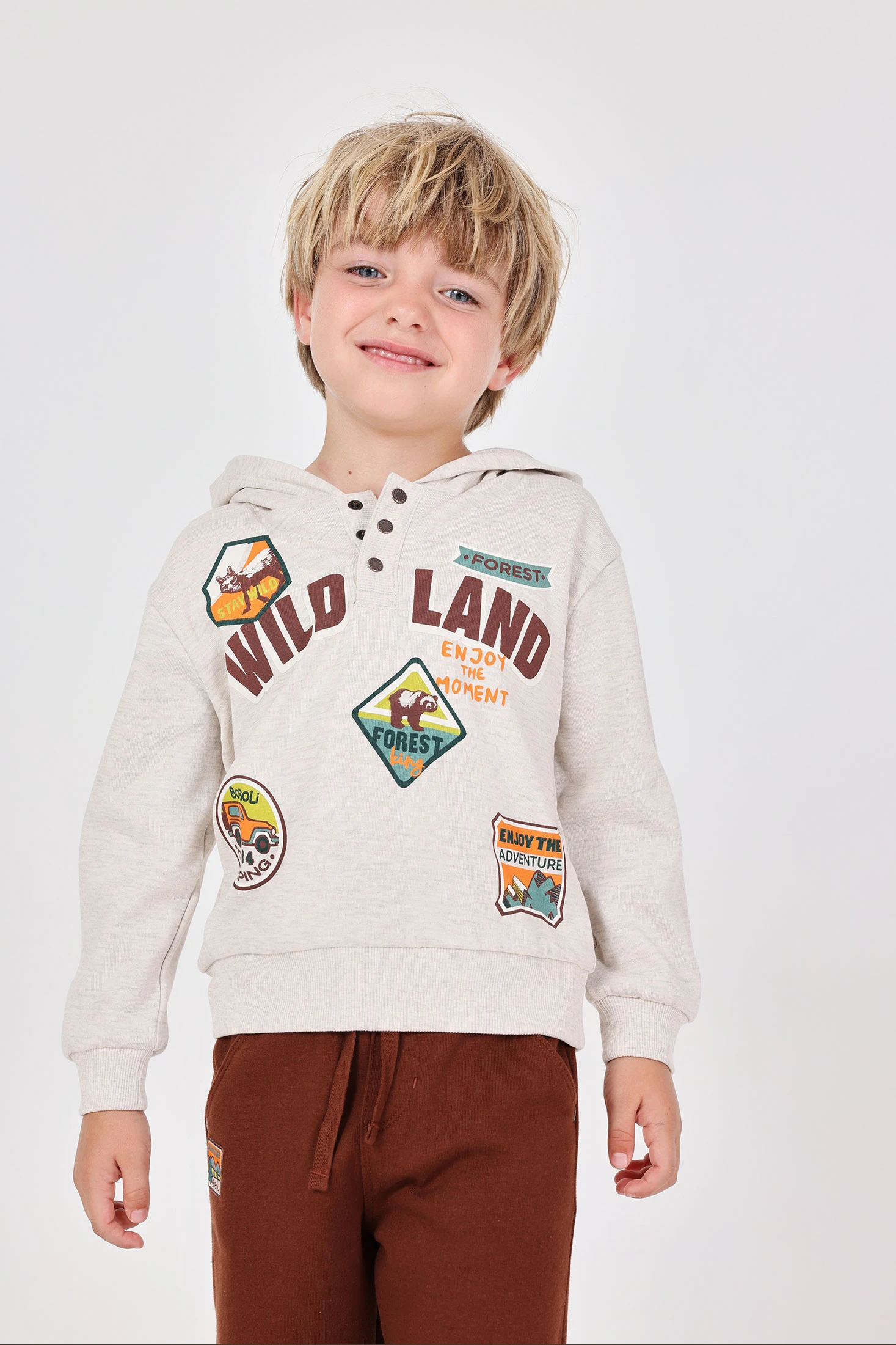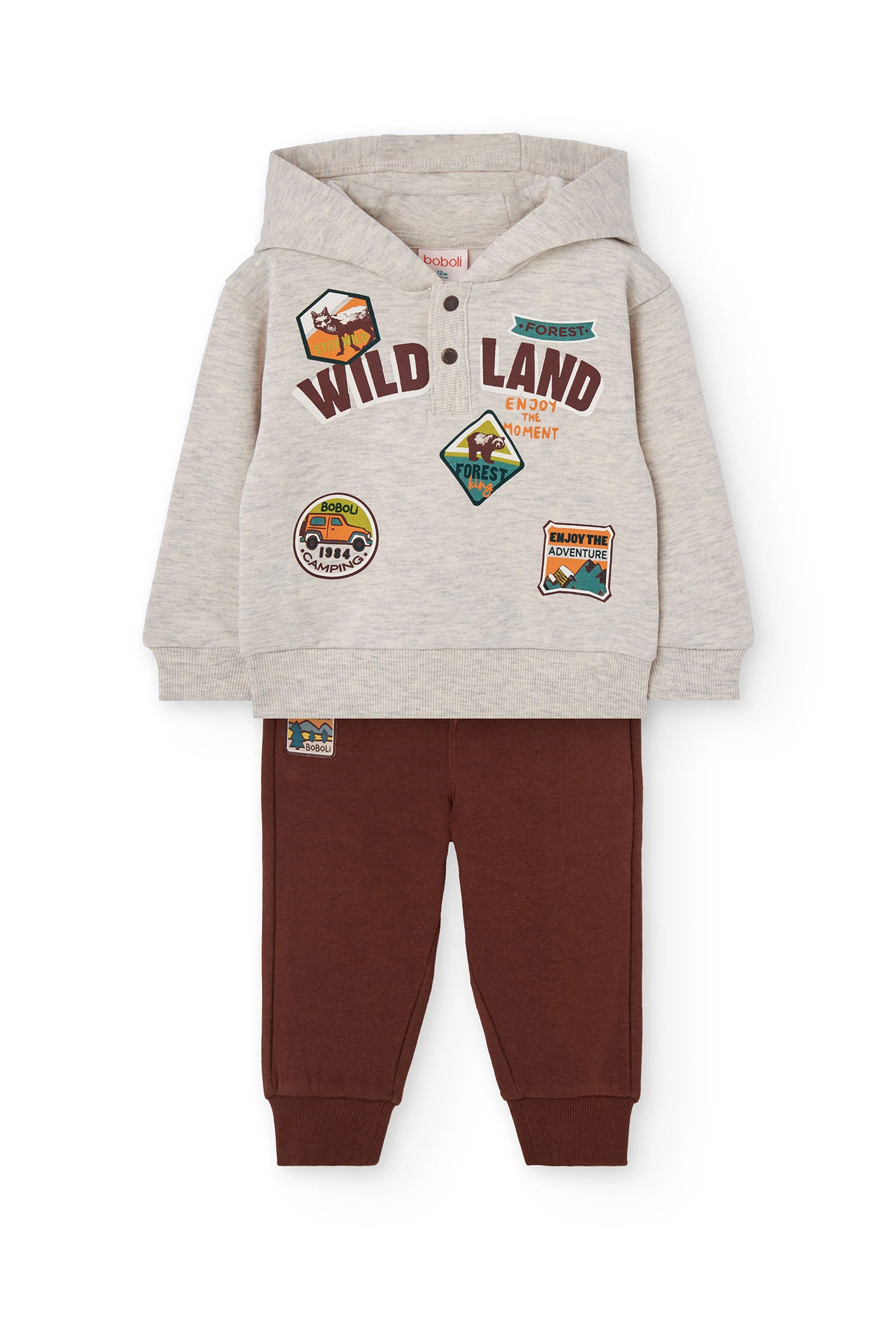 Conjunto de pelfa bege para menino, perfeito para as estações de outono e inverno, é confeccionado com pelfa macia que proporciona conforto e aquecimento ao pequeno em todos os momentos. Inclui um jersey e umas calças que combinam perfeitamente com casacos e acessórios em tons neutros, proporcionando um estilo clássico e versátil. Disponível em tamanhos de 12 meses a 10 anos, é uma escolha ideal tanto para o dia a dia como para ocasiões especiais.