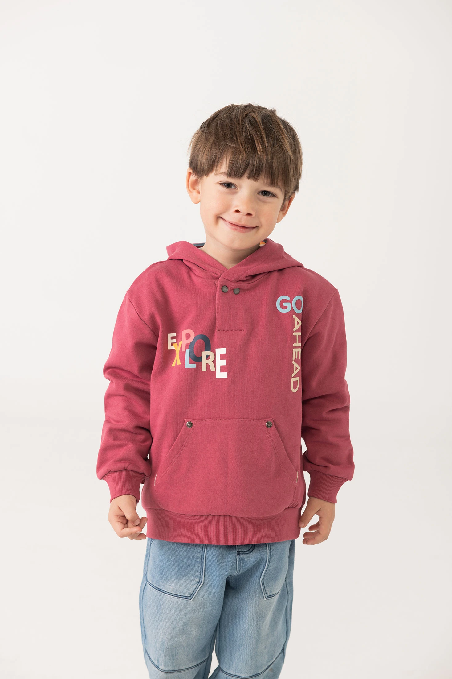 Sweatshirt em felpa grená para menino, opção quente e acolhedora, ideal para as estações de outono e inverno. Fabricada em felpa de alta qualidade, garante conforto e durabilidade em cada uso, mantendo o teu pequeno aquecido durante as atividades diárias. A sua encantadora tonalidade rosa torna-a numa peça ideal para combinar com jeans, calças ou calças desportivas, aportando um toque de estilo e originalidade. Disponível em tamanhos que vão desde os 12 meses até os 10 anos, é uma escolha perfeita para renovar o guarda-roupa do teu filho com moda e funcionalidade.