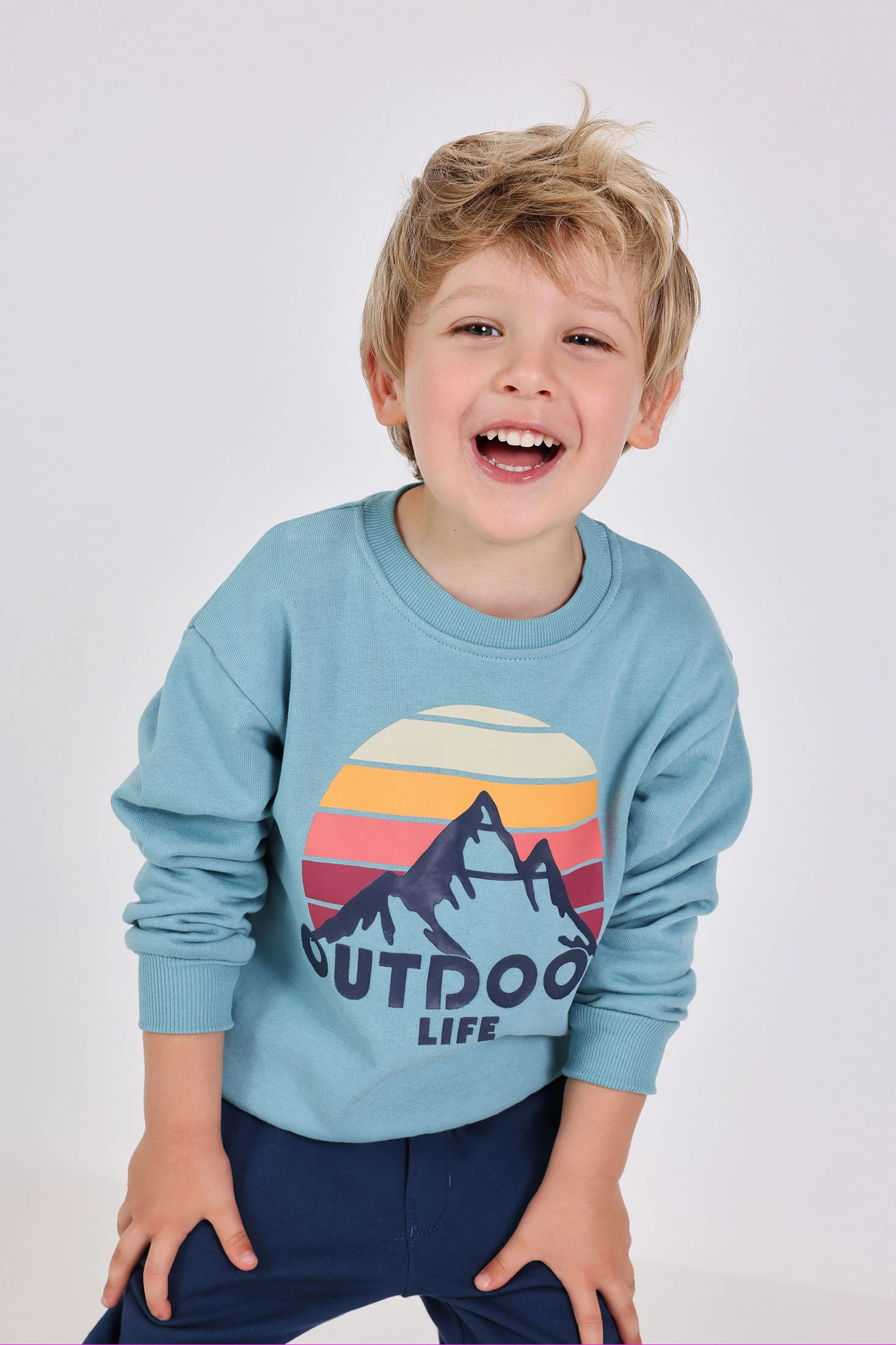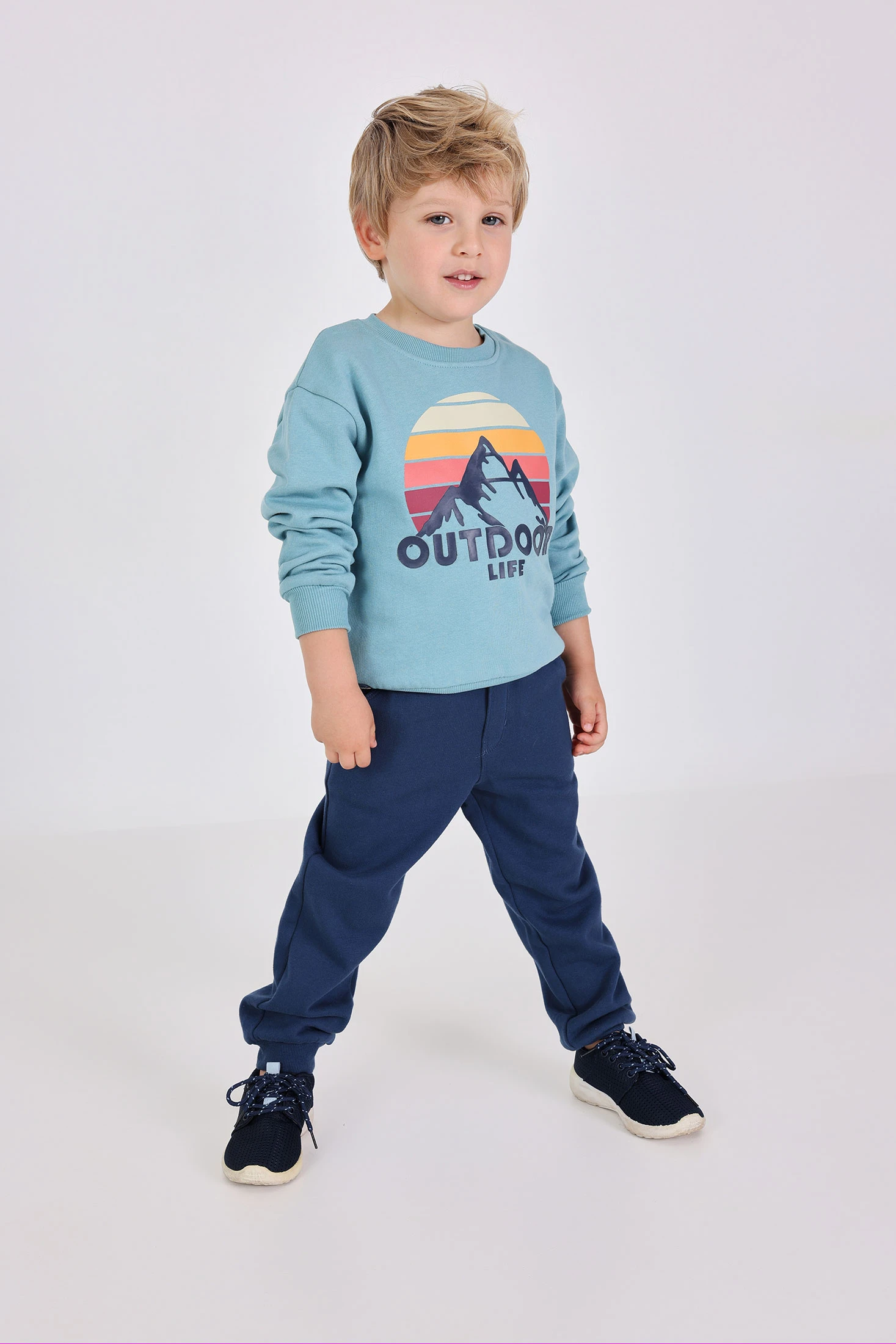 Conjunto menino felpa paisagem montanhosa verde