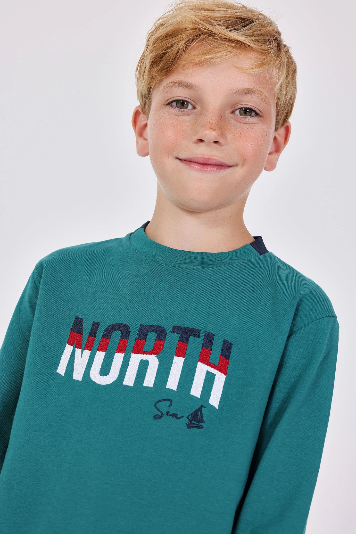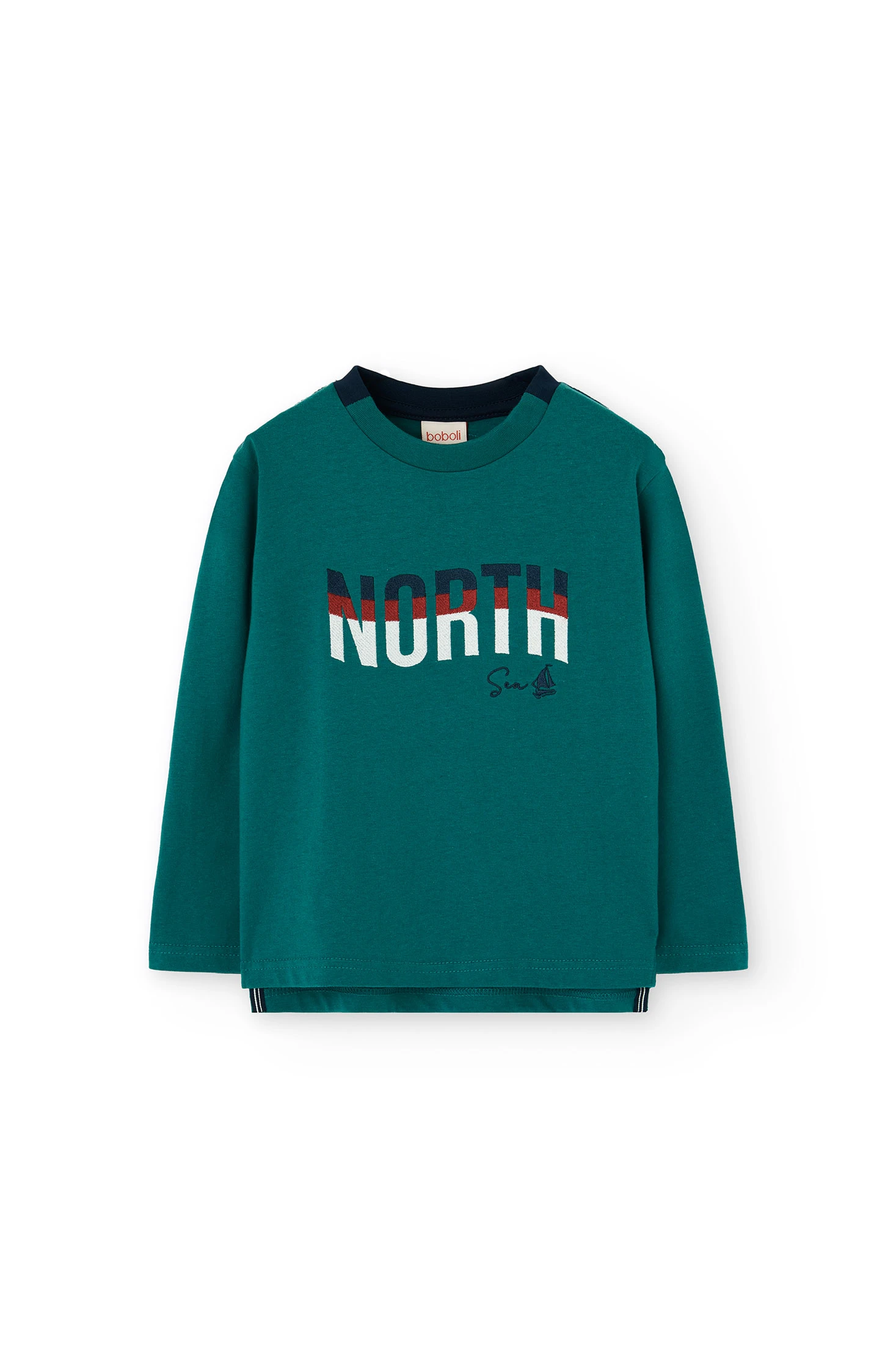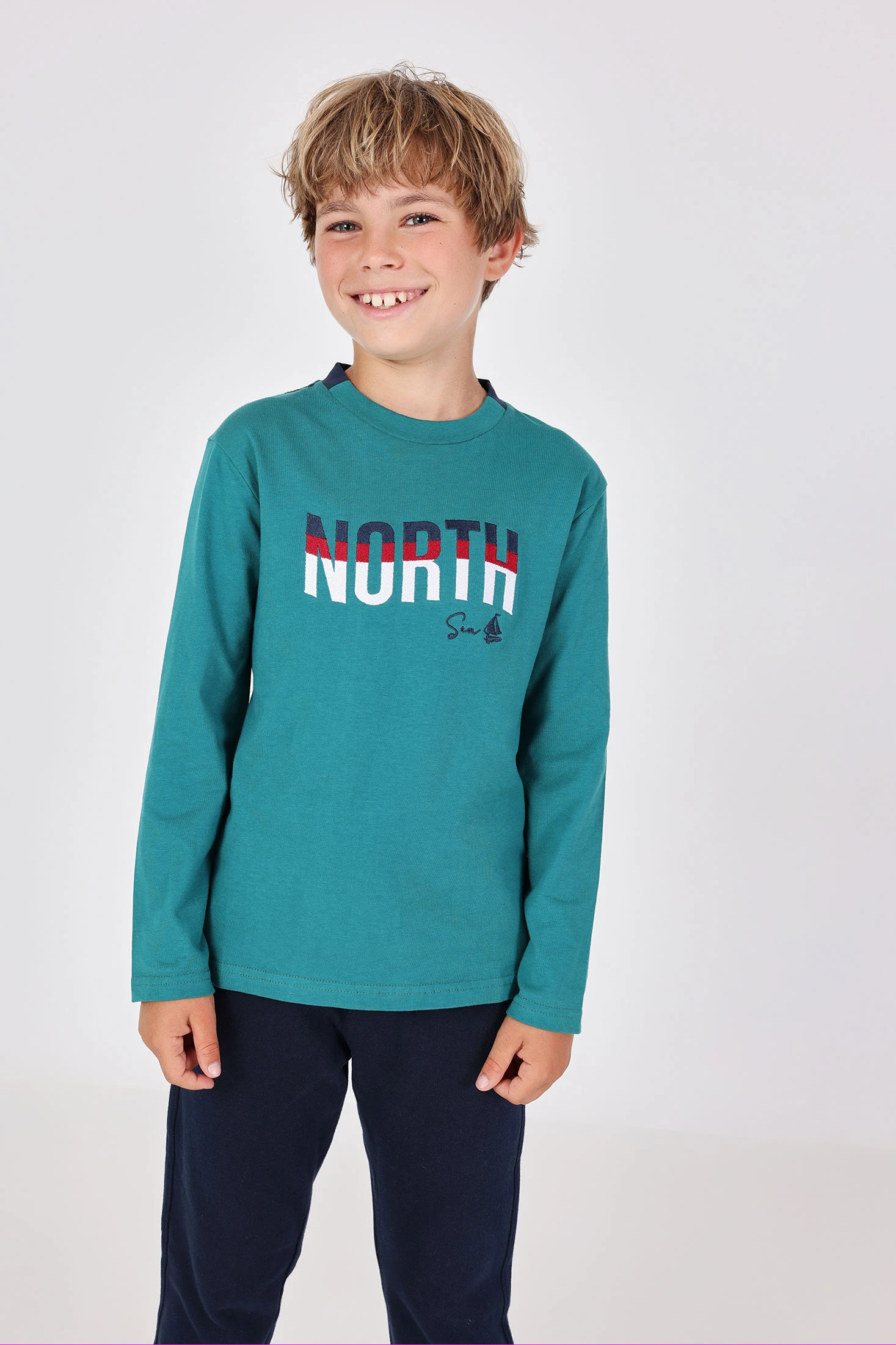 Camisola de manga comprida para menino, confeccionada num tecido suave que garante conforto diário. A cor verde intenso apresenta o design "NORTH" na frente, trazendo um toque aventureiro. A gola redonda oferece um ajuste descontraído, ideal para o crescimento. Fácil de combinar com calças casuais ou jeans, está disponível em tamanhos de 2 a 14 anos. Uma opção versátil e aconchegante para manter o estilo no outono e inverno.