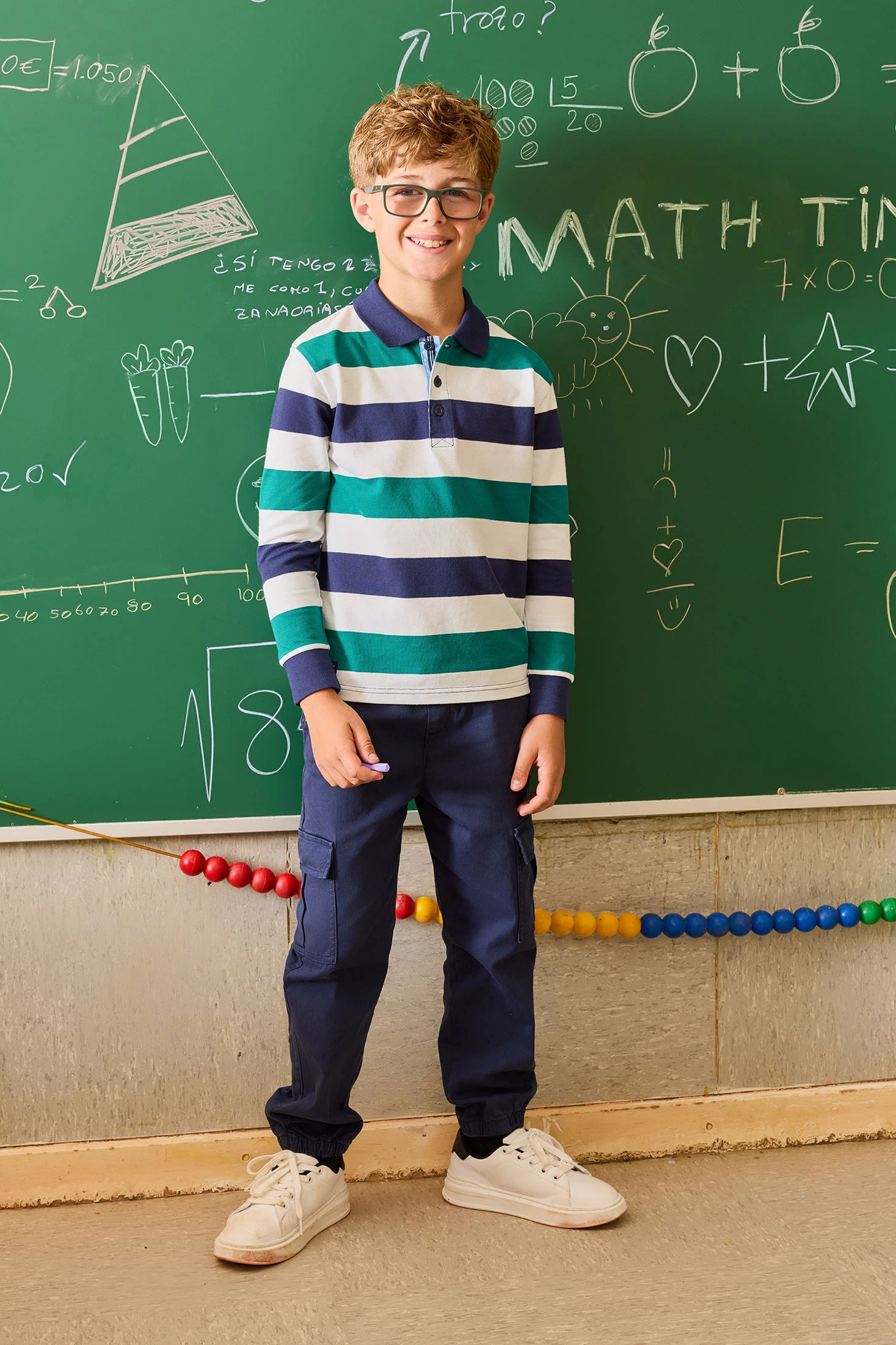 Calças de algodão azul marinho para menino, desenhadas para oferecer conforto e estilo no dia-a-dia. Proporcionam flexibilidade e resistência, perfeitas para as aventuras diárias. A cintura tem opção de ajuste para um encaixe confortável e seguro. Disponíveis em tamanhos de 2 a 14 anos, são ideais para combinar com camisetas, camisas ou sweatshirts, adequadas para qualquer estação. Uma peça versátil que complementa tanto conjuntos informais como mais formais para atividades escolares ou eventos familiares.