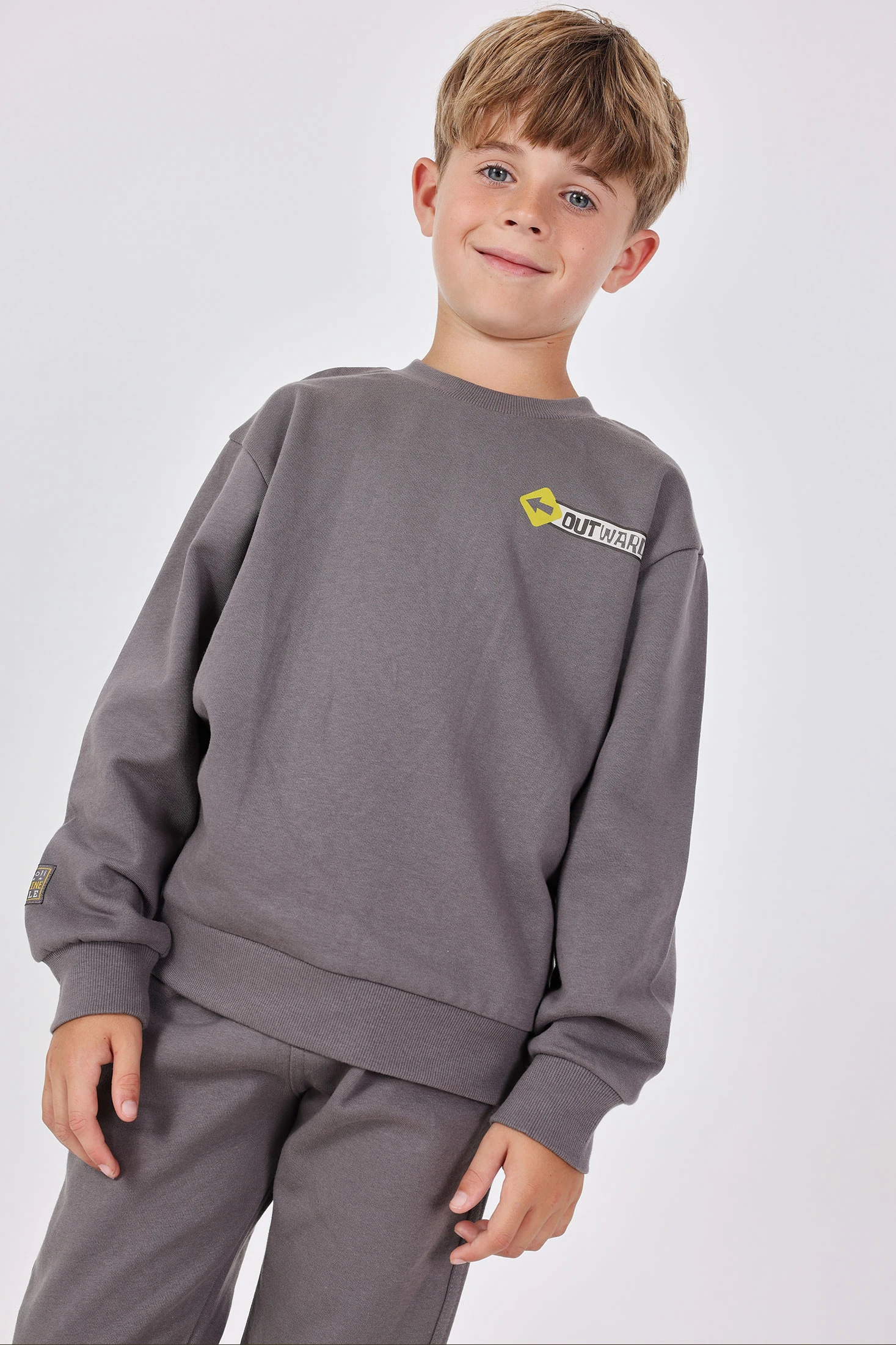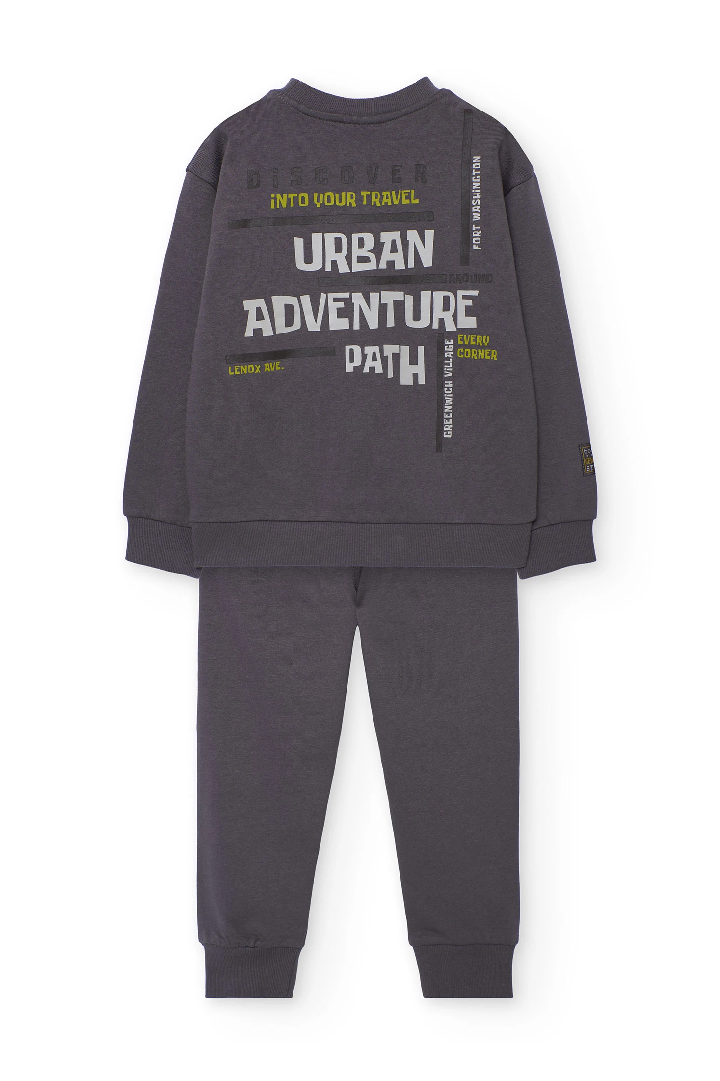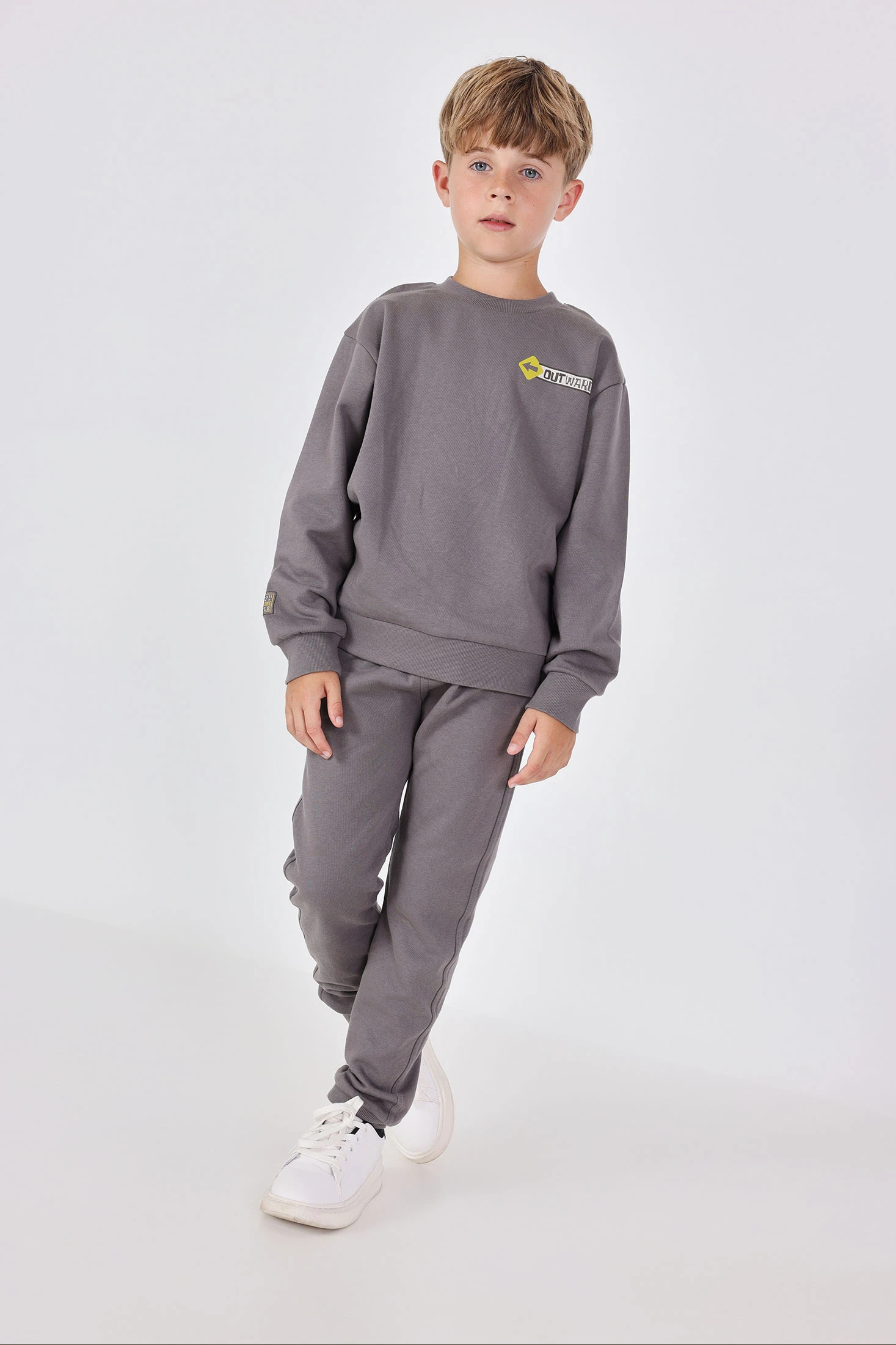 Conjunto de felpa cinzenta para menino ideal para as estações de outono e inverno, oferecendo calor e conforto. Inclui uma camisola de gola redonda e calças compridas, ambos num sofisticado tom cinzento escuro. O seu design moderno permite combinações fáceis com casacos e ténis, proporcionando um look completo e elegante. Disponível em tamanhos de 2 a 14 anos, é perfeito para manter o calor nos dias frios, sendo uma opção prática e estilosa para qualquer ocasião casual.