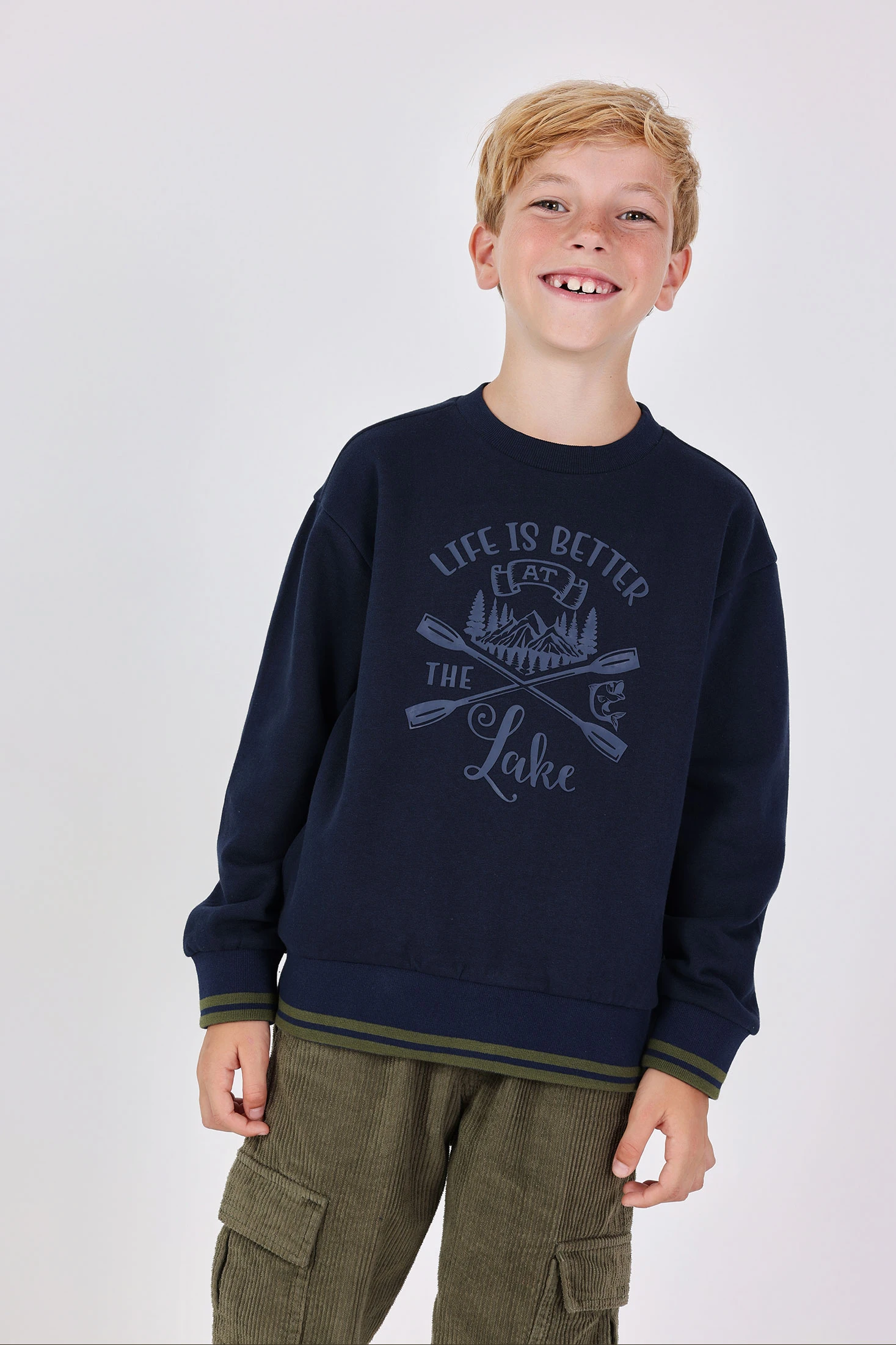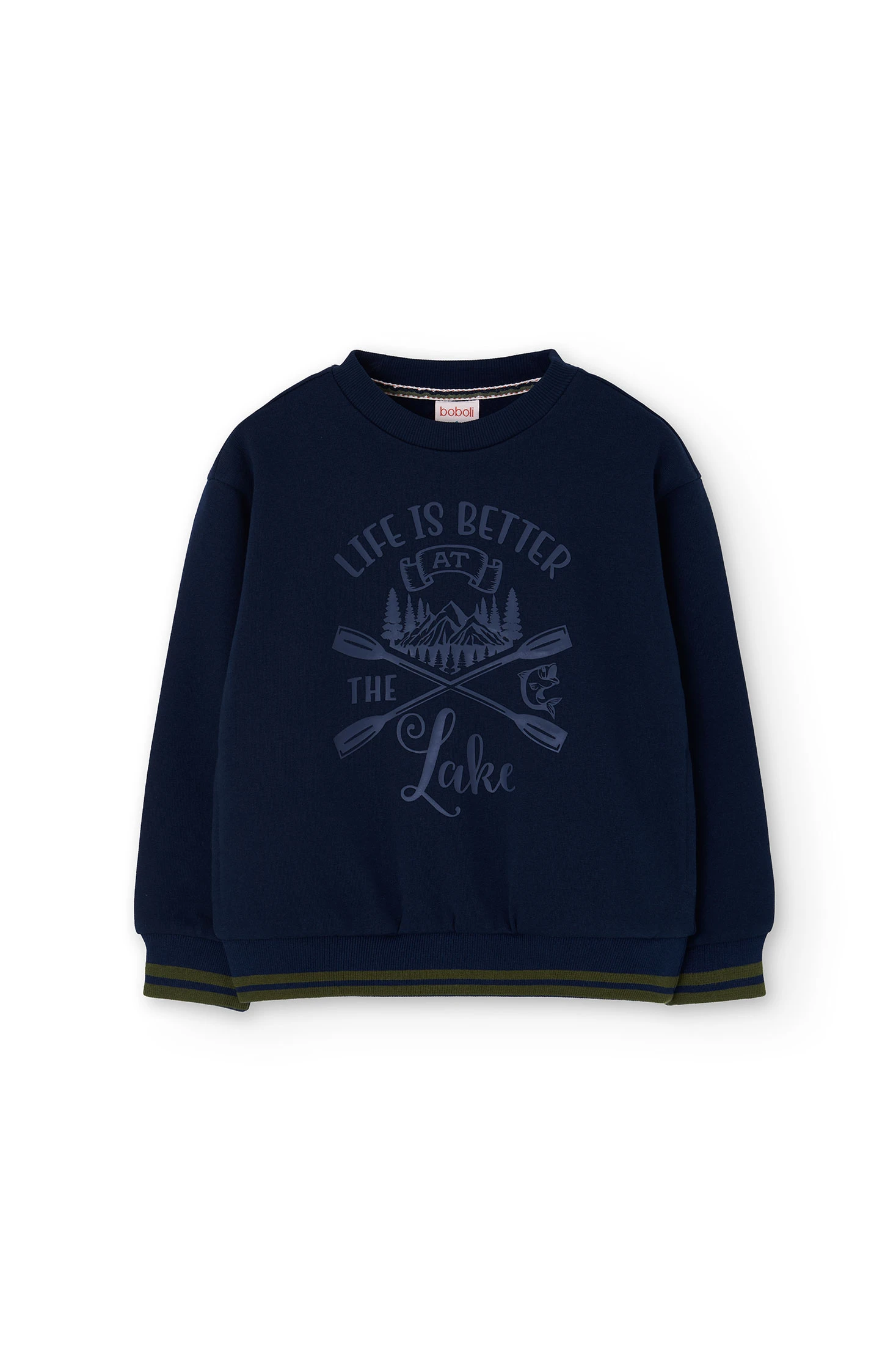 Sweatshirt de pelúcia azul-marinho para criança, ideal para as estações de outono e inverno, confeccionada em algodão de alta qualidade que garante calor e conforto. Inclui um design exclusivo na frente com remos e paisagens, perfeito para inspirar um espírito aventureiro e natural. Com gola redonda e mangas compridas, é a escolha perfeita para os dias frios, combinando facilmente com calças casuais para um visual descontraído e moderno. Disponível em tamanhos dos 2 aos 14 anos, a sweatshirt não é apenas distinguida pelo seu estilo, mas também pela sua praticidade e conforto.