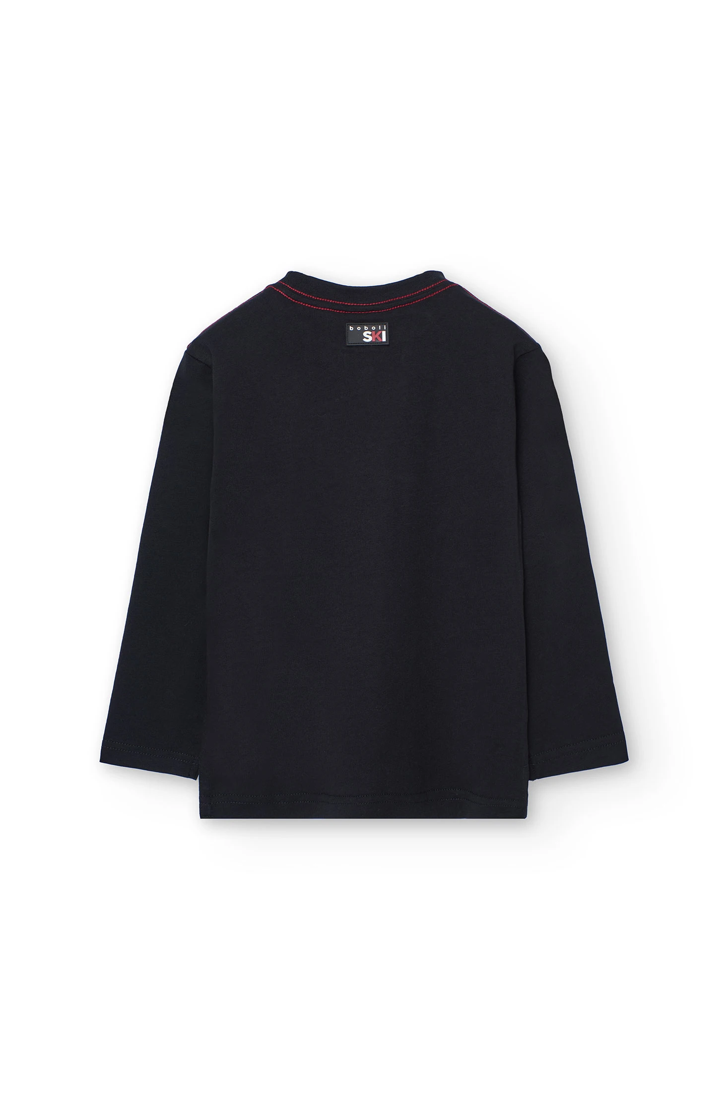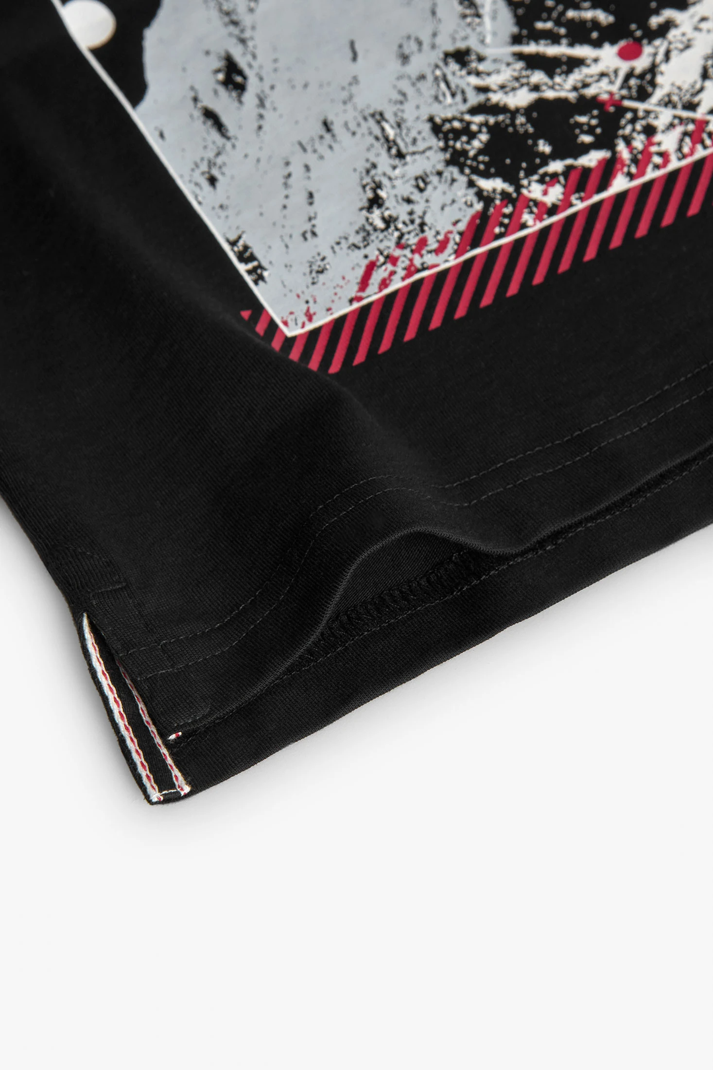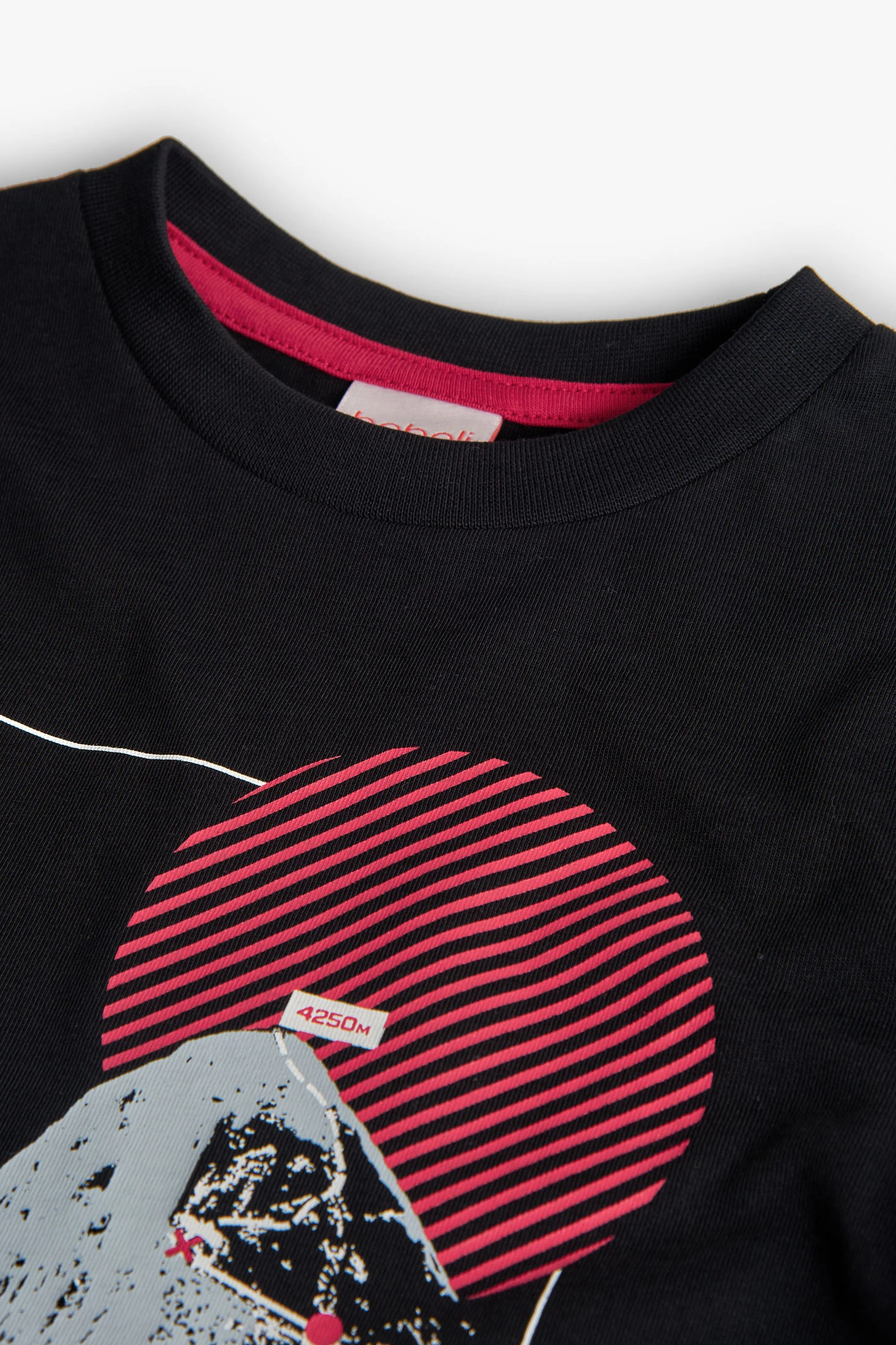 T-shirt de algodão em cor preta para menino, peça essencial para o outono e inverno, confeccionada num tecido suave e confortável. Desenhada com uma imagem de montanha que dá um toque aventureiro, ideal para pequenos exploradores. A cor preta torna-a uma opção versátil, fácil de combinar com jeans, calças desportivas ou casacos. Disponível em tamanhos de 2 a 14, esta t-shirt é perfeita para o uso diário, garantindo conforto e estilo durante todo o dia.