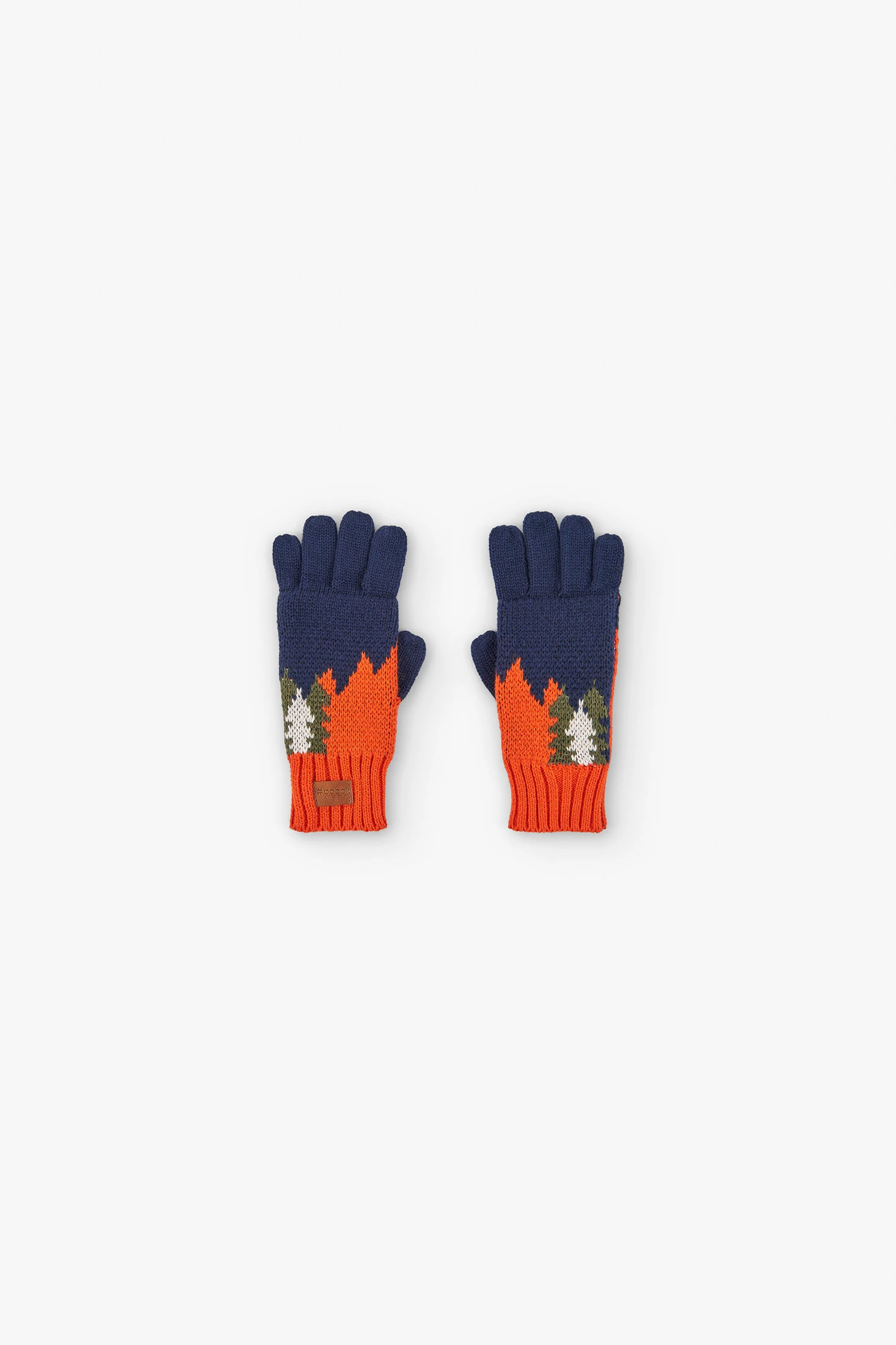 Luvas de malha em azul-marinho apresentam um encantador design de árvores em tons verdes, laranja e branco. Perfeitas para meninos e meninas durante a temporada de outono e inverno, proporcionam calor e conforto nos dias frios. Confeccionadas em um tecido suave que assegura um ajuste acolhedor, estão disponíveis nos tamanhos M a XXL para se adequar a diferentes idades. O seu design estilizado faz delas uma adição perfeita ao conjunto de inverno dos mais pequenos, acrescentando um toque divertido e colorido.