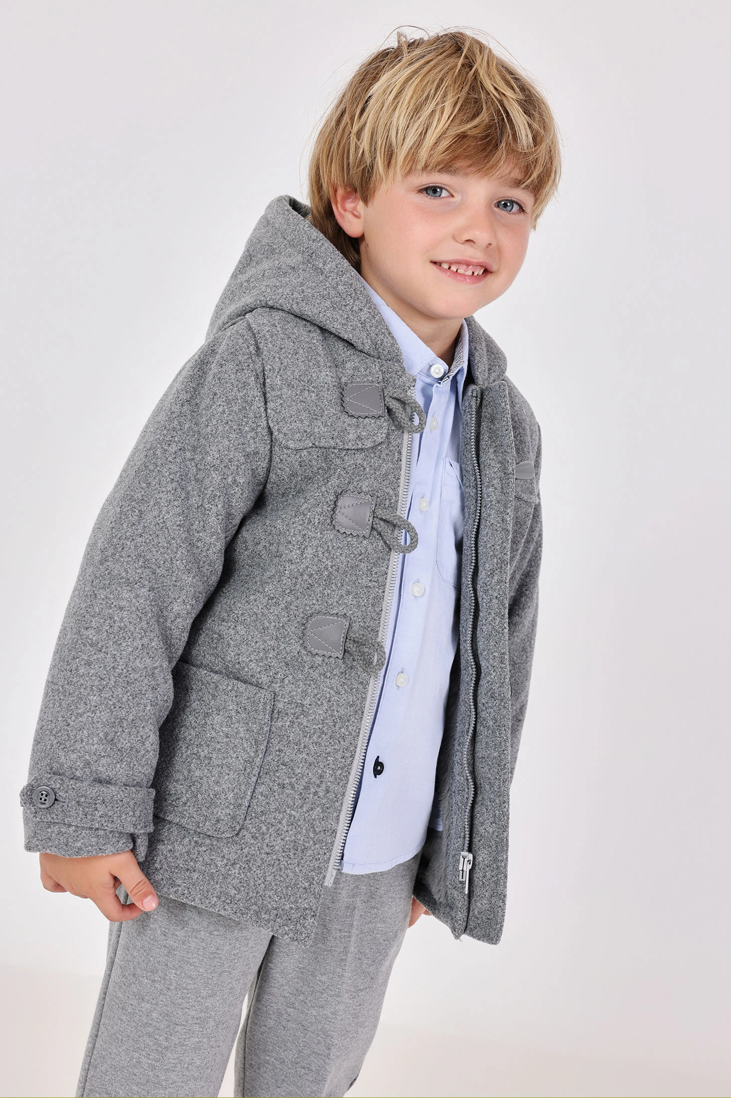 Trench de tecido cinza vigoré para menino, ideal para manter aquecido durante as temporadas de outono e inverno. Feita com tecido de alta qualidade, oferece excelente calor e conforto para o uso diário. O elegante design em cinza vigoré combina facilmente com qualquer roupa, desde calças de algodão até jeans. Disponível em tamanhos de 12 meses a 10 anos, torna-se uma peça essencial no guarda-roupa infantil. Perfeita para saídas em família ou passeios ao ar livre, garante estilo e aquecimento em qualquer ocasião.