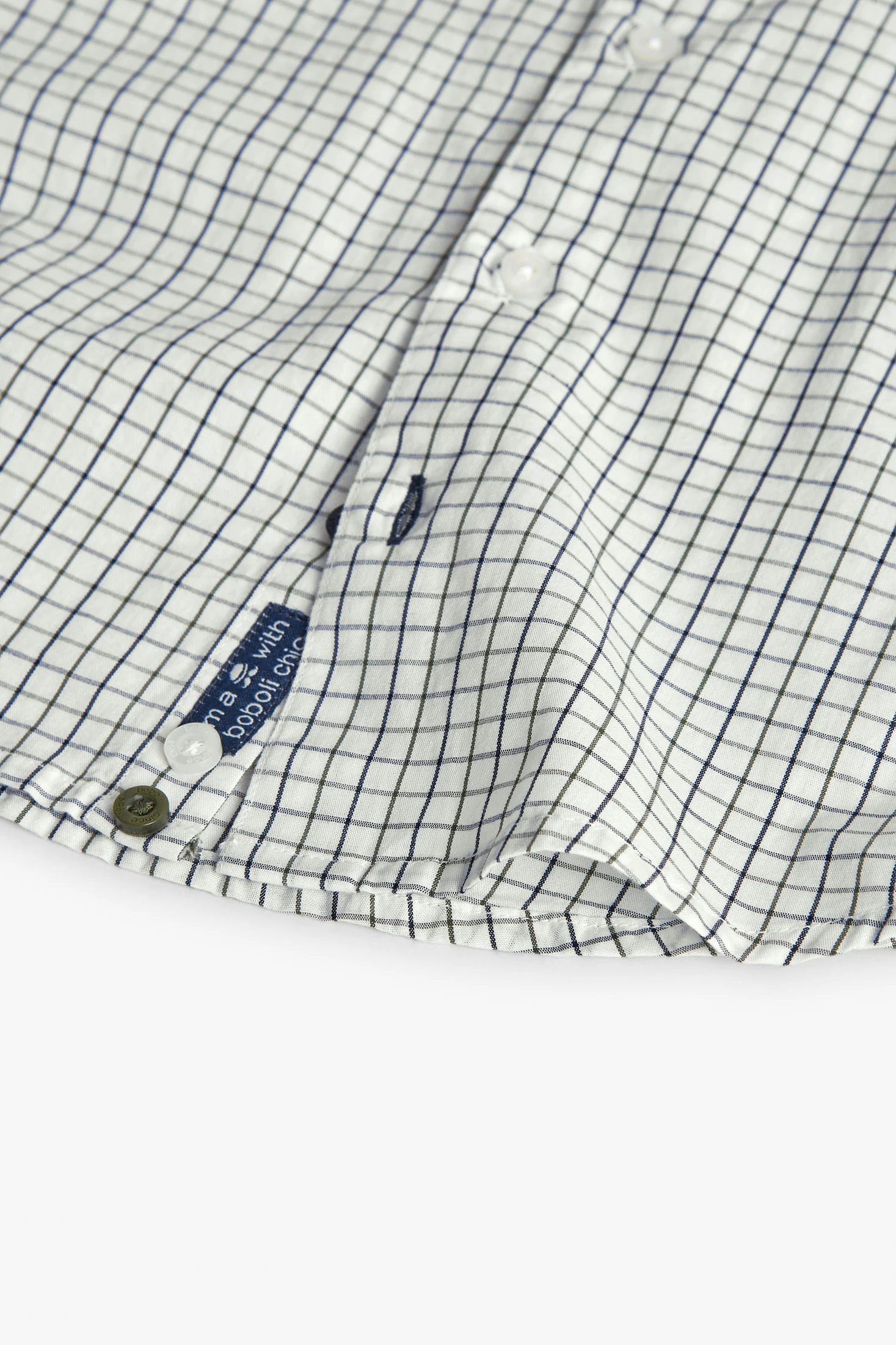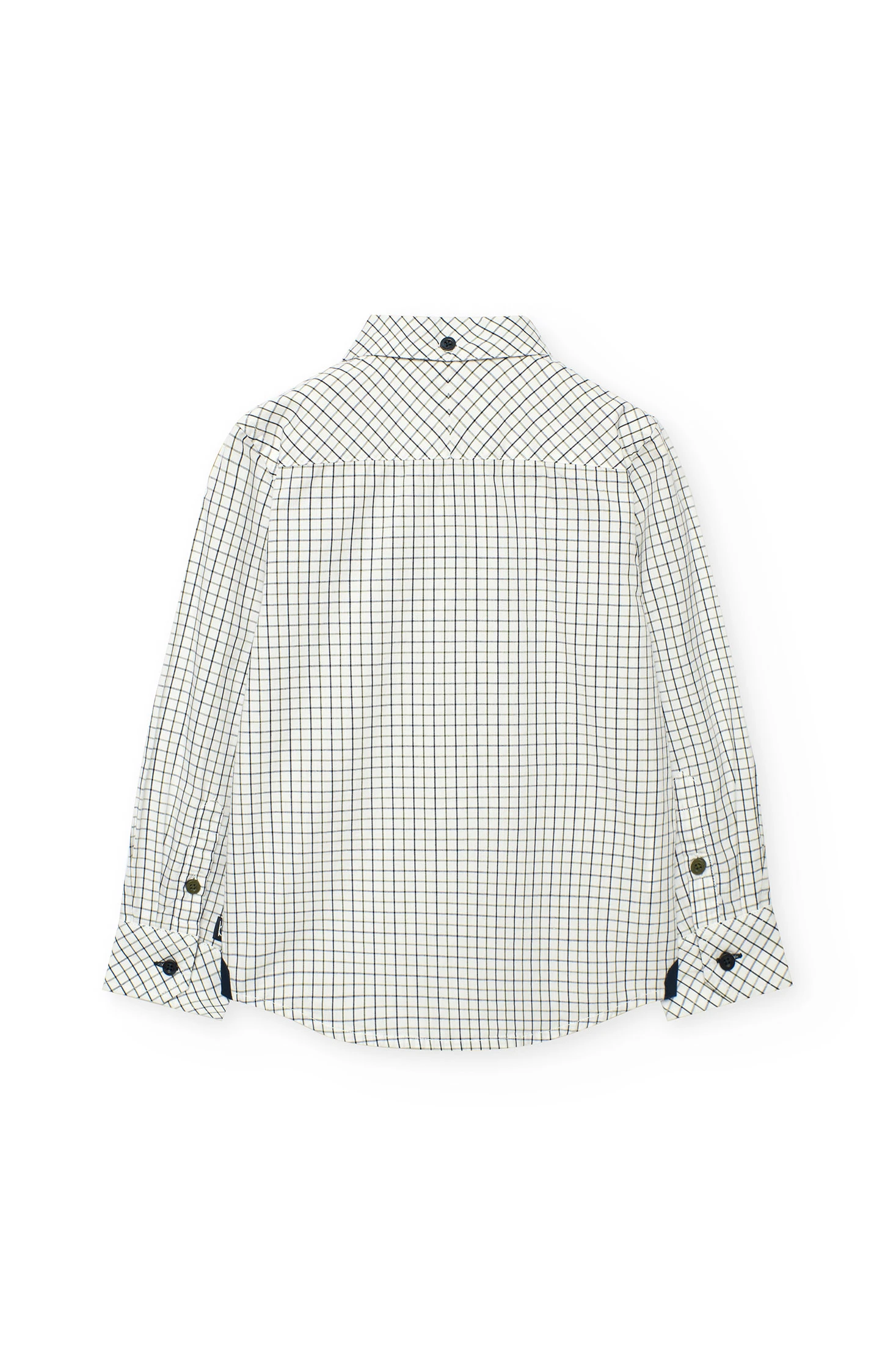 Camisa de popelina para menino apresenta um elegante design de quadrados em tons brancos escuros, ideal para qualquer estação do ano. Tecido suave e respirável garante conforto enquanto mantém um estilo impecável. O design inclui uma clássica gola tradicional e fecho de botões, perfeito para ocasiões tanto formais como casuais. Disponível em tamanhos de 2 a 14 anos, combina perfeitamente com calças escuras para alcançar um look sofisticado. Uma peça versátil e essencial no guarda-roupa de qualquer criança.