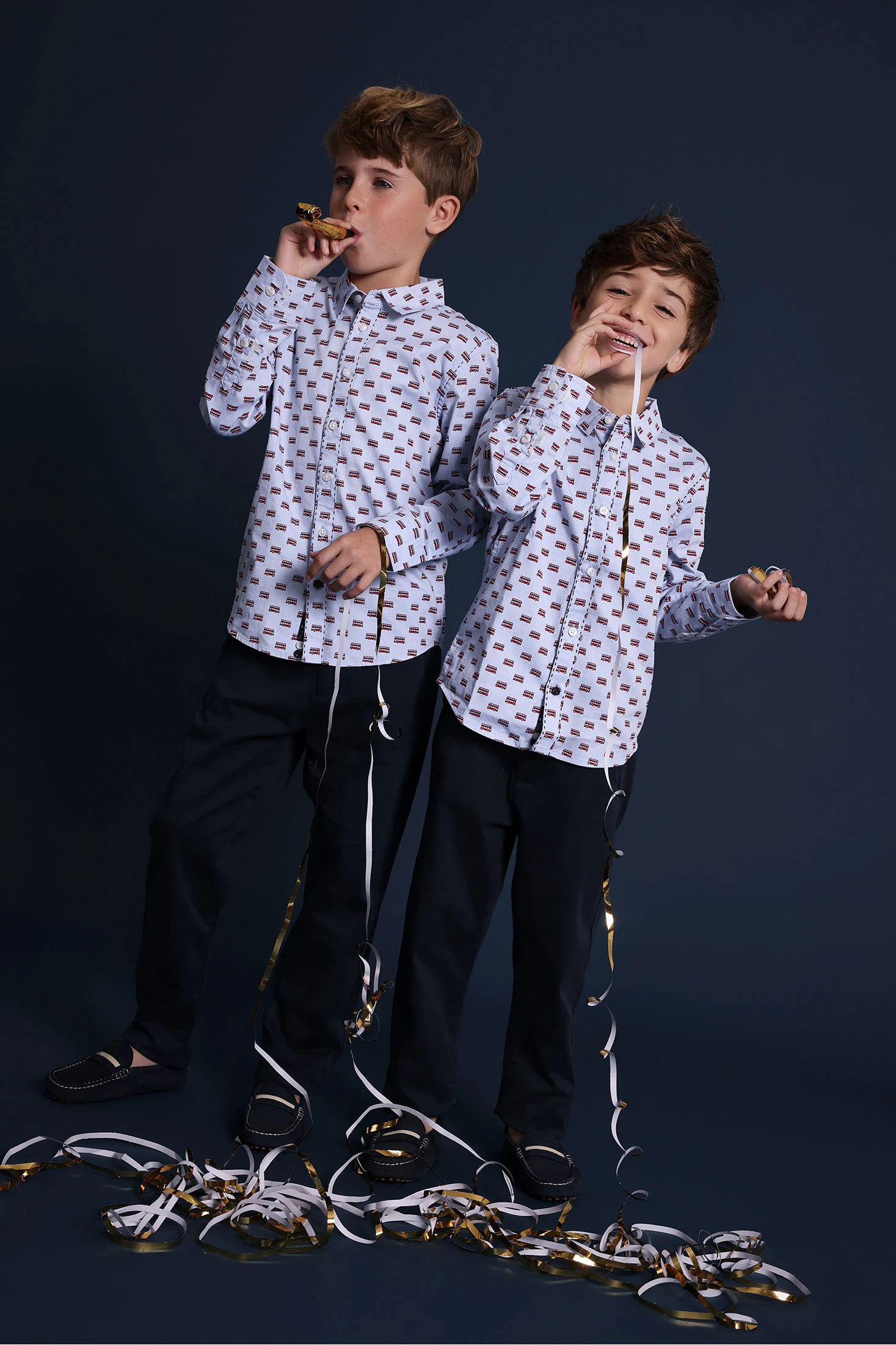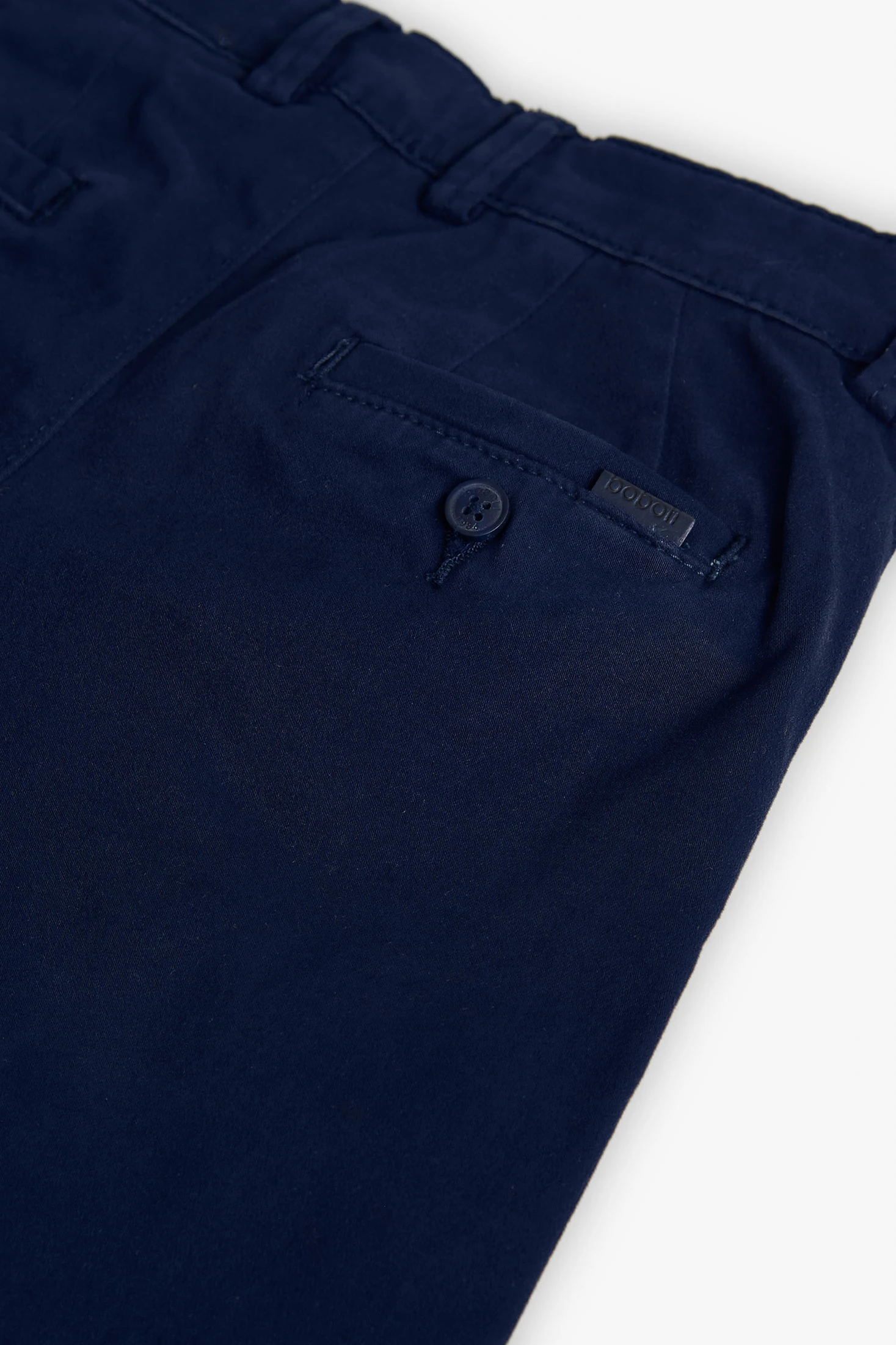 Calças azul marinho para menino, concebidas para oferecer conforto e estilo em qualquer ocasião. Fabricadas com um material resistente e suave, são perfeitas tanto para o uso diário como para eventos mais formais. A clássica cor azul marinho facilita a sua combinação com camisas, camisetas ou camisolas, adaptando-se a qualquer estação. Disponíveis em tamanhos de 2 a 14 anos, estas calças são uma adição essencial ao guarda-roupa infantil. Ideais para pais que procuram versatilidade e elegância nas roupas dos seus filhos.