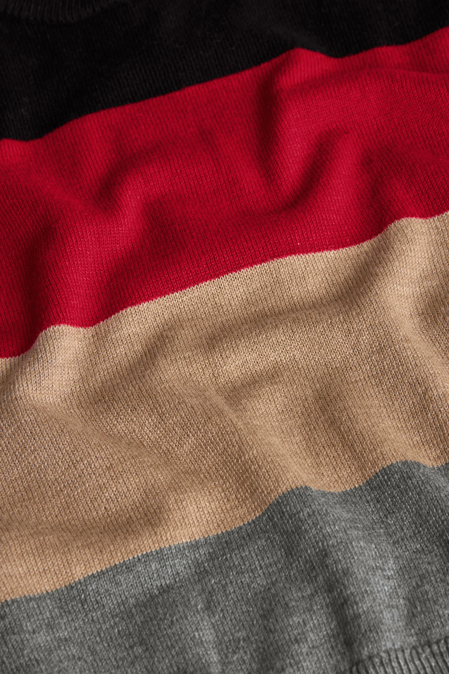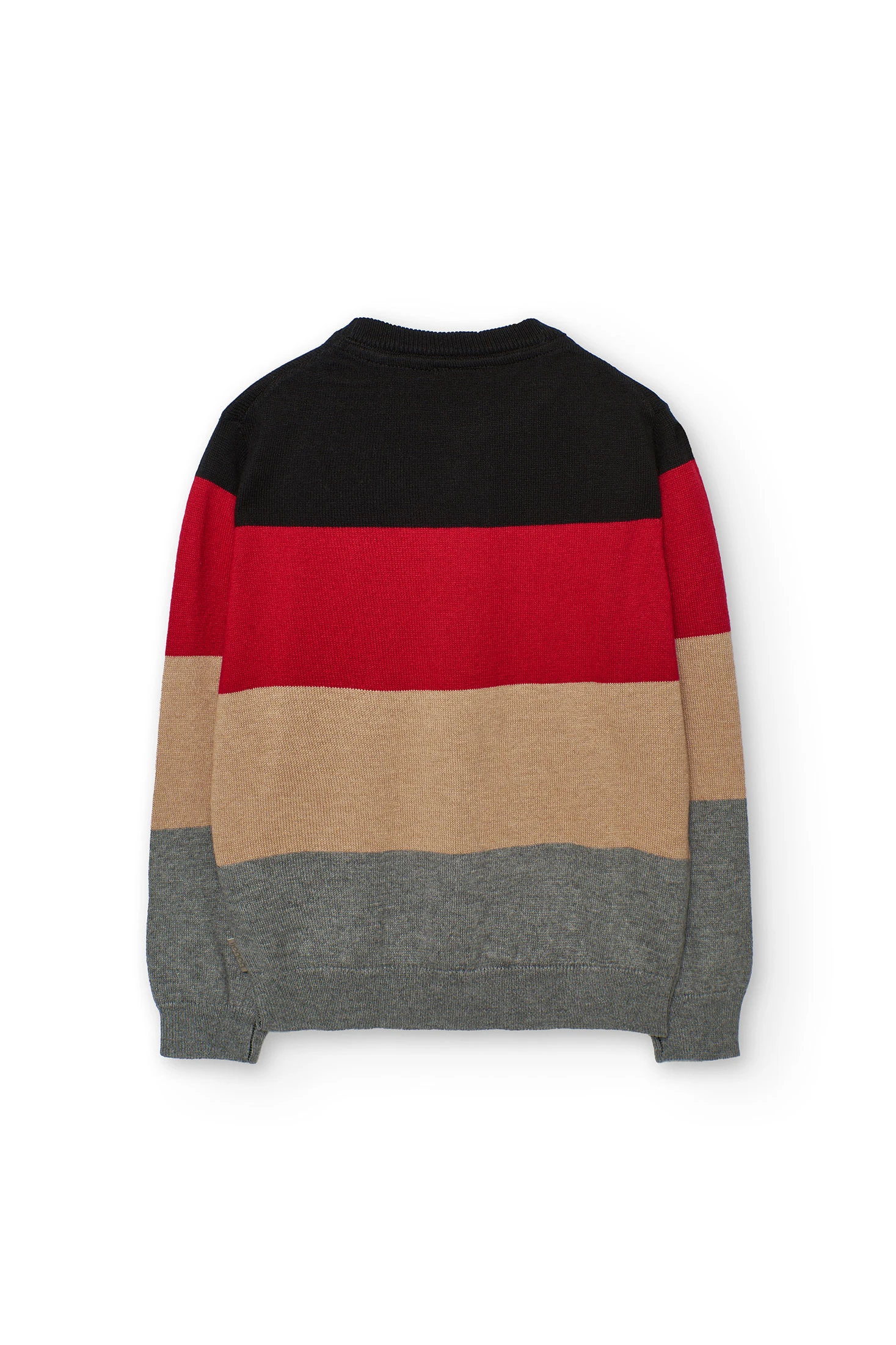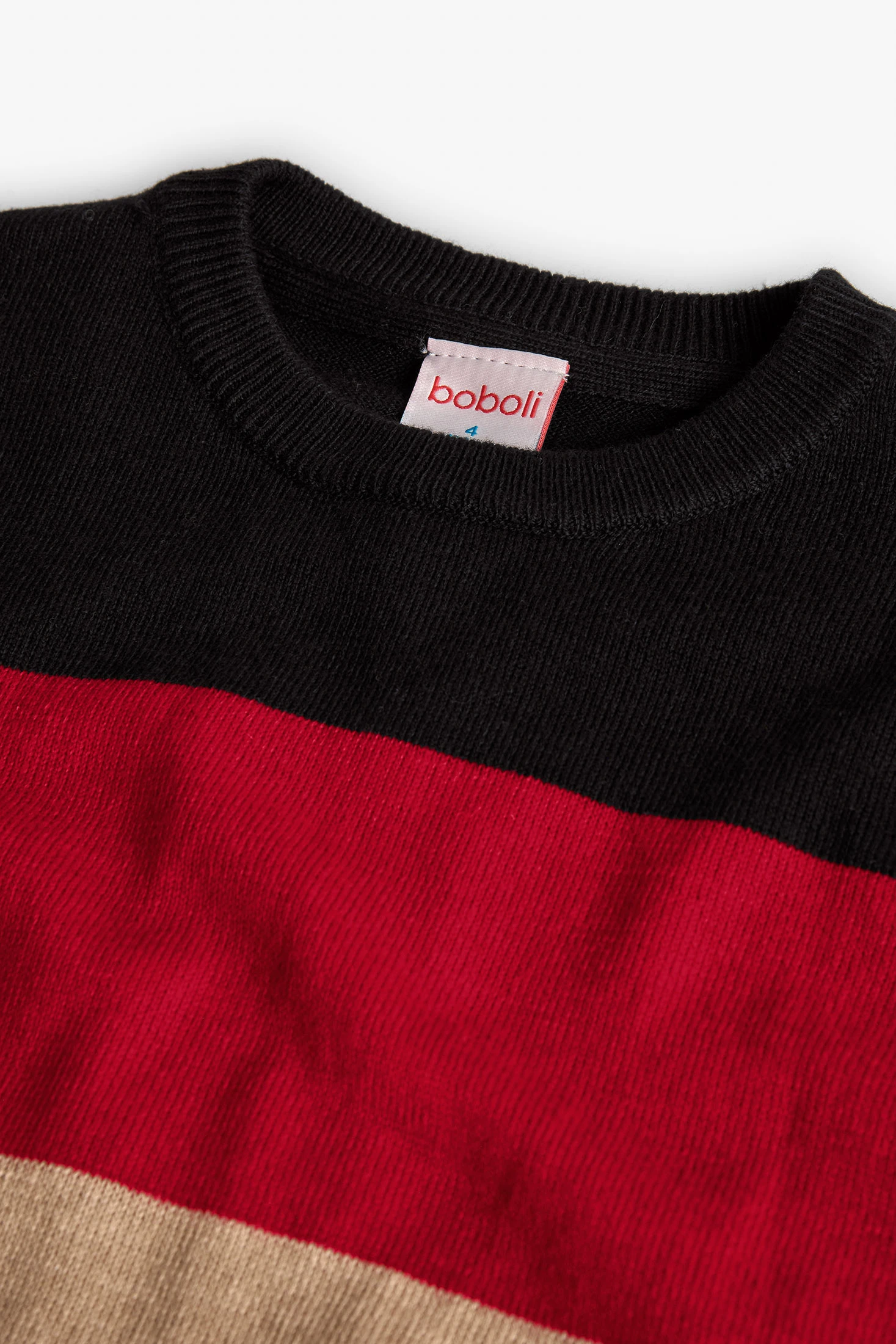 Camisola de malha para menino em cor preta com franjas, perfeita para o outono e inverno. Peça clássica que apresenta franjas horizontais em tons preto, vermelho, bege e cinza, proporcionando um estilo único e atraente. Confeccionada com um tecido suave e confortável, conta com uma gola redonda e mangas compridas que oferecem proteção ótima contra o frio. Disponível em tamanhos desde os 2 até aos 14 anos, é uma opção versátil que se combina facilmente com jeans ou calças casuais. O seu design moderno adiciona um toque de estilo a qualquer conjunto em dias frios.