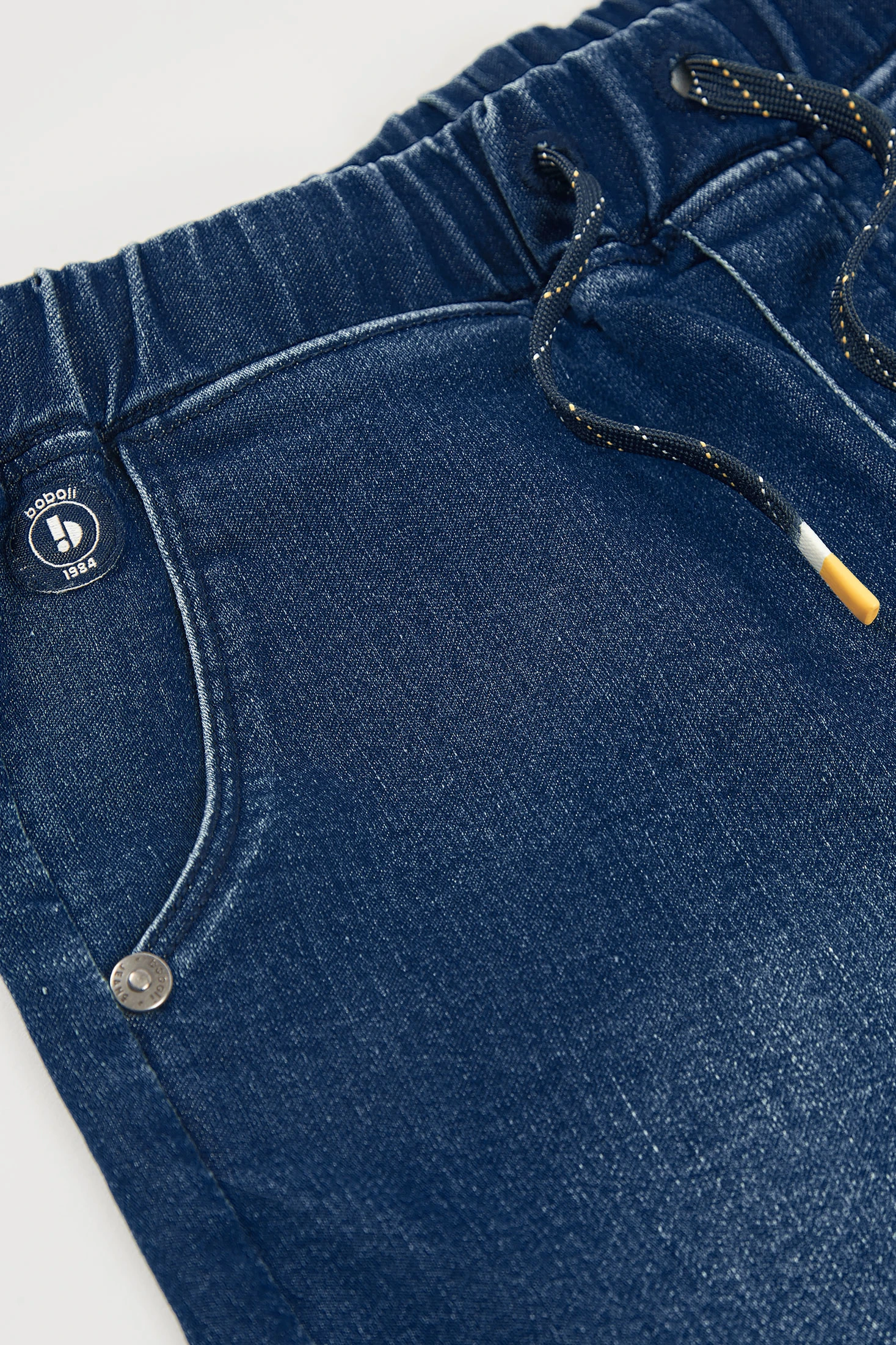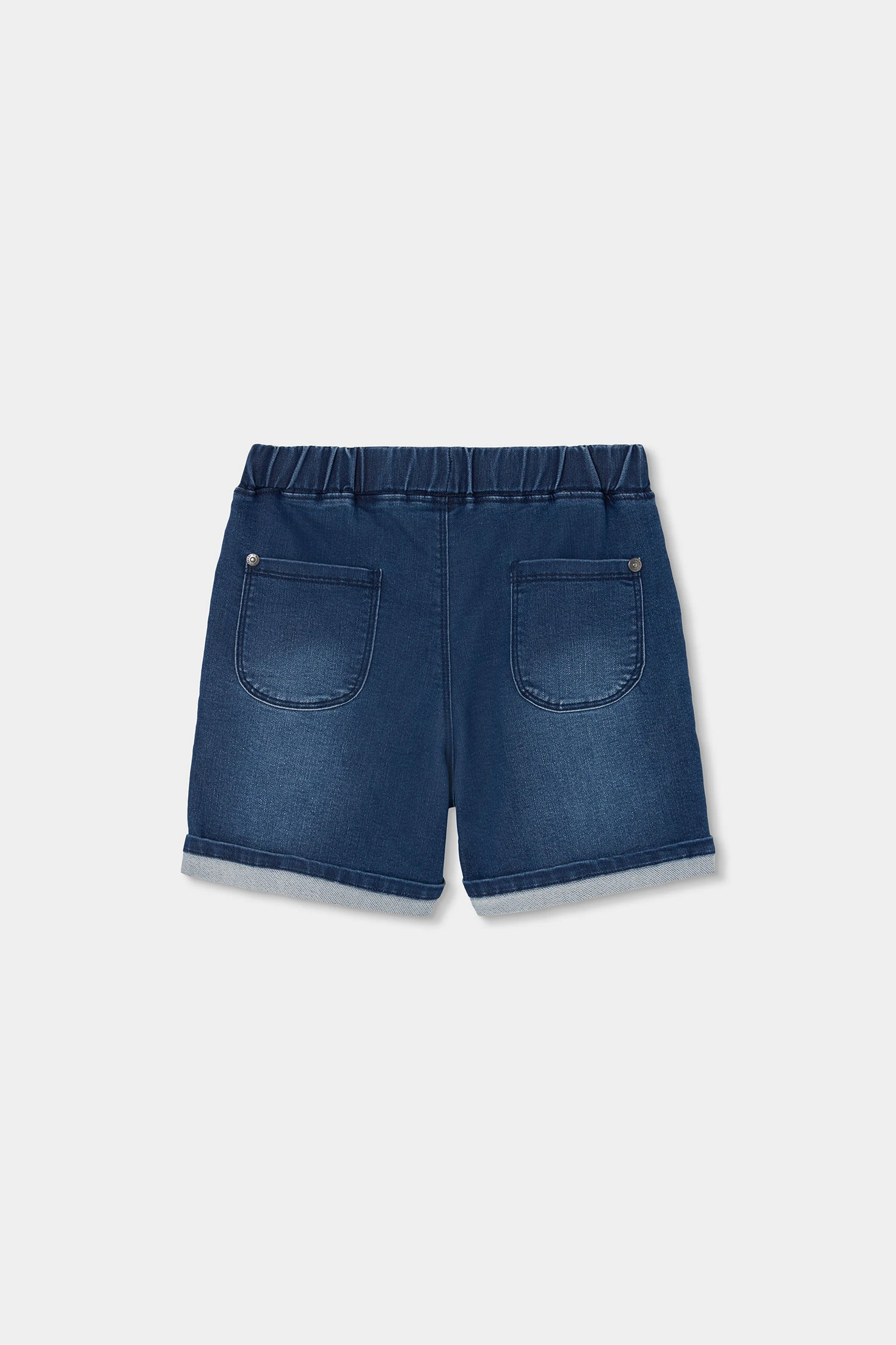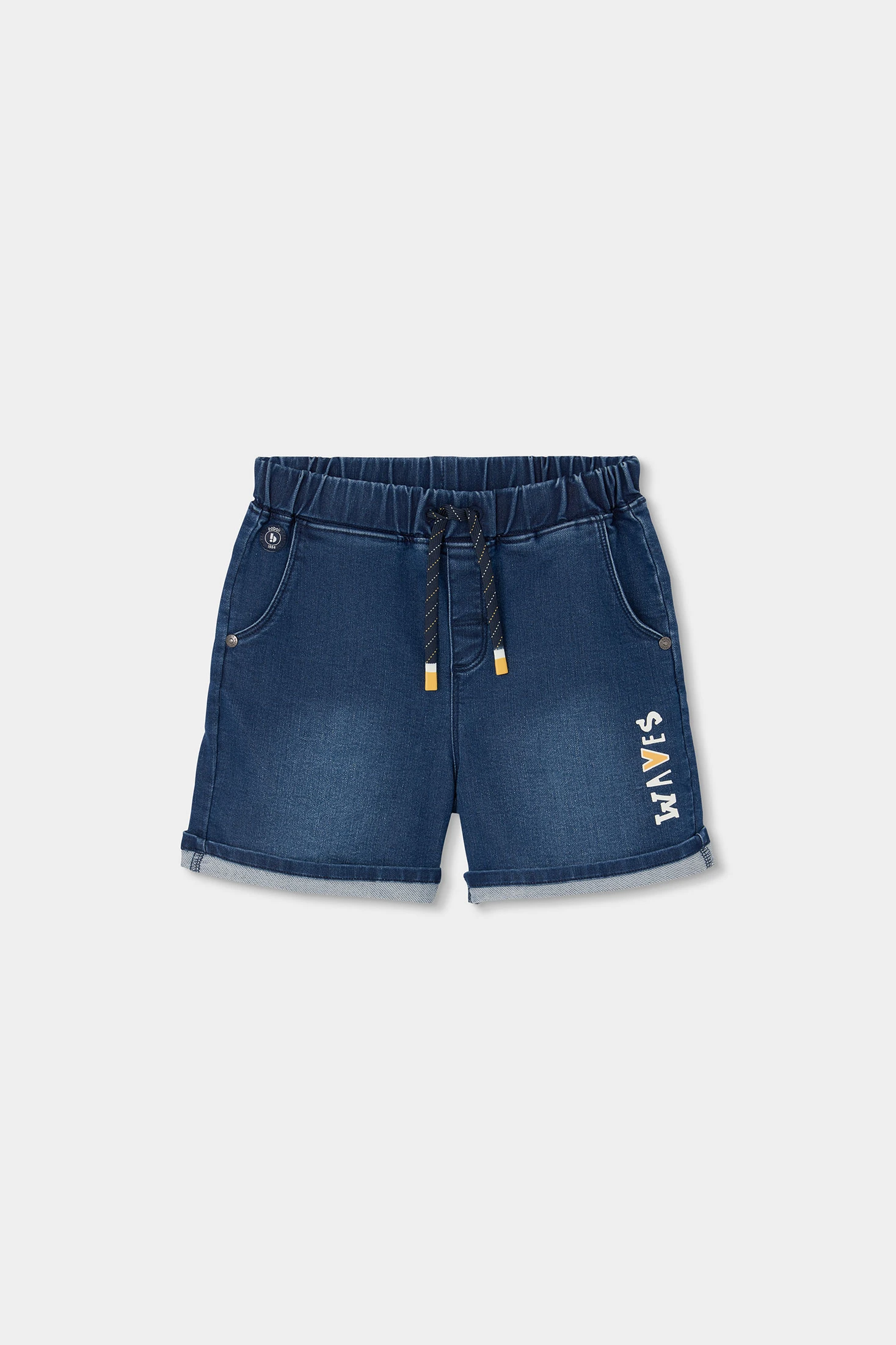 Bermudas de ganga em azul escuro, proporcionam um estilo casual e confortável. Desenhadas com um tecido de malha que garante liberdade de movimento, apresentam um design simples com bolsos funcionais e uma cintura ajustável com cordão. Os tamanhos disponíveis vão dos 12 meses aos 10 anos. Ideais para combinar com camisetas de cores vivas para um look de verão e versátil, o seu material é resistente, tornando-as numa opção prática para o uso diário.