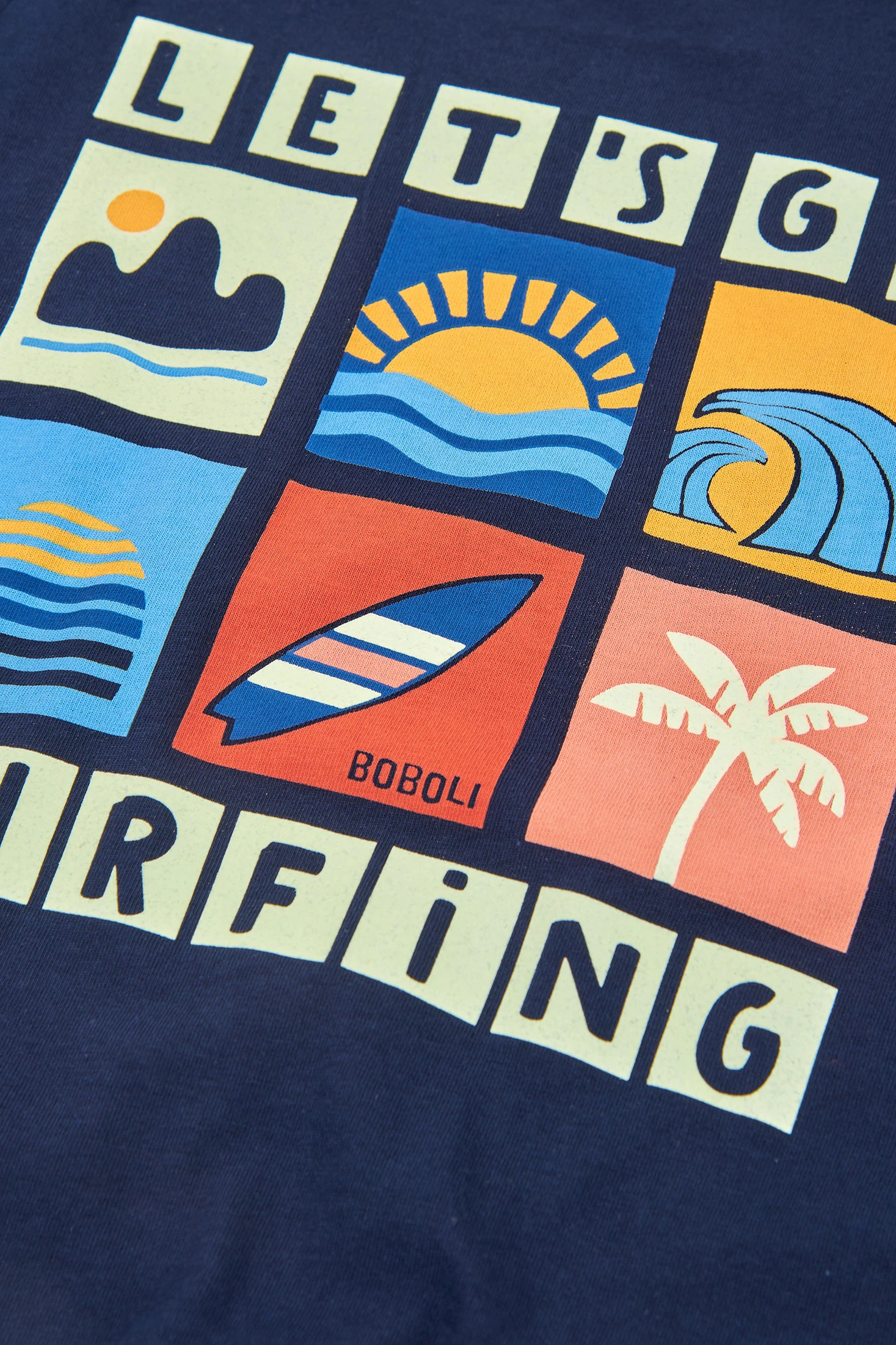 T-shirt de malha azul-marinho para menino, perfeita para o dia a dia. Desenhada com ilustrações gráficas coloridas que lhe conferem um toque divertido e moderno. O material de malha assegura conforto e flexibilidade, ideal para crianças ativas. Conta com uma gola redonda e mangas curtas. Disponível em tamanhos desde 12 meses até 10 anos, é uma opção versátil que combina facilmente com calças ou calções informais.