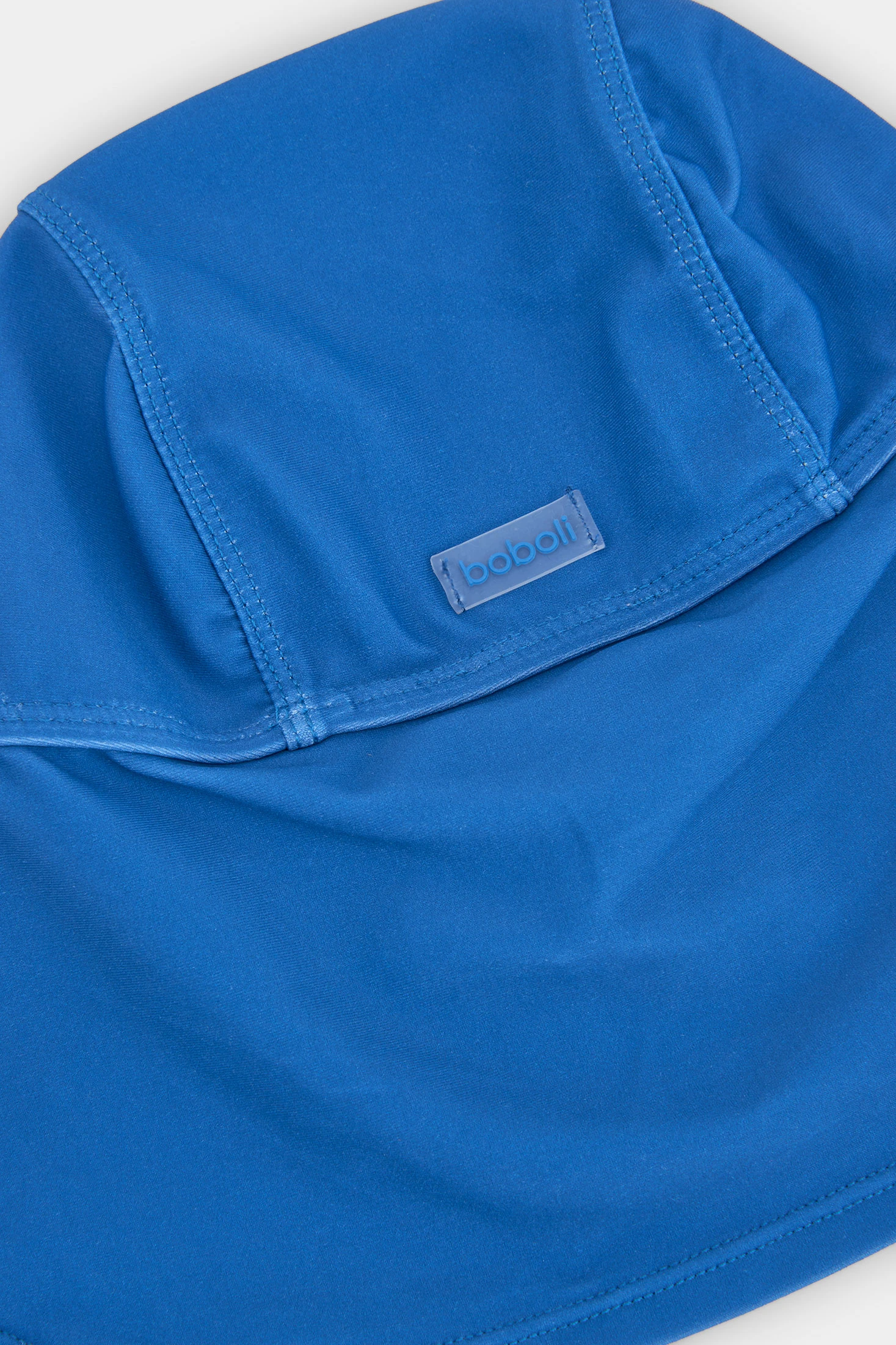 Boné azul perfeito para proteger os mais pequenos do sol. Possui uma aba e uma extensão traseira para maior cobertura. Disponível nos tamanhos S/48, M/50, L/52, e XL/54, adapta-se ao crescimento da criança. O seu design minimalista torna-o fácil de combinar com diferentes estilos de roupa casual e de verão. Ideal para brincar ao ar livre, oferece proteção e estilo em partes iguais. Peça com proteção solar UPF50.