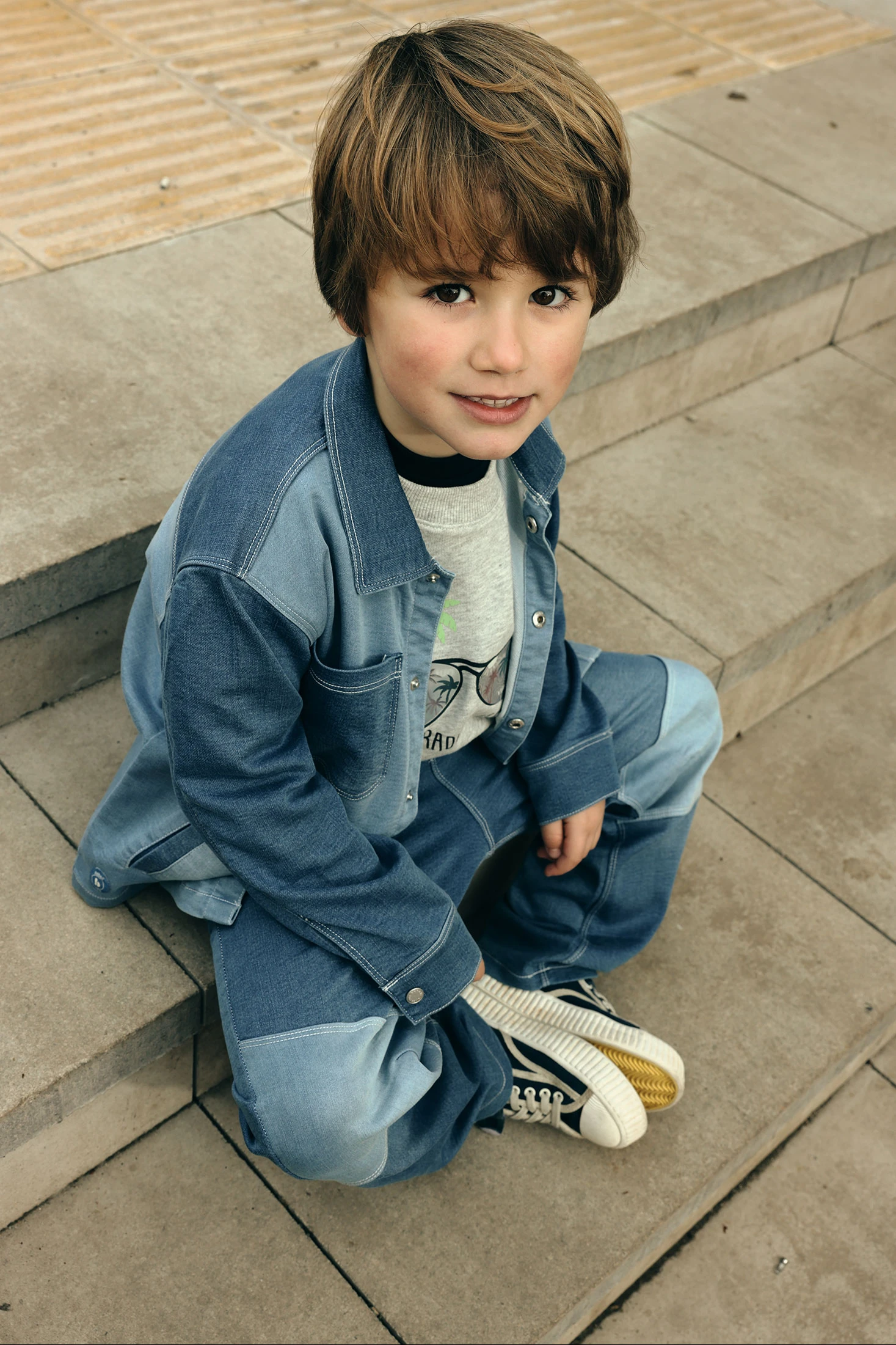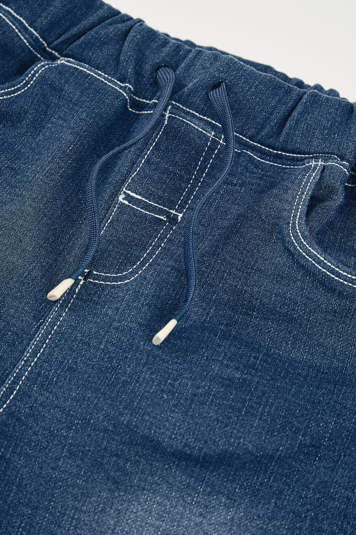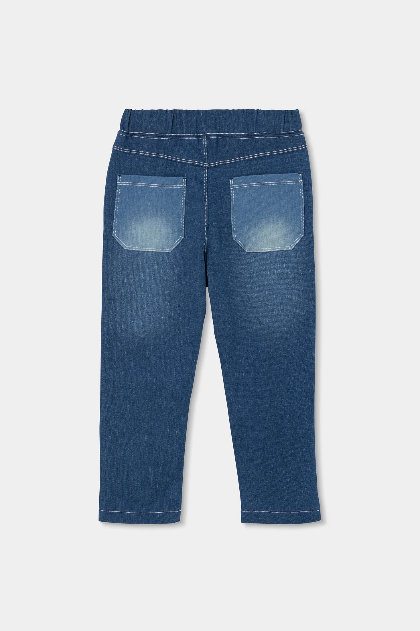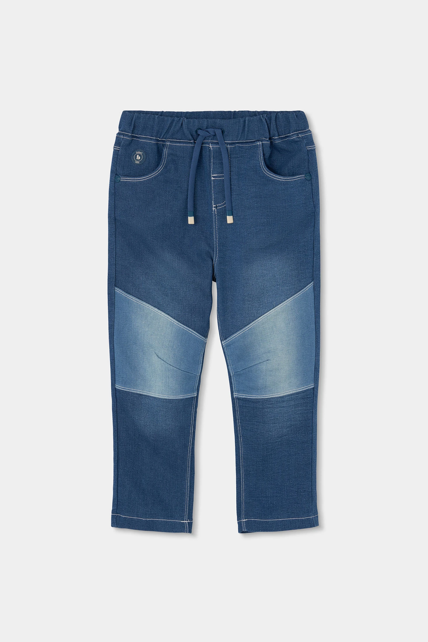 Calças de ganga azuis para menino, ideal para todas as estações do ano. Feito de um material resistente, combina conforto e durabilidade. O design inclui uma cintura elástica com cordão ajustável, proporcionando um ajuste confortável e seguro. Os painéis nos joelhos acrescentam um toque moderno ao estilo clássico. Disponível em tamanhos desde 12 meses até 10 anos, adaptando-se ao crescimento da criança. Perfeito para combinar com camisas e camisolas, estas calças são uma opção versátil para qualquer ocasião casual.