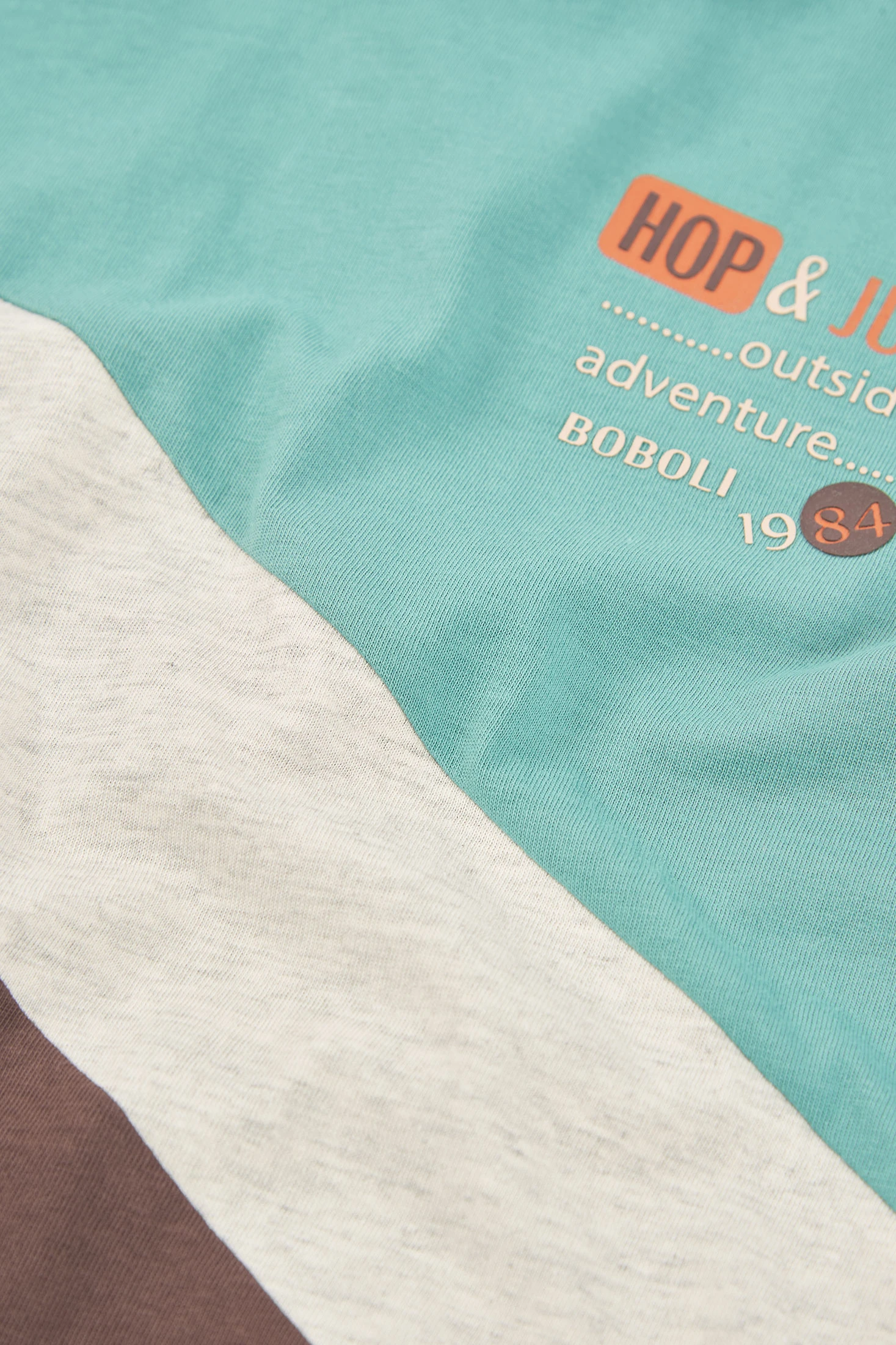 Camiseta de algodão para criança, ideal para qualquer estação. O seu design em cor verde é complementado por blocos de cor castanha, cinza e laranja, e apresenta uma estampa textual moderna. Confeccionada em tecido confortável, é perfeita para uso diário. Os tamanhos estão disponíveis desde 12 meses até 10 anos, assegurando um ajuste adequado ao longo dos anos. A gola redonda e as mangas curtas tornam-na uma peça versátil e fácil de combinar com diferentes roupas, perfeita para um estilo descontraído e casual.
