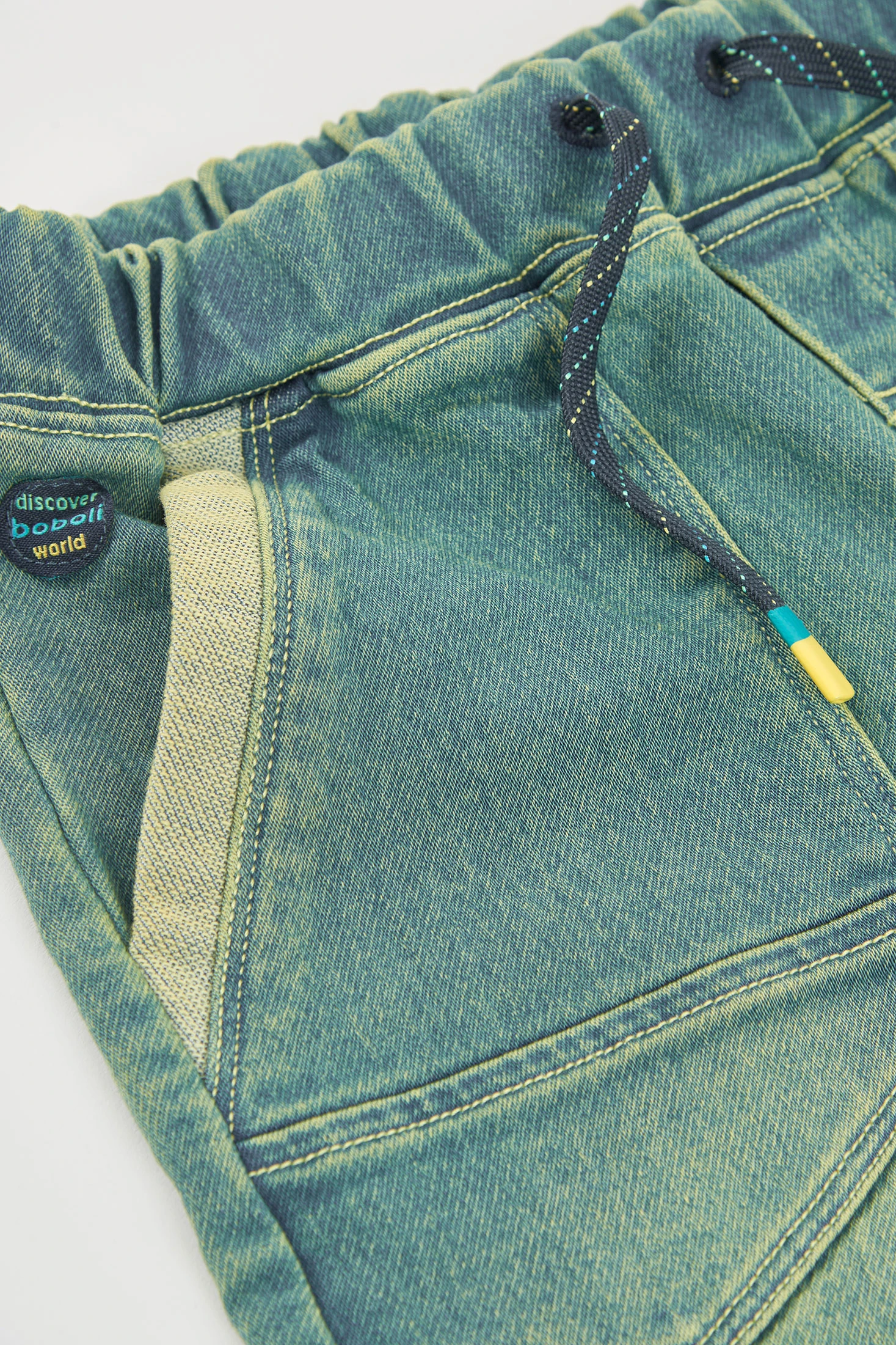 Bermudas de malha denim elástica para criança são uma escolha ideal para o verão. Confeccionadas num tecido suave e resistente, estas bermudas oferecem conforto durante todo o dia. O seu design clássico em cor dirty é complementado com elástico na cintura e um cordão ajustável, facilitando o uso e adaptando-se a diferentes tamanhos. Estão disponíveis em tamanhos desde 12 meses até 10 anos, o que as torna adequadas para uma ampla gama de idades. Perfeitas para combinar com t-shirts informais, são uma opção versátil e prática para o dia a dia.