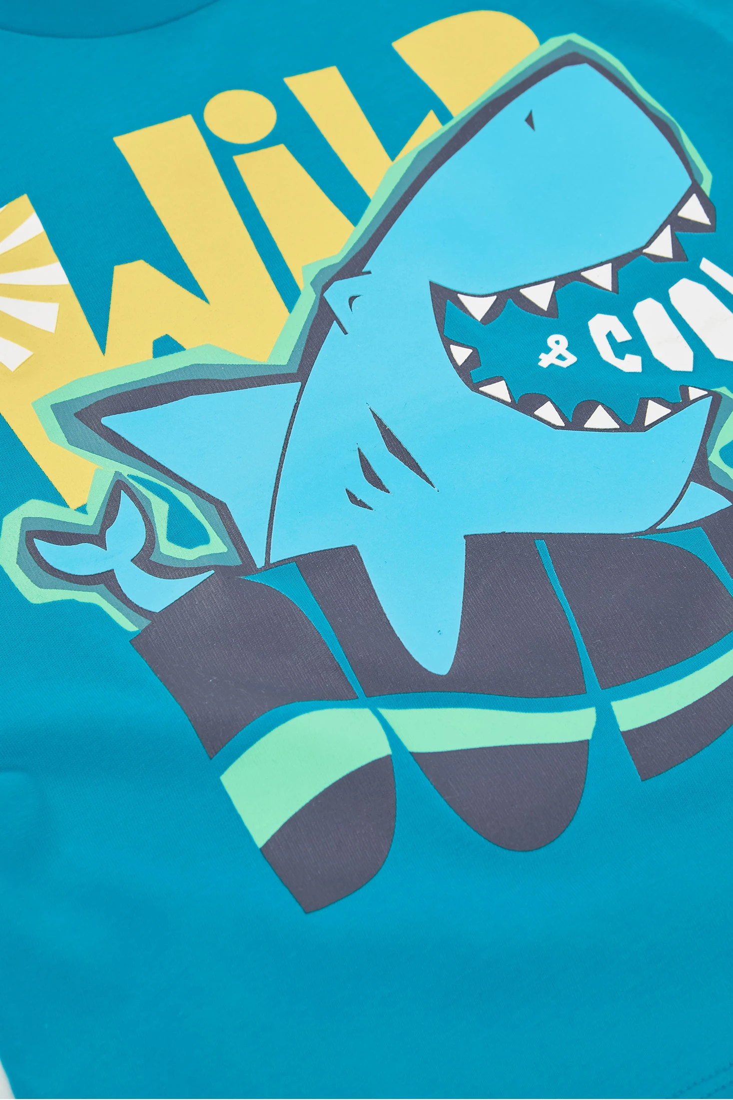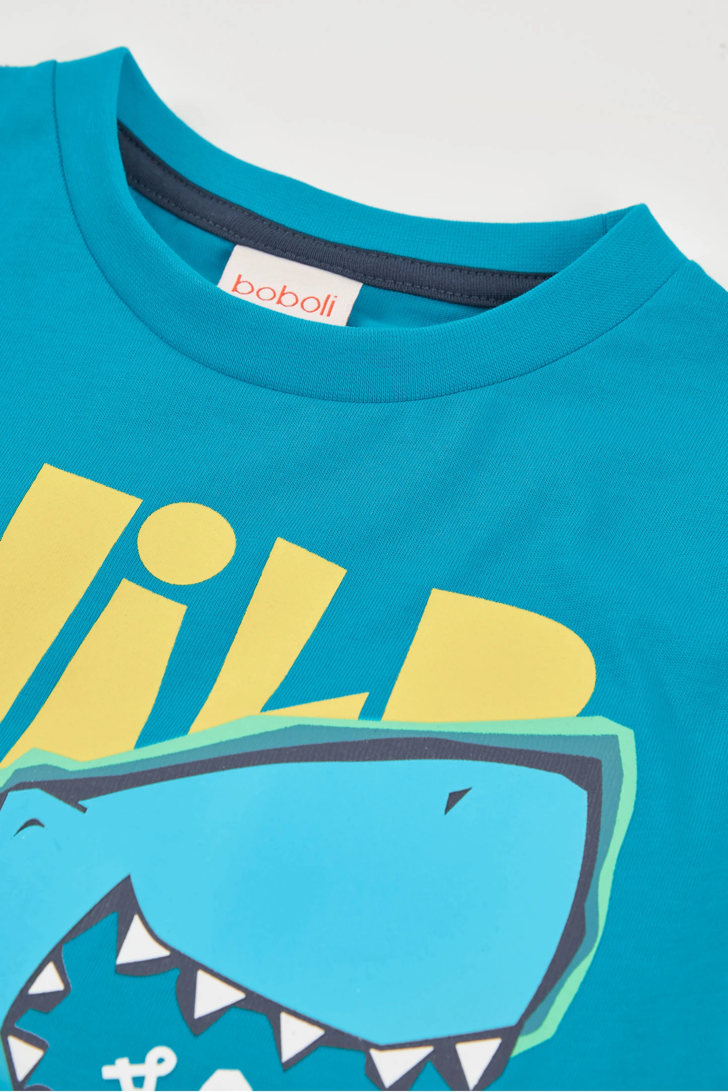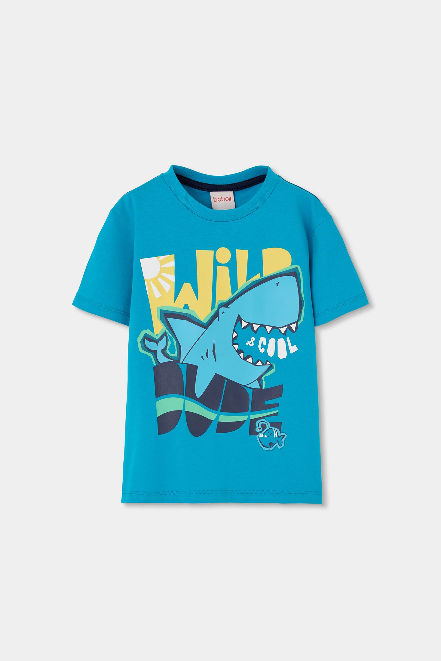 T-shirt de malha para menino ideal para a temporada de verão. Confeccionada num tecido suave e leve, oferece conforto para o uso diário. A sua vibrante cor azul conta com um design divertido que inclui um tubarão e letras chamativas. Perfeita para crianças desde 12 meses até 10 anos. Combine-a com calções ou jeans para um look casual e colorido que os pequenos vão adorar.