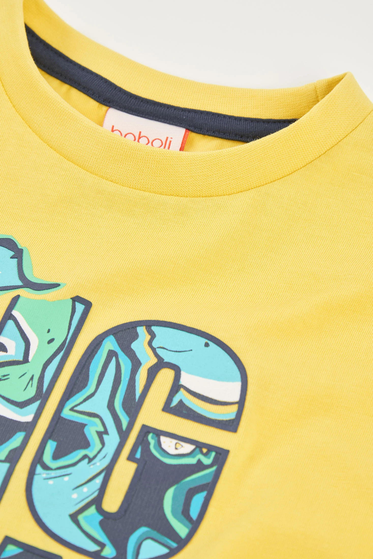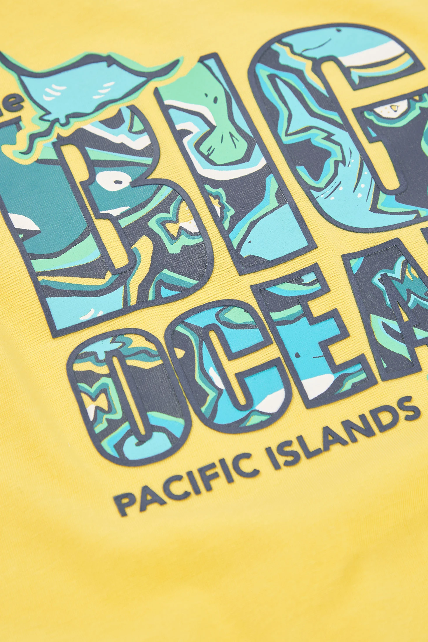 T-shirt de malha de algodão para criança, ideal para o verão, oferece conforto e frescor. Na cor amarelo vibrante, apresenta uma estampa frontal com motivos oceânicos e animais, conferindo um toque divertido. Perfeita para idades desde 12 meses até 10 anos. O design com gola redonda proporciona um estilo casual e versátil, combinável com qualquer calça ou calção, ideal para dias de aventura.