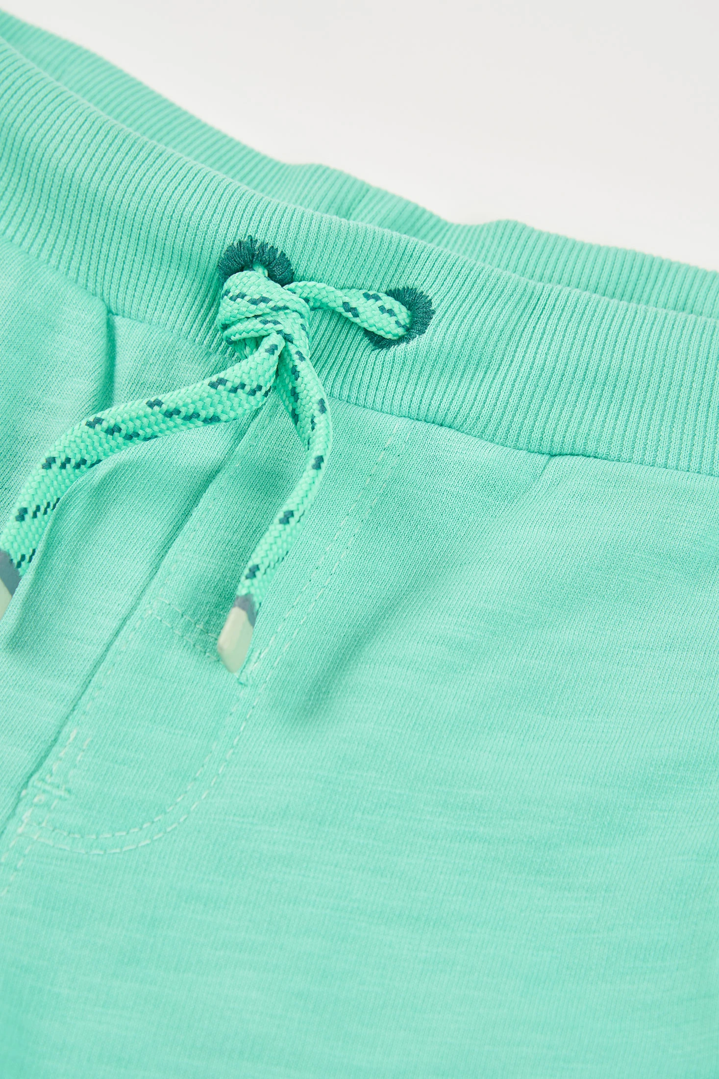 Bermudas de pelfa verde para menino, ideais para o verão, combinam conforto e estilo. Feitas de um material suave e fresco, perfeitas para atividades ao ar livre. Possuem um design divertido com uma estampa em várias cores e um ajuste confortável de cordão na cintura. Disponíveis em tamanhos desde 12 meses até 10 anos, ajustam-se ao crescimento da criança. A sua cor vibrante facilita combiná-las com camisetas de cores claras, proporcionando um look relaxado e moderno. Uma opção versátil para qualquer ocasião.