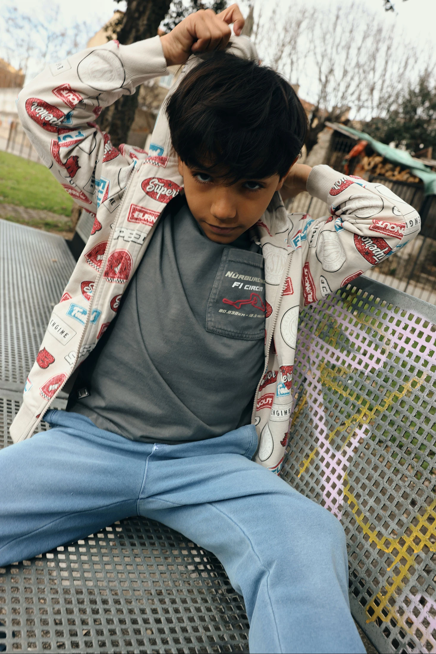 Camiseta de algodão cinza para menino, perfeita para o dia a dia. O seu tecido suave oferece conforto e garante facilidade de movimento. Apresenta um design simples com um pequeno gráfico no bolso frontal que acrescenta um toque moderno. Está disponível em tamanhos desde 2 anos até 14 anos, adaptando-se a diferentes etapas de crescimento. O seu estilo versátil faz dela uma peça ideal para combinar com jeans ou calções, sendo uma opção ideal para qualquer estação.