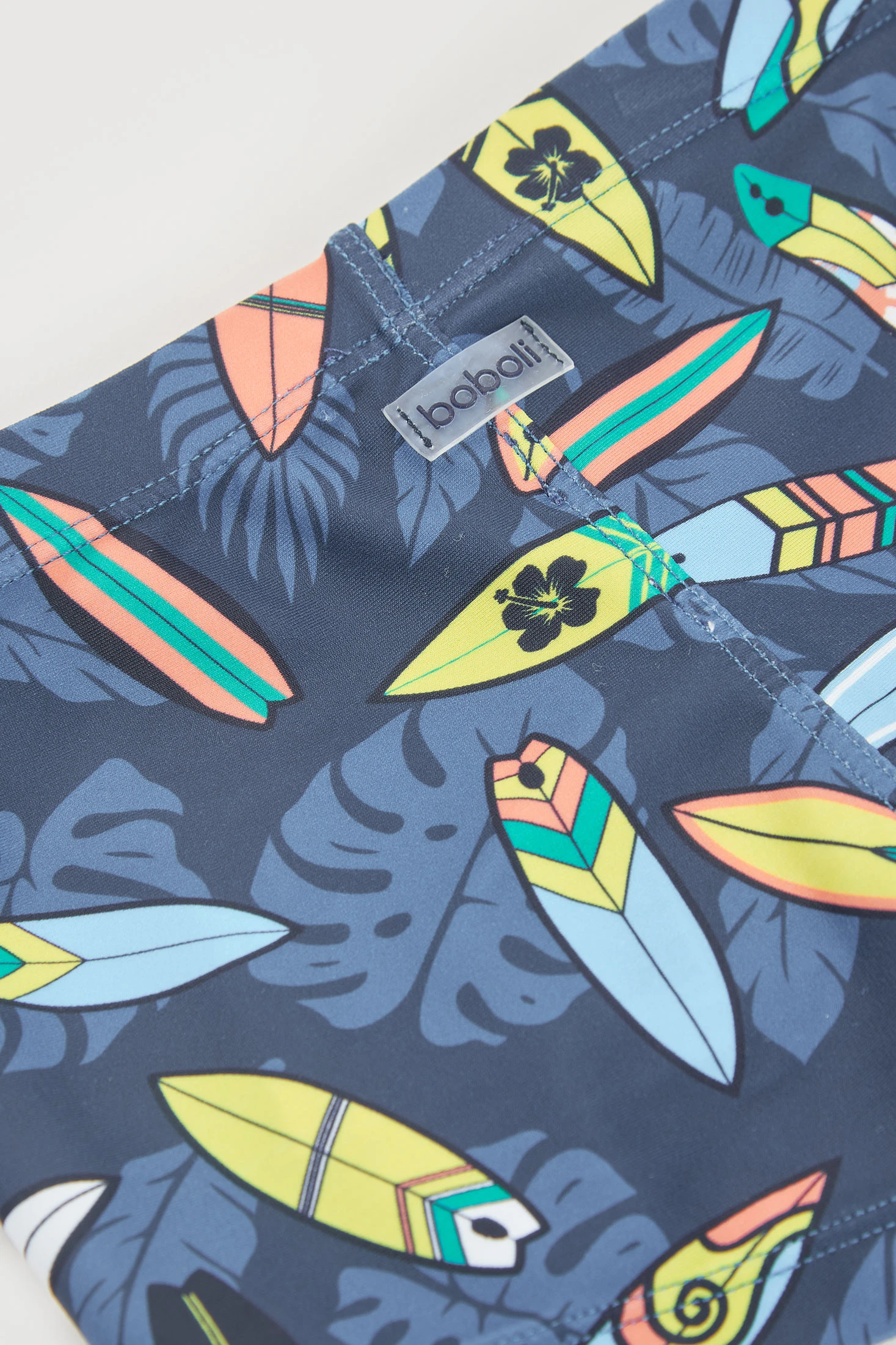 Fato de banho azul perfeito para os pequenos amantes da água. Está disponível em tamanhos desde 2 anos até 14 anos. Apresenta uma estampagem vibrante de pranchas de surf, conferindo um estilo alegre e de verão. Fabricado com materiais de secagem rápida, garante conforto e praticidade para os dias de praia ou piscina. O seu design ajustado oferece grande liberdade de movimento, ideal para atividades aquáticas. Com este fato de banho, o teu pequeno pode desfrutar do verão com estilo e conforto. Peça com proteção solar UPF50.