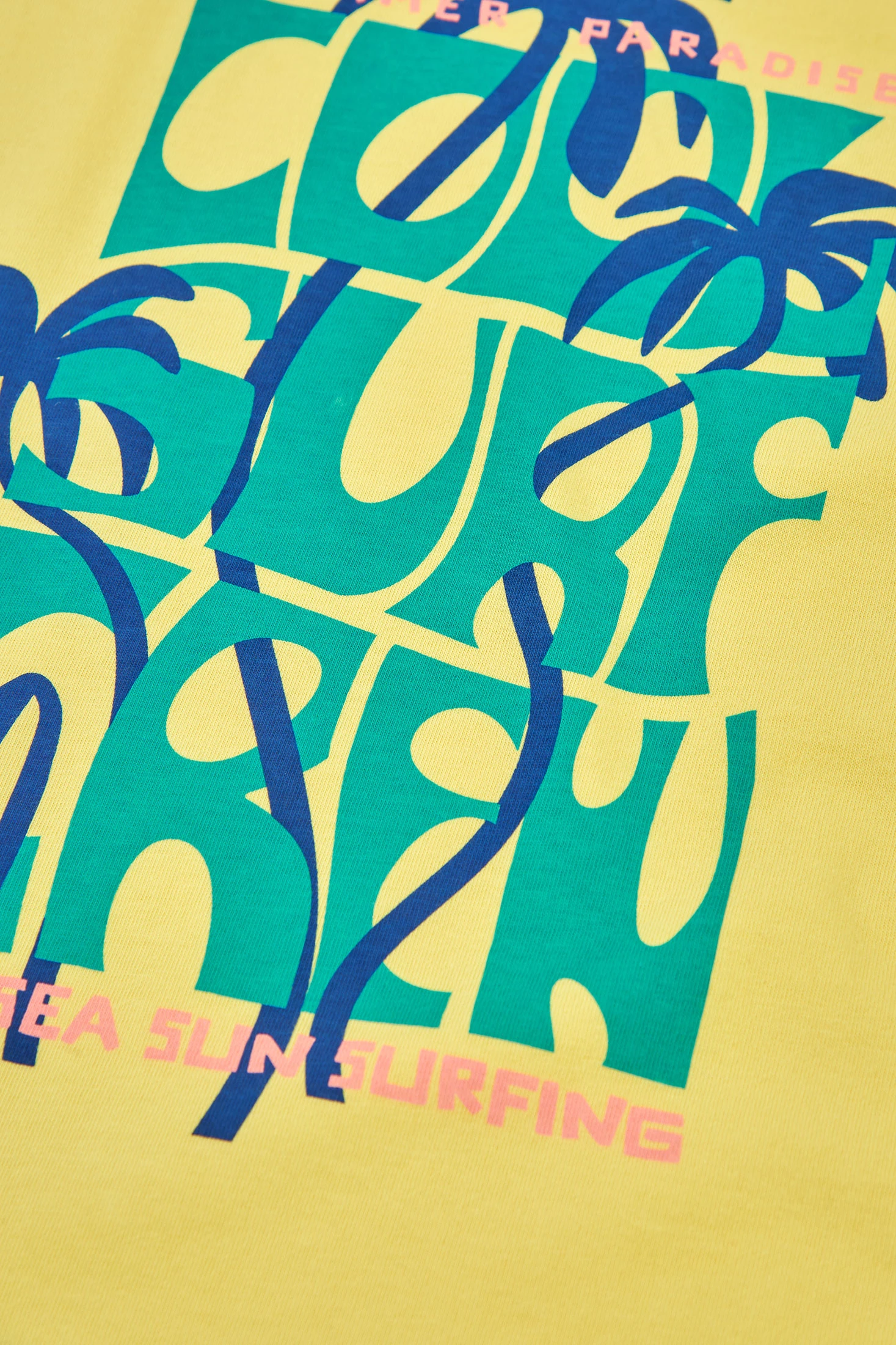 Camiseta menino amarela estampada com palmeiras