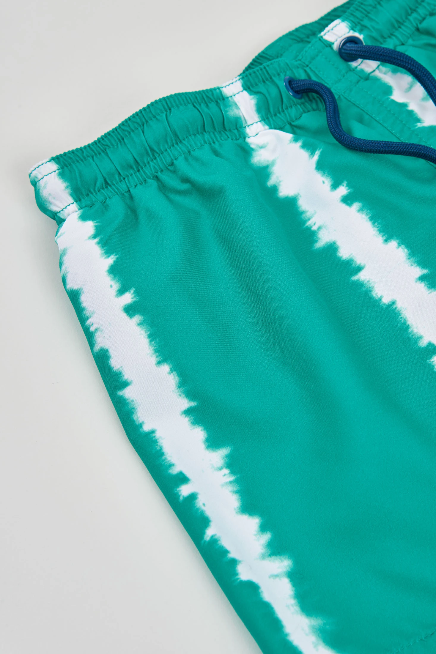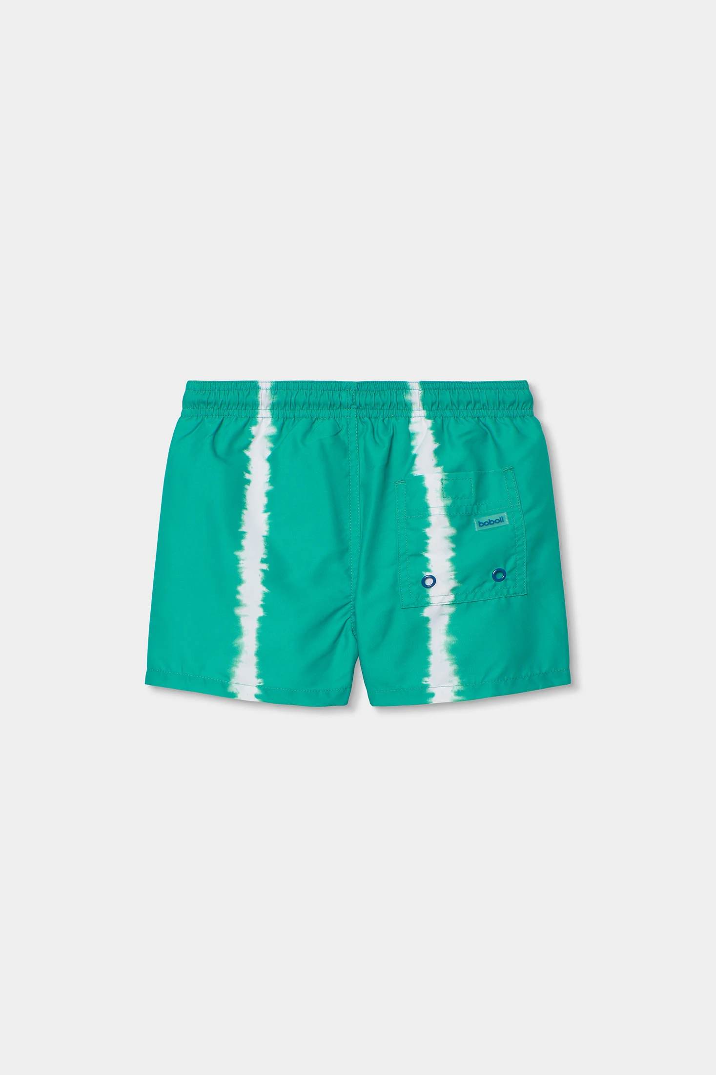 Fato de banho verde para criança confeccionado com tecido reciclado, ideal para desfrutar da água. O seu design apresenta um estampado de linhas brancas verticais que adiciona um toque moderno. A peça é confortável e funcional, adequada para crianças dos 2 aos 14 anos. Com um ajuste elástico e cordão ajustável, garante um bom ajuste enquanto brincam. Perfeito para dias de praia ou piscina, é uma opção sustentável e prática para o verão.