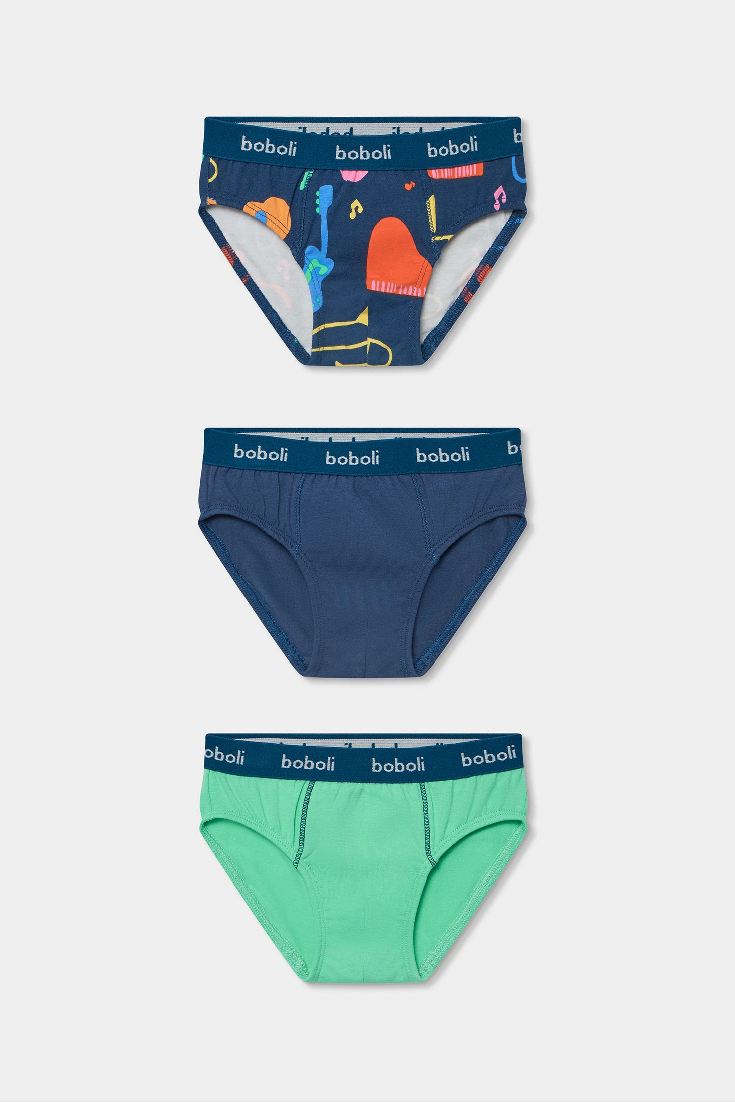 Pack de 3 boxeres estampados para criança oferece conforto e design colorido. Confeccionados em tecido suave e elástico, são ideais para o uso diário. Um apresenta riscas coloridas, outro um estampado com formas e notas musicais, e o terceiro é de um azul sólido. Destinados a idades desde 2 até 14 anos, são perfeitos para acompanhar qualquer atividade. As cores e estampados vibrantes trazem um toque divertido ao guarda-roupa diário. O seu material permite mobilidade e conforto, sendo uma opção funcional e atrativa para os mais pequenos.