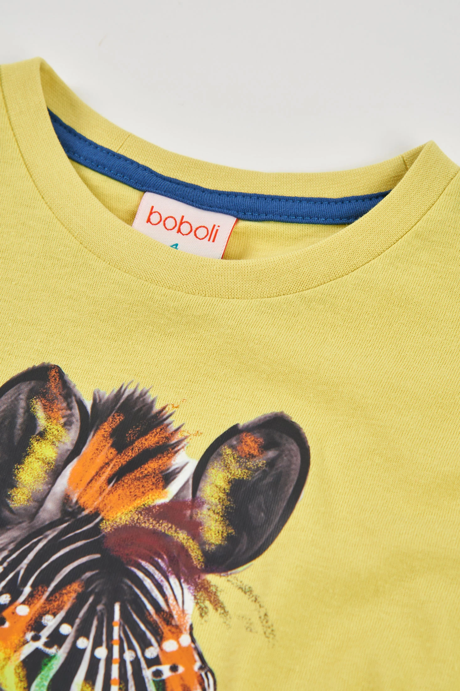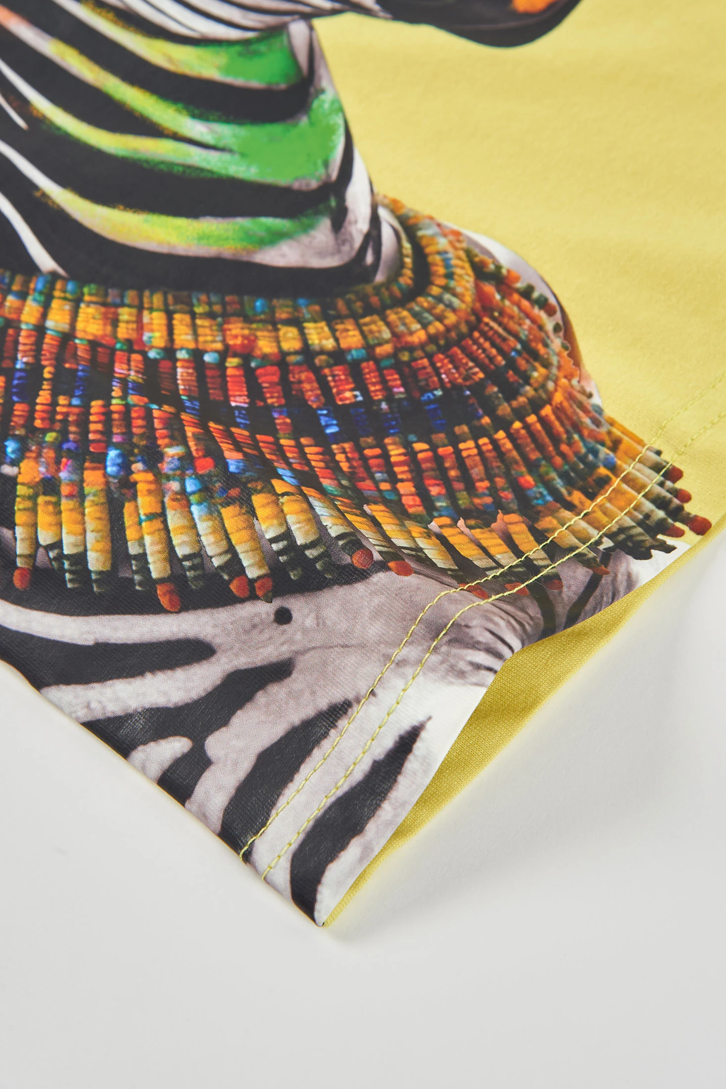 Camiseta de algodão para criança ideal para um look casual e divertido. Num vibrante tom amarelo, apresenta um desenho com uma zebra com detalhes coloridos que adiciona um toque lúdico. O seu tecido de algodão assegura conforto e respirabilidade, perfeita para o uso diário. Os tamanhos disponíveis vão desde os 12 meses até aos 14 anos, adaptando-se a diferentes etapas de crescimento. As mangas curtas e a gola redonda tornam-na uma opção versátil para combinar com jeans ou calções em climas quentes.