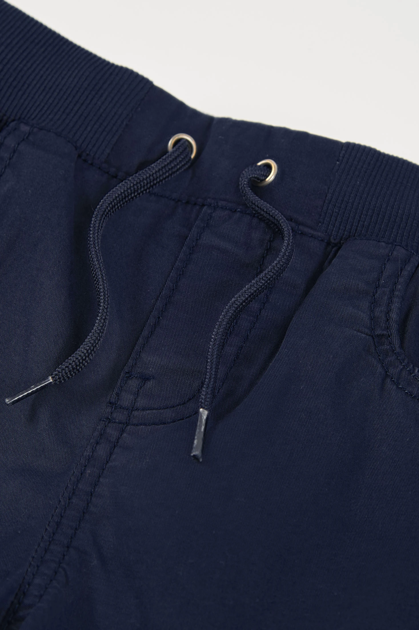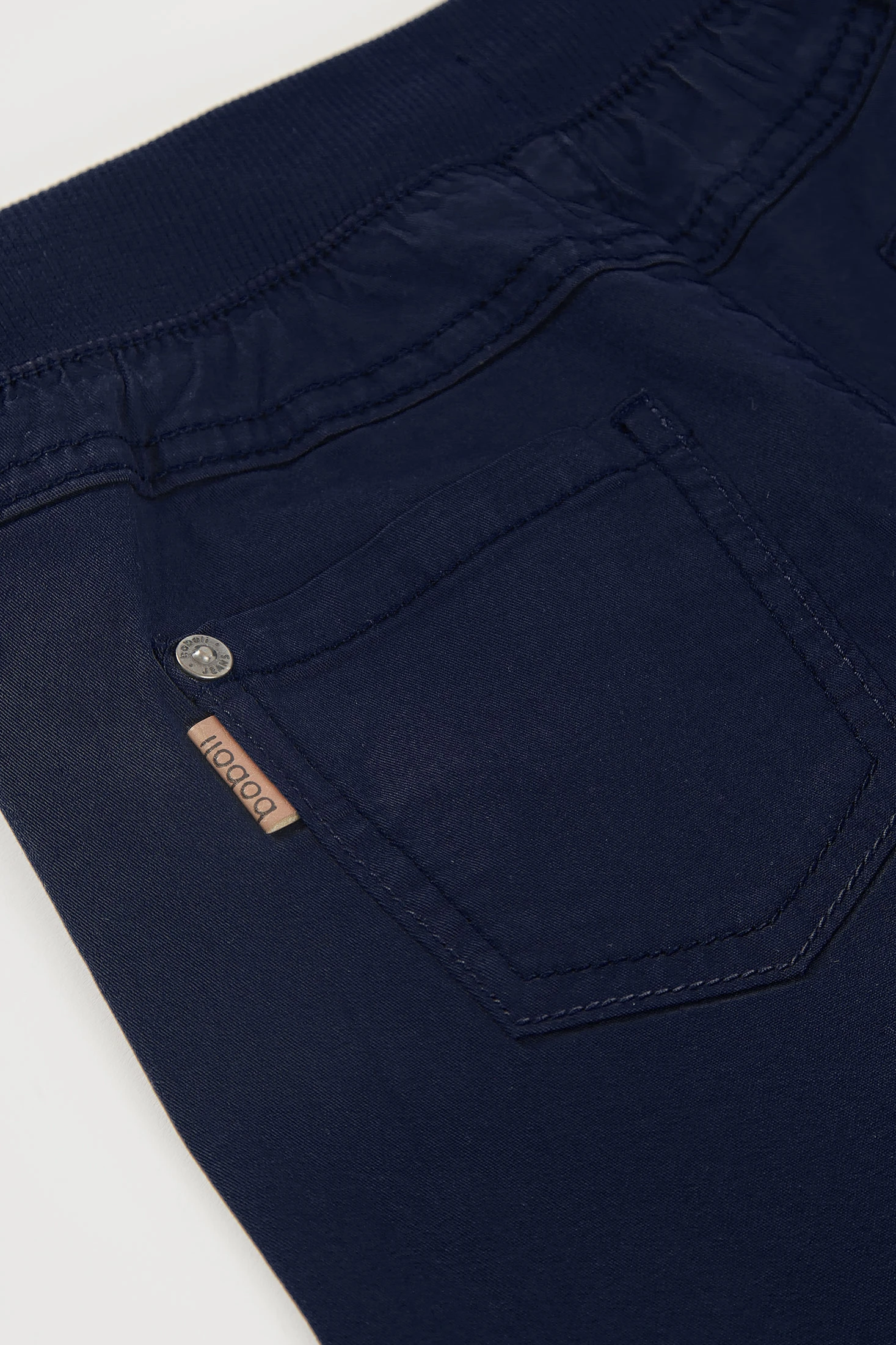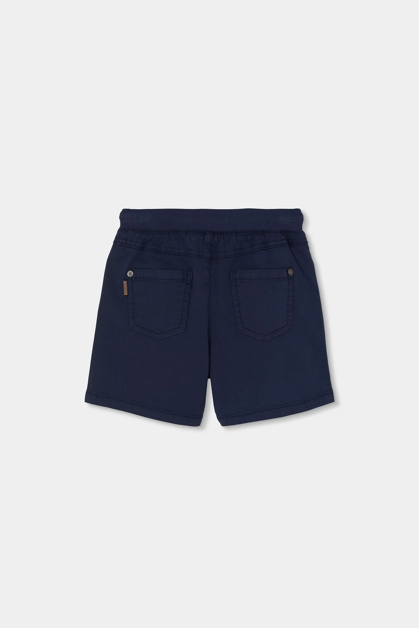 Bermudas de gabardine elástica em azul-marinho, ideais para os mais pequenos, combinam conforto e estilo. O seu tecido suave é perfeito para o verão, enquanto o design simples garante versatilidade. Apresentam uma cintura elástica com cordão ajustável para um ajuste seguro. Sem estampados, a sua cor sólida permite combiná-las facilmente com camisetas e polos. Disponíveis em tamanhos desde 12 meses até 14 anos, são uma opção prática para qualquer ocasião casual.