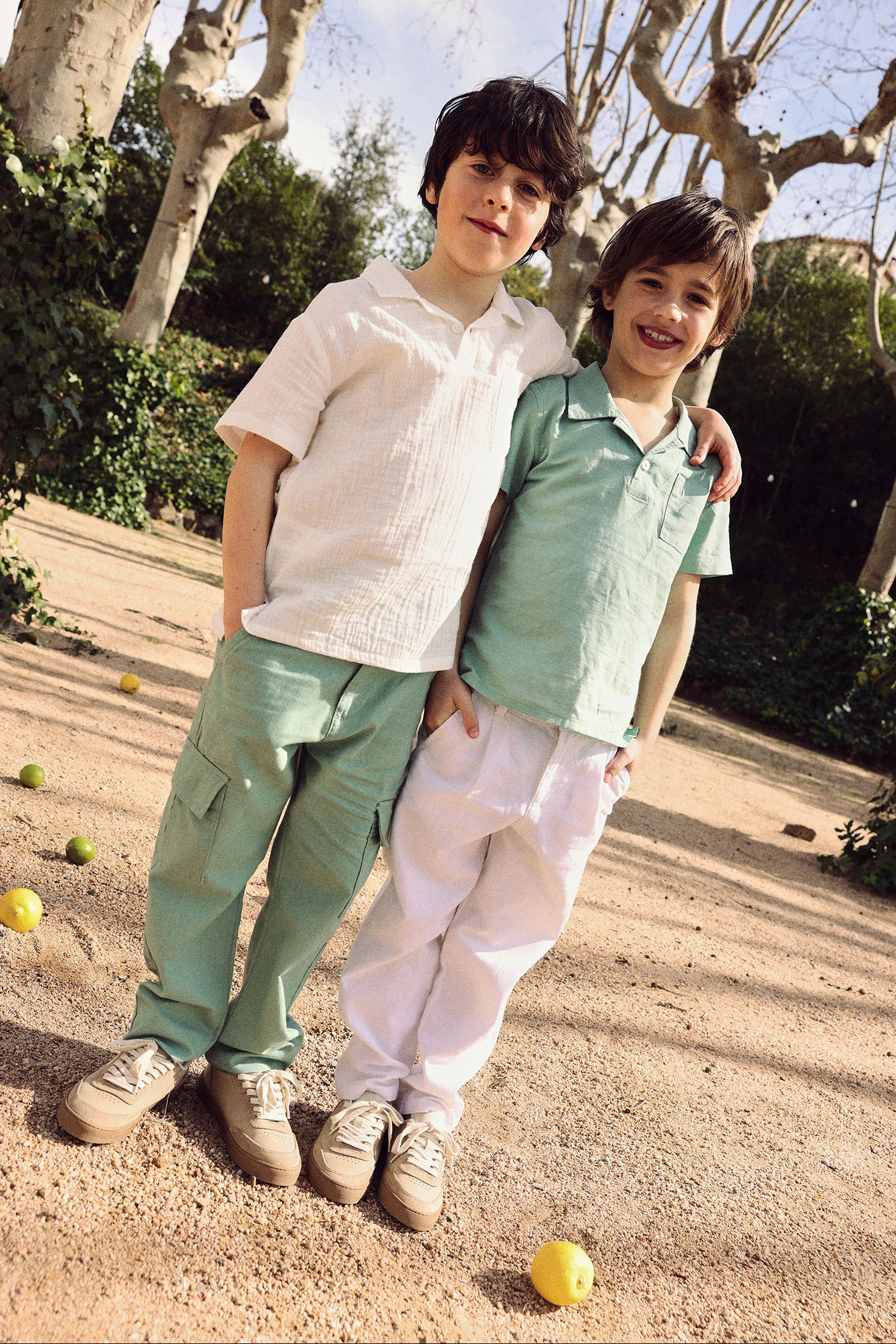 Calça de linho verde para menino, ideal para ocasiões casuais. O seu tecido leve e respirável torna-a perfeita para a primavera e o verão. O design inclui bolsos laterais e um fecho frontal, combinando estilo e funcionalidade. Disponível em tamanhos desde 12 meses até 10 anos, garante um ajuste confortável durante o crescimento. A sua cor azul-marinho torna-a uma peça versátil e facilmente combinável com camisas ou polos de cores claras para um visual elegante e fresco.