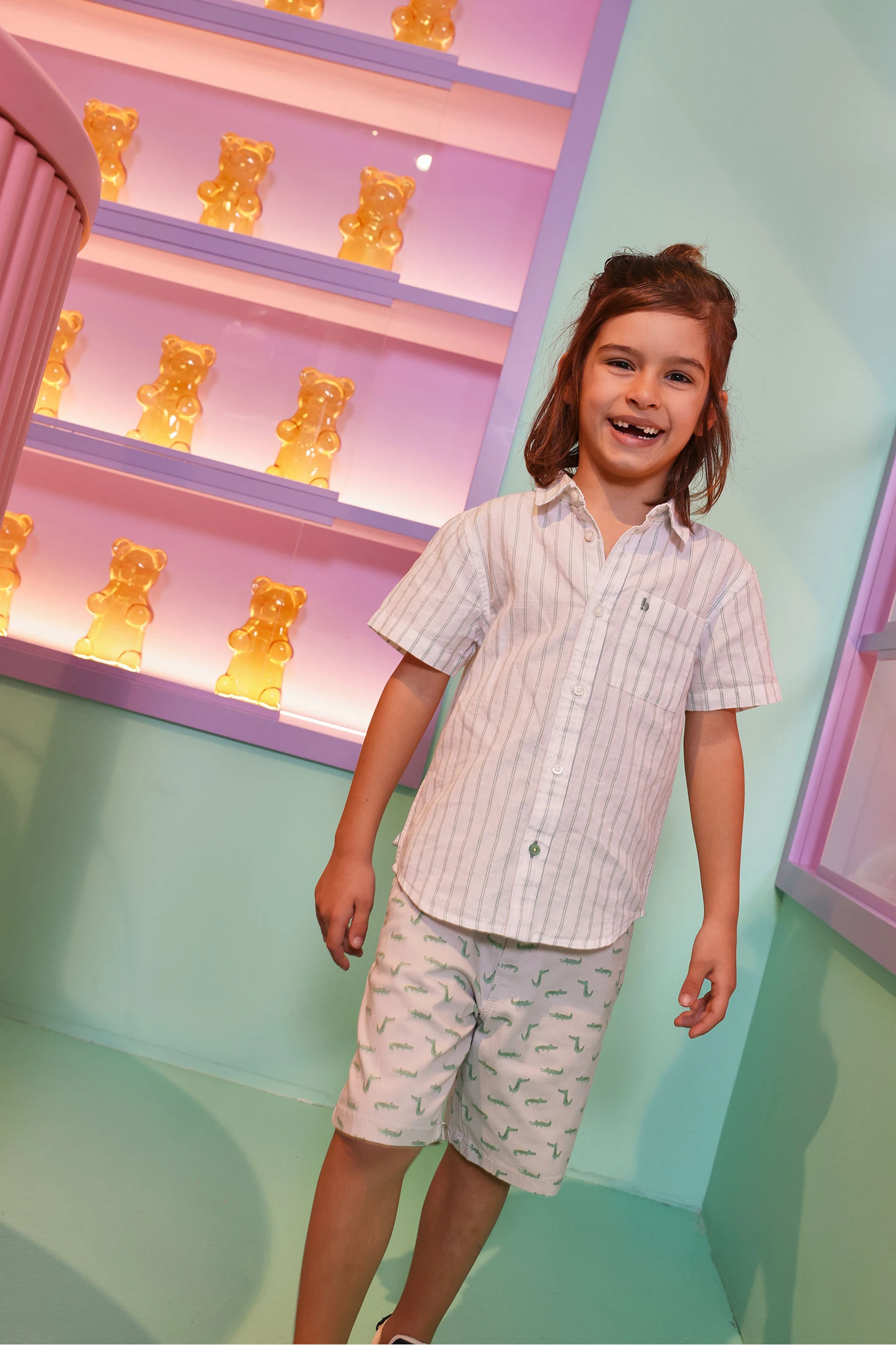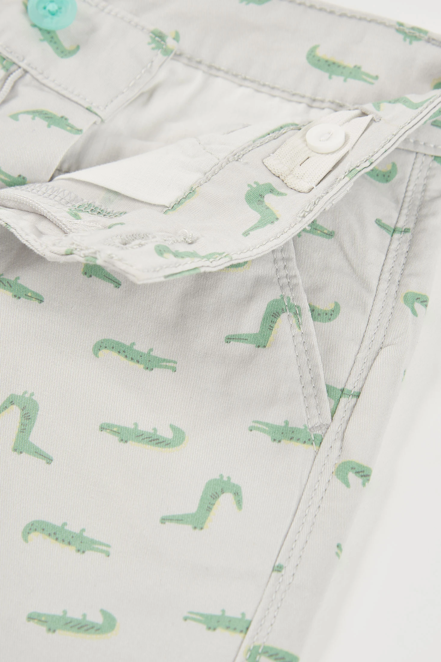 Bermudas de algodão estampadas oferecem conforto e frescor para os mais pequenos. Apresentam um design divertido com pequenos animais em tons verdes sobre um fundo claro, proporcionando um toque lúdico. O material de algodão suave garante liberdade de movimento e é ideal para o uso diário. Disponíveis em tamanhos desde 12 meses até 10 anos. O seu estilo casual torna-as perfeitas para combinar com t-shirts ou polos, proporcionando um look descontraído e alegre para os dias de primavera e verão.