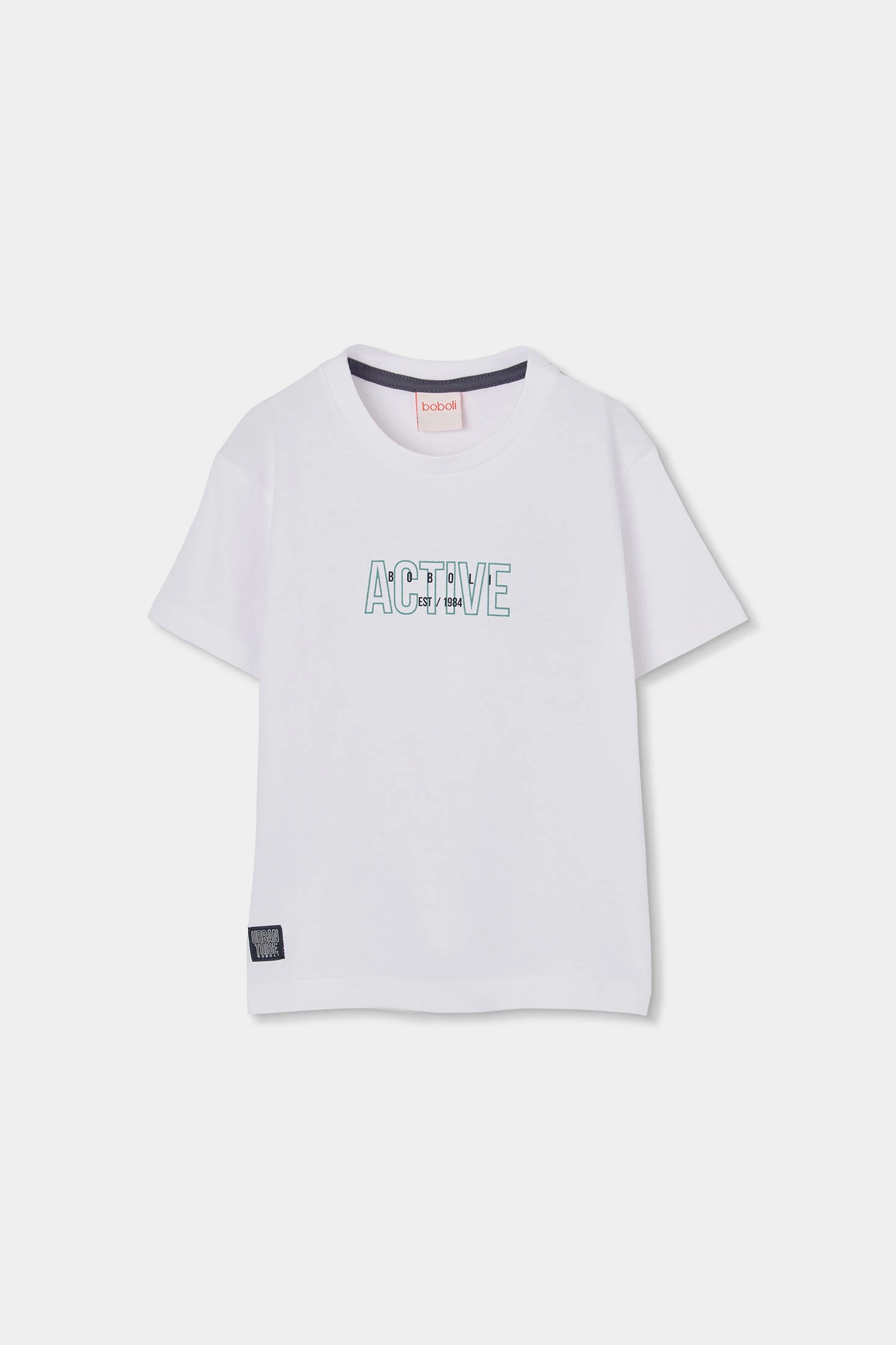 T-shirt de algodão branco para menino ideal para qualquer ocasião. O seu design é simples e confortável, com um texto "ACTIVE" na frente que aporta dinamismo. Fabricada com material de alta qualidade, esta t-shirt é suave e respirável. Disponível em tamanhos desde os 2 até aos 14 anos, adequada para diferentes idades e etapas de crescimento. Perfeita para combinar com calções ou jeans em dias quentes, oferece um estilo casual e moderno. Uma peça básica e versátil para o guarda-roupa de qualquer menino.