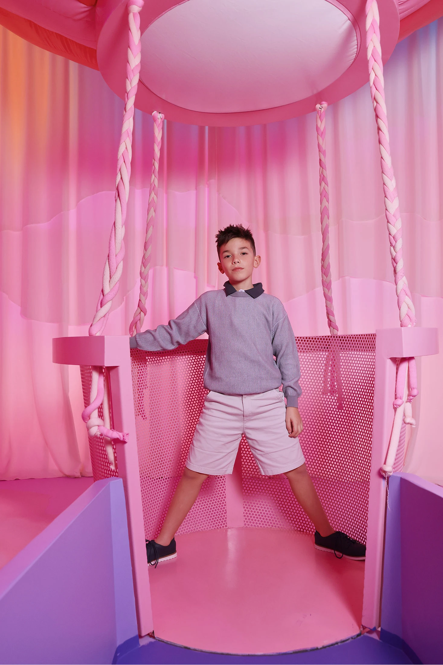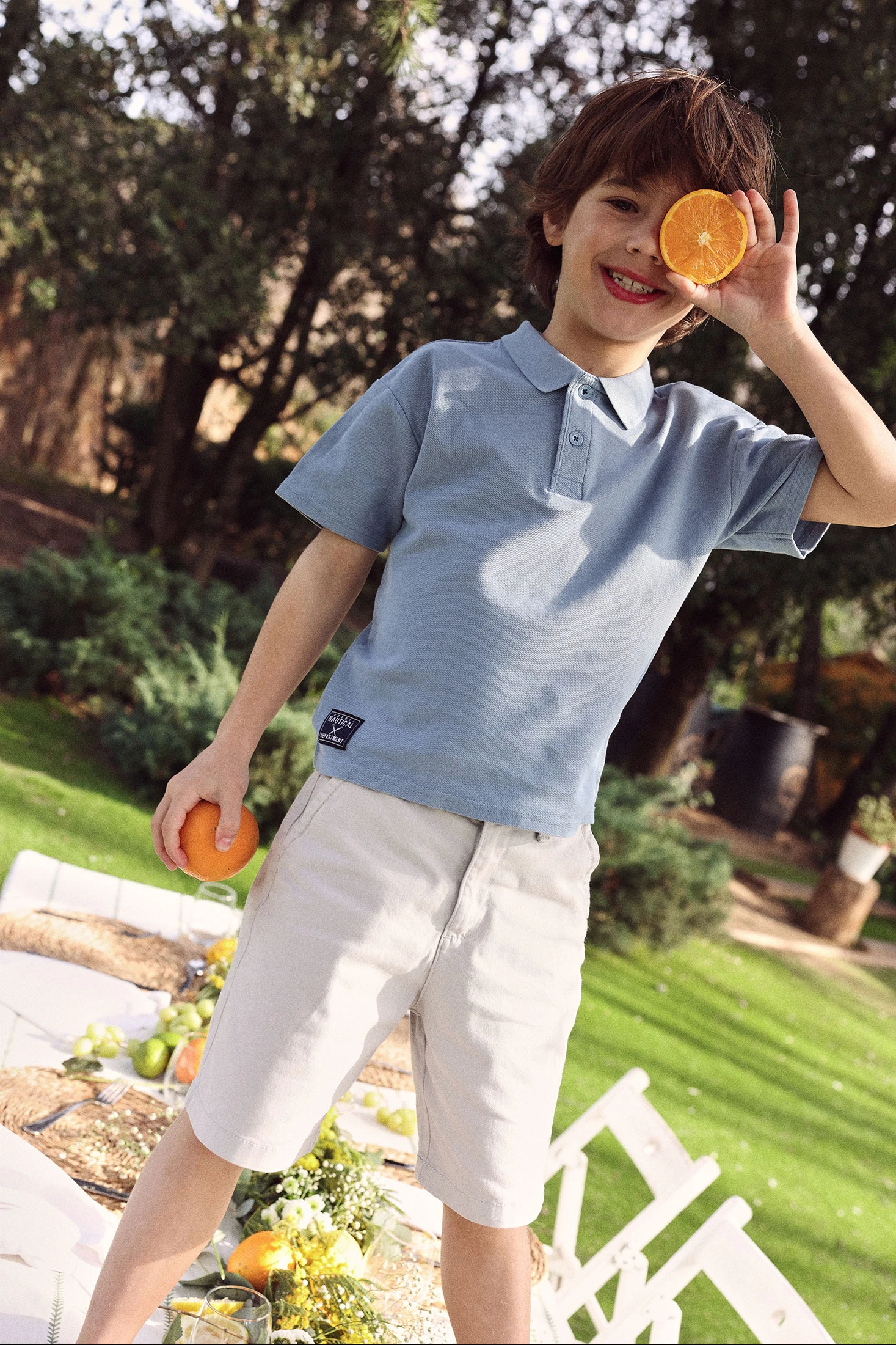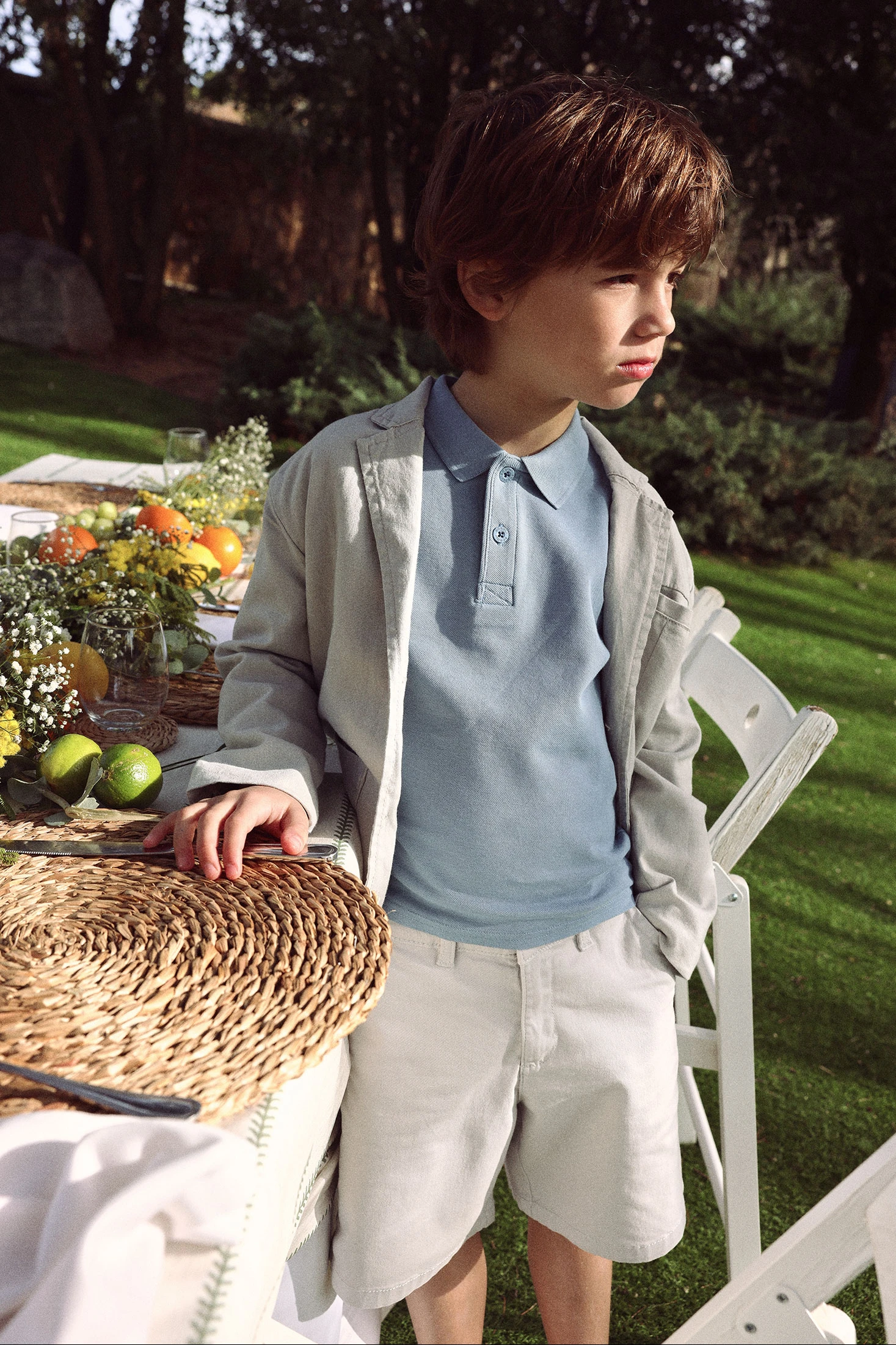 Bermuda bege acinzentada de algodão para menino, versátil e confortável, ideal para o verão. O seu design liso e clássico com bolsos frontais oferece funcionalidade e estilo. Disponível em tamanhos entre 2 e 14 anos, adaptando-se ao crescimento da criança. O tecido de algodão é fresco e leve, perfeito para garantir conforto nos dias quentes. Combina facilmente com camisetas de cores vivas para um visual descontraído e moderno.