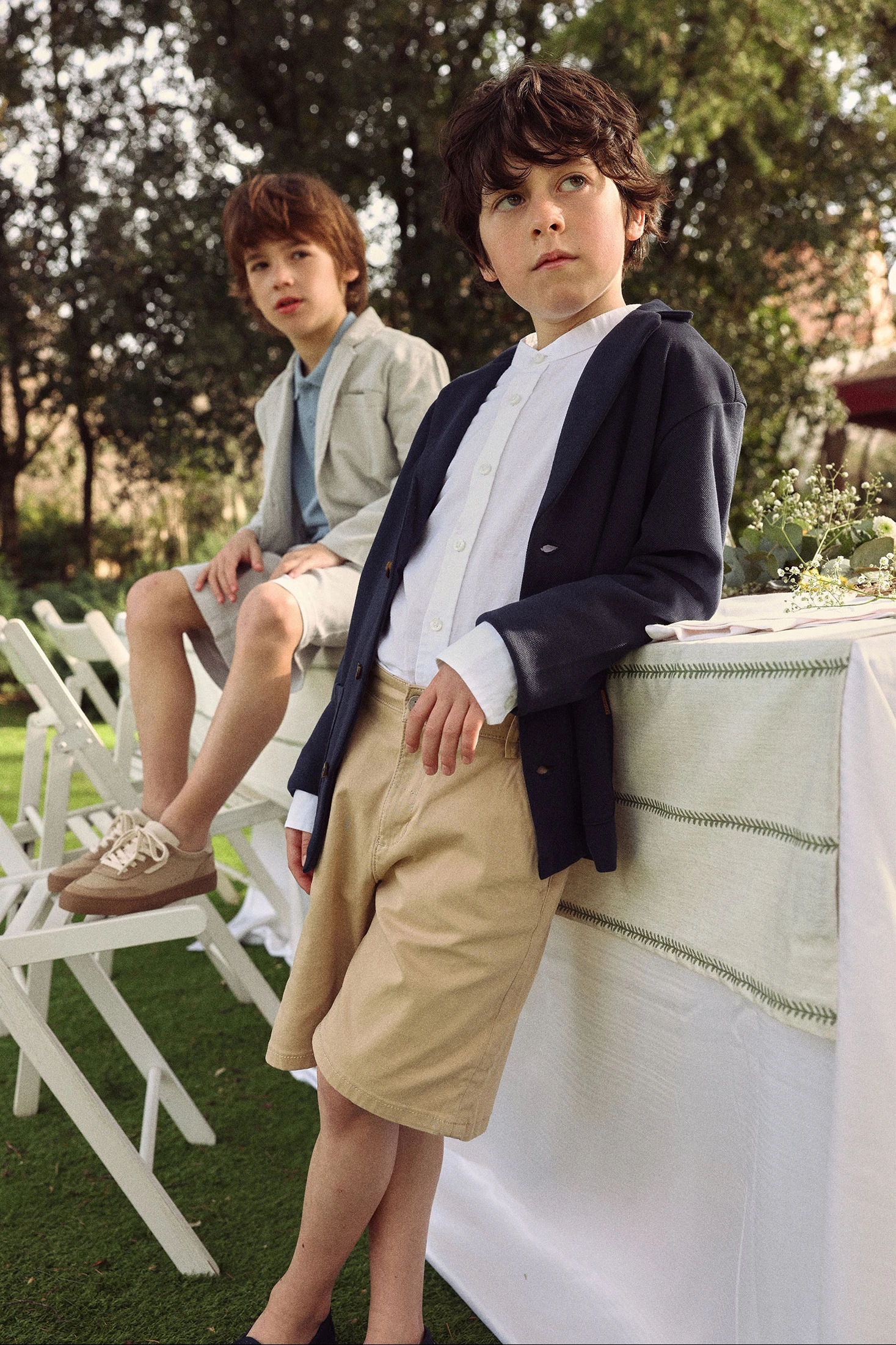Bermudas de cetim bege perfeitas para crianças, combinando elegância e conforto. O seu design simples e de cor neutra torna-as facilmente combináveis com diferentes peças de roupa. O material de cetim proporciona um toque suave e elegante, ideal para ocasiões especiais ou para um look casual com estilo. Disponíveis em tamanhos desde 12 meses até 14 anos, adaptam-se ao crescimento da criança. As bermudas têm um fecho de botão e presilhas para cinto, oferecendo funcionalidade e ajuste perfeito. Uma opção chique para o guarda-roupa infantil que se destaca pela sua versatilidade.
