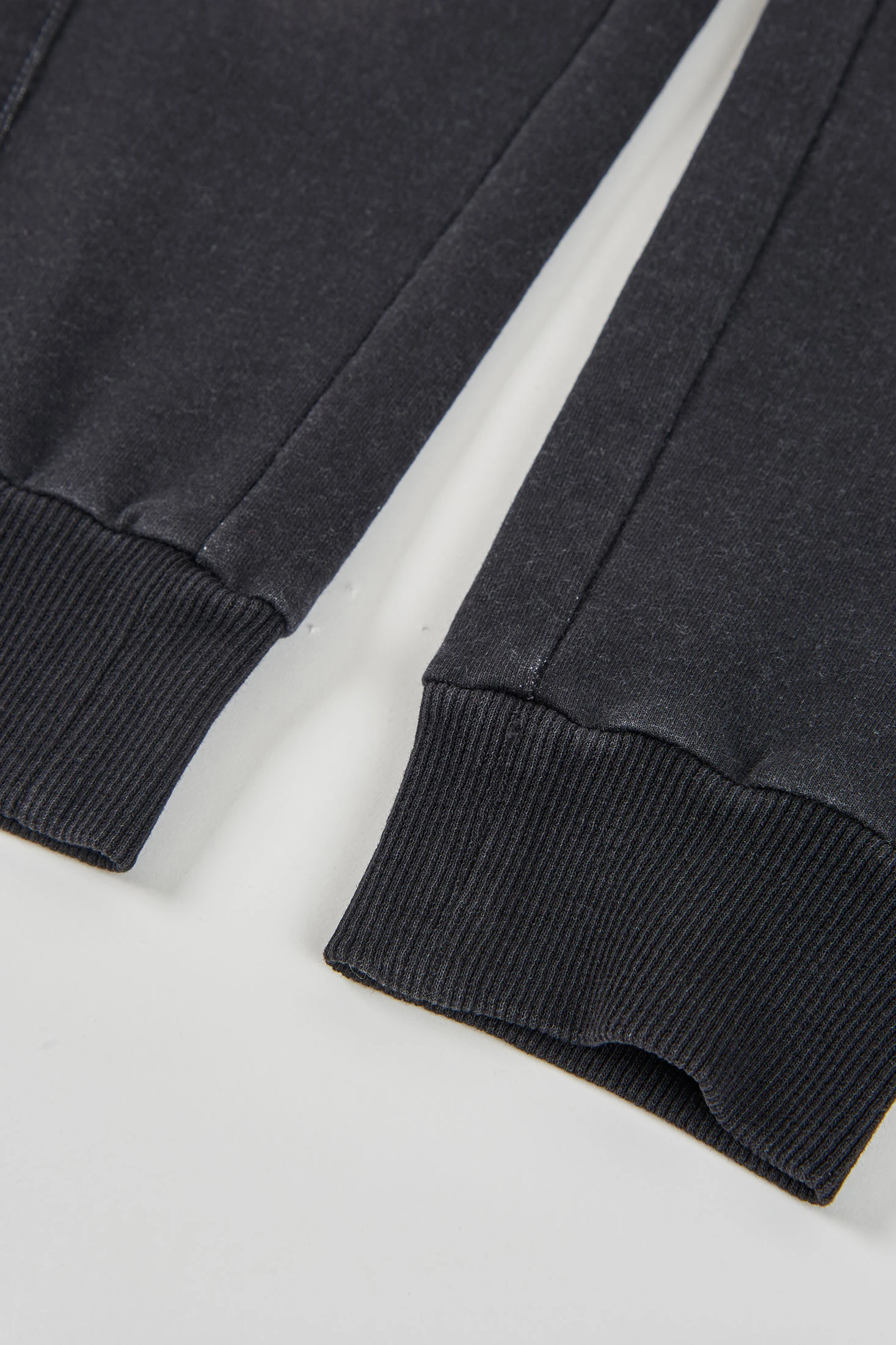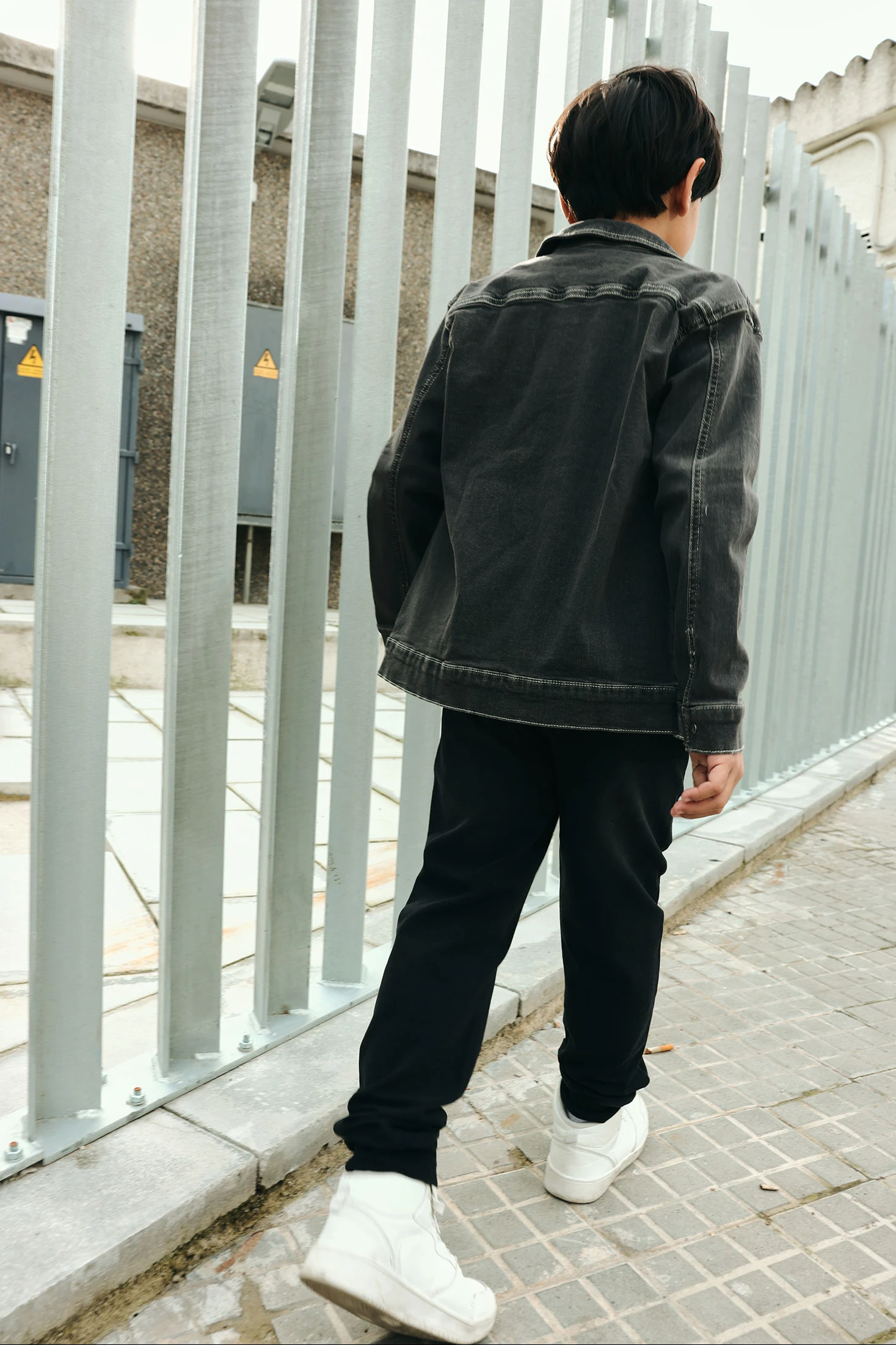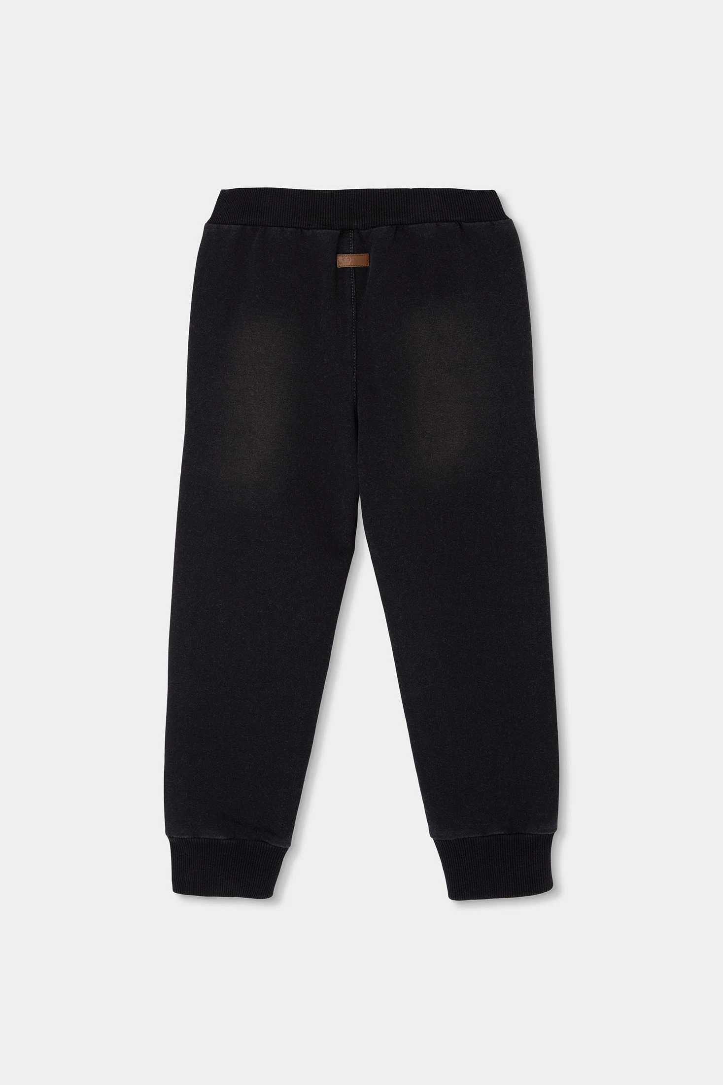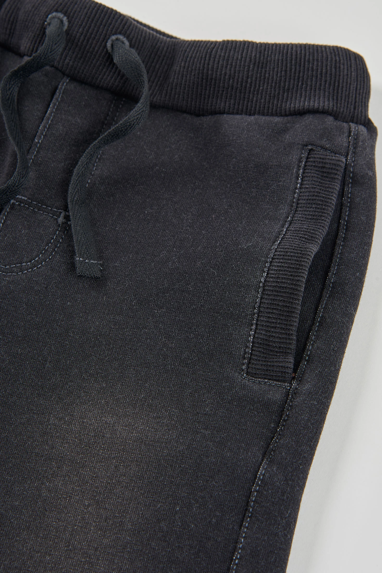 Calças em felpa denim para menino de cor preta, com um estilo confortável e funcional pensado para o dia a dia. O tecido combina o aspeto do denim com a suavidade da felpa, oferecendo um toque agradável e boa elasticidade. Confeccionadas em 78% algodão, 15% poliéster e 7% elastano, garantem conforto, resistência e liberdade de movimento. Uma peça versátil, ideal para uso frequente e fácil de combinar.