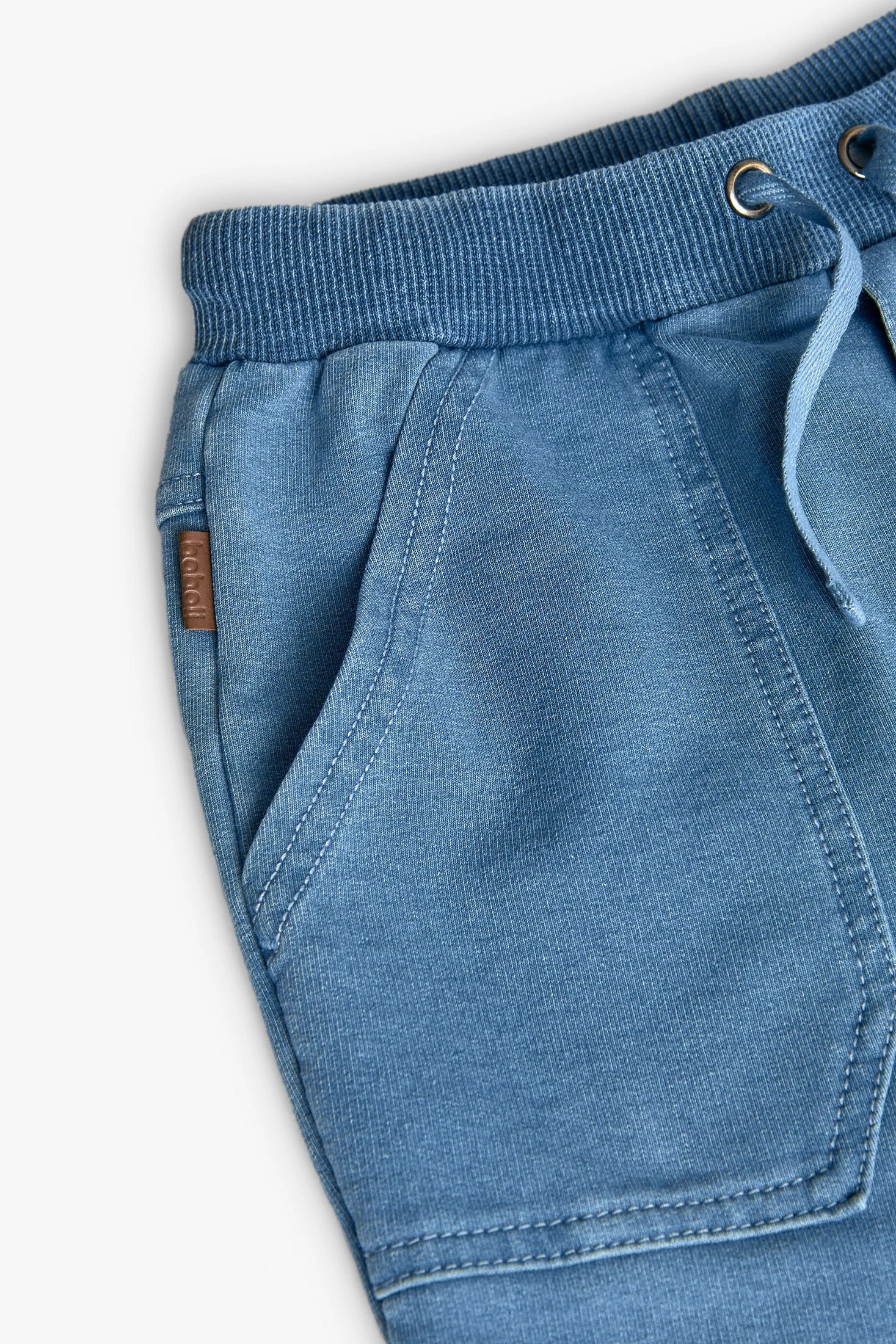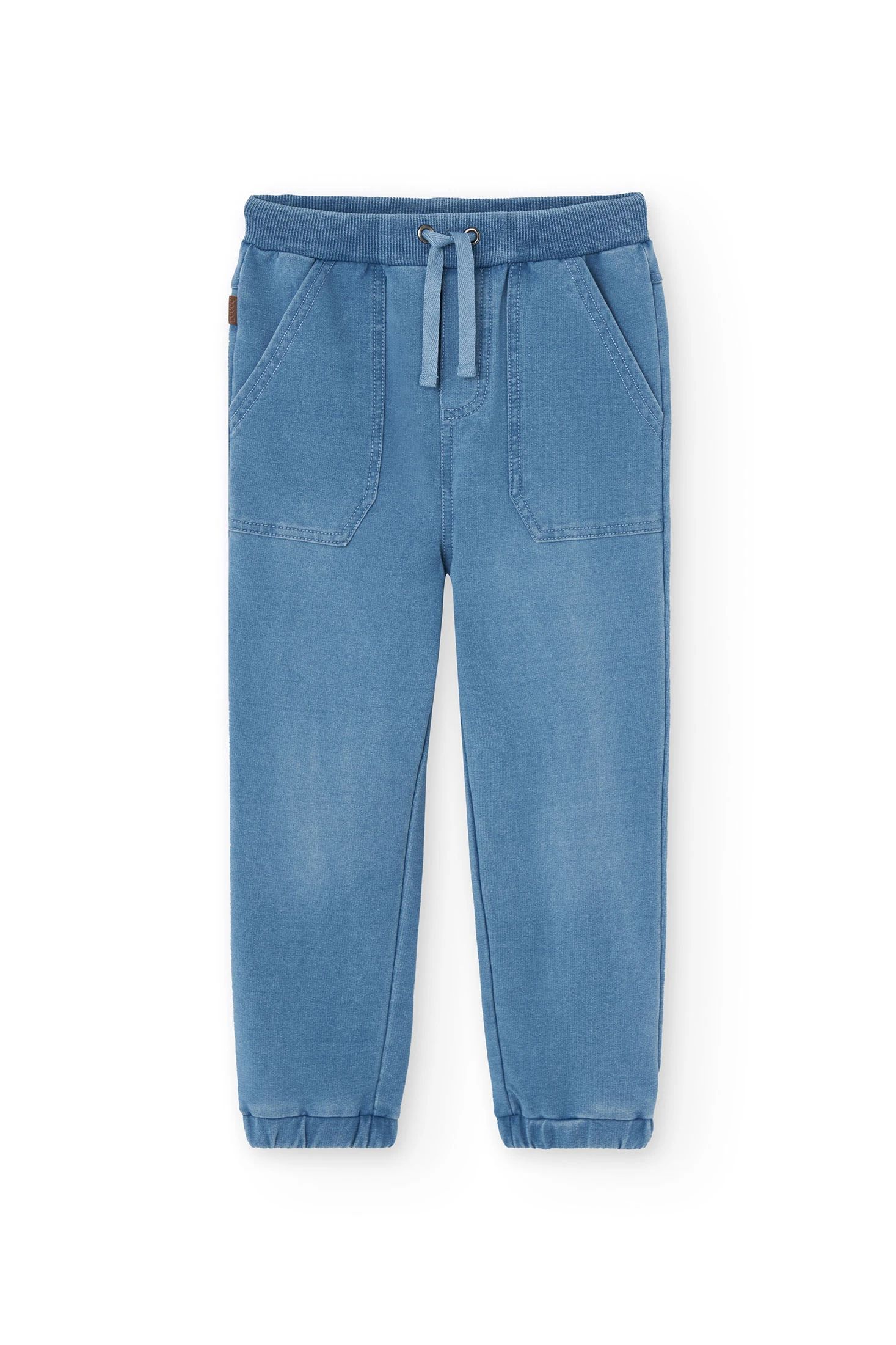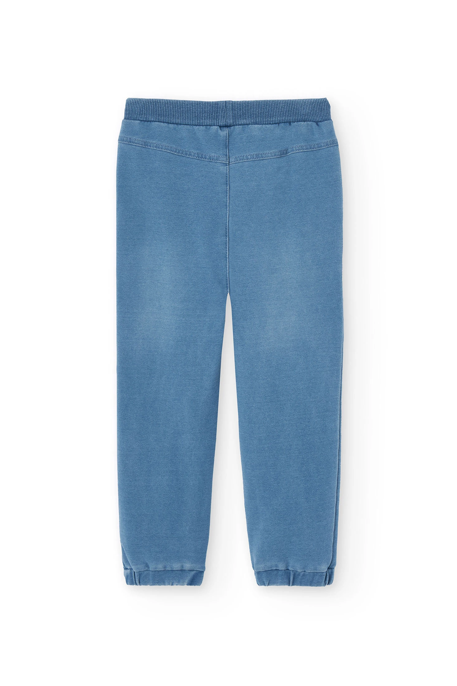 Calças de lã de ganga para rapaz em cor de lixívia, ideais para as estações intermédias. O seu tecido de malha confere-lhe uma textura suave e confortável, perfeita para a pele delicada da criança. A peça de vestuário é em azul BLEACH, uma cor que dá um toque de frescura e alegria. O design é liso, sem decorações, o que facilita a combinação com qualquer outra peça de vestuário. Os tamanhos disponíveis vão dos 4 anos aos 16 anos, abrangendo uma vasta fase da infância. Um par de calças prático e versátil para o dia a dia do seu filho.