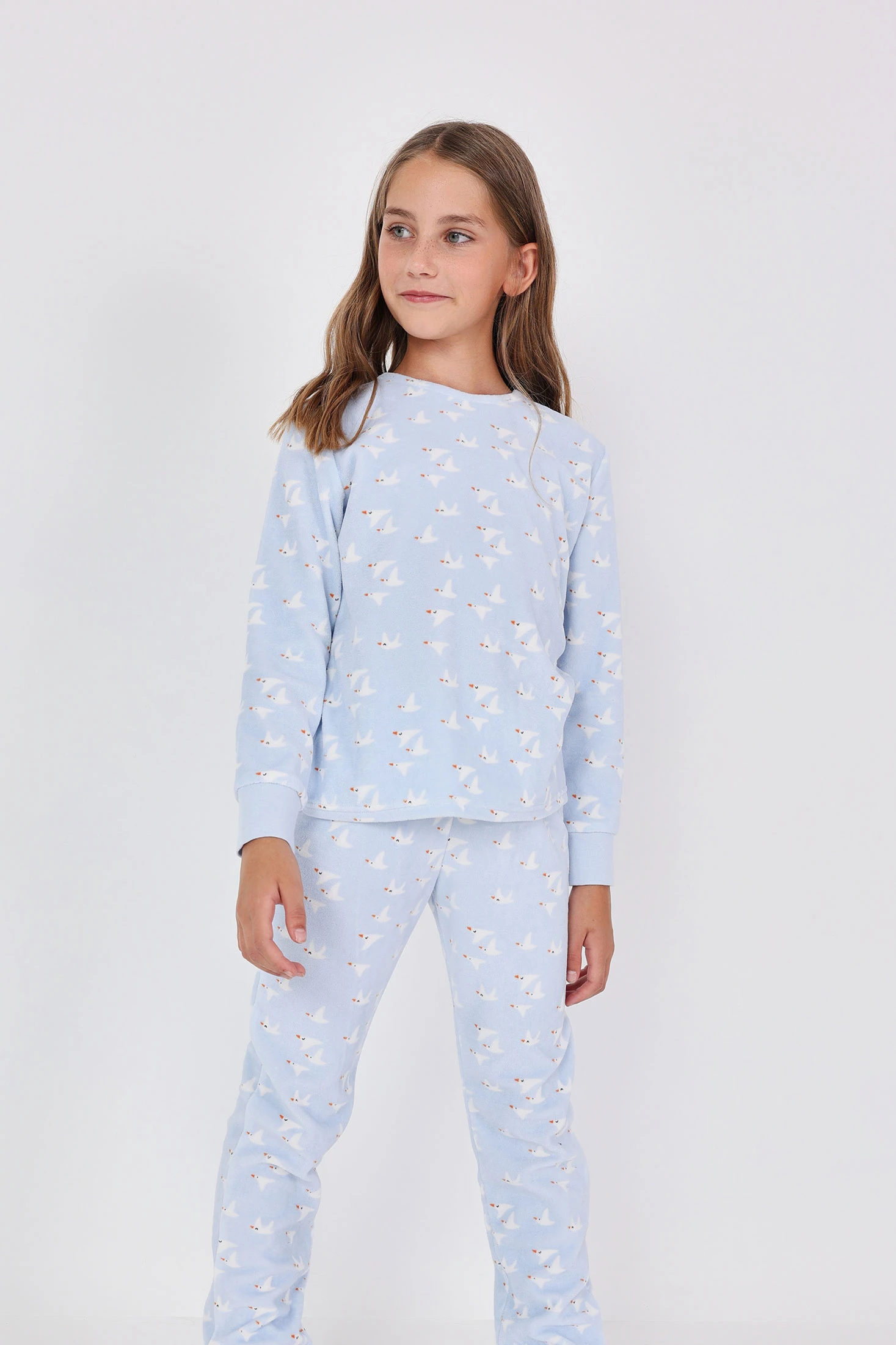 Pijama menina veludo gaivota azul claro