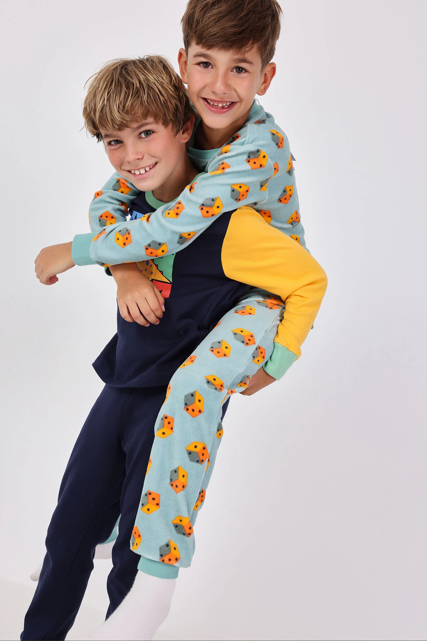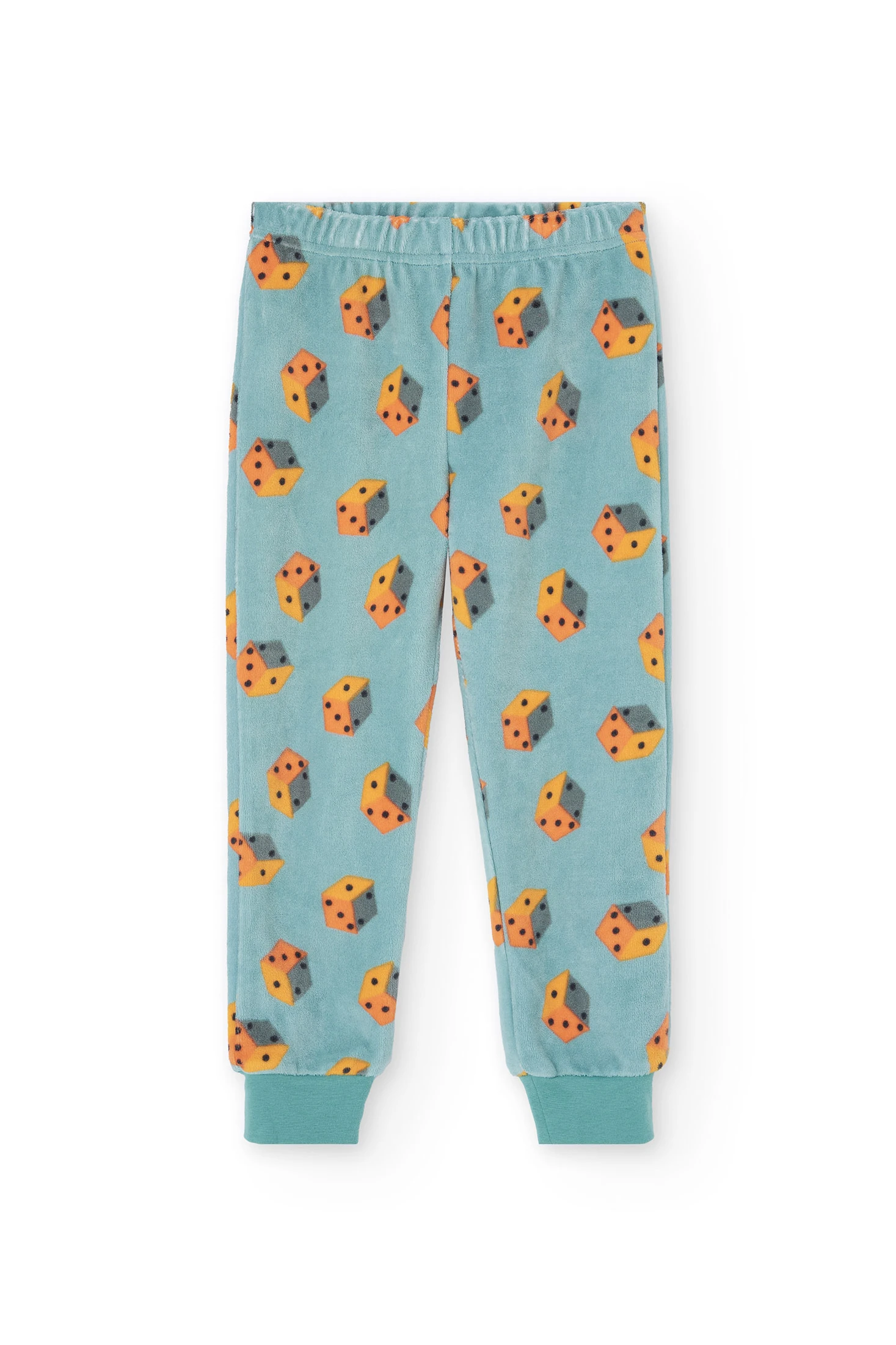 Pijama de malha para menino na cor verde com estampado de dados, ideal para as noites de outono e inverno. Fabricado com um tecido de malha suave que garante conforto e liberdade de movimento, possui mangas compridas e calças para assegurar calor durante o descanso. Disponível em tamanhos de 2 a 14 anos, oferece uma opção divertida e acolhedora para que as crianças durmam tranquilas e cheias de estilo.