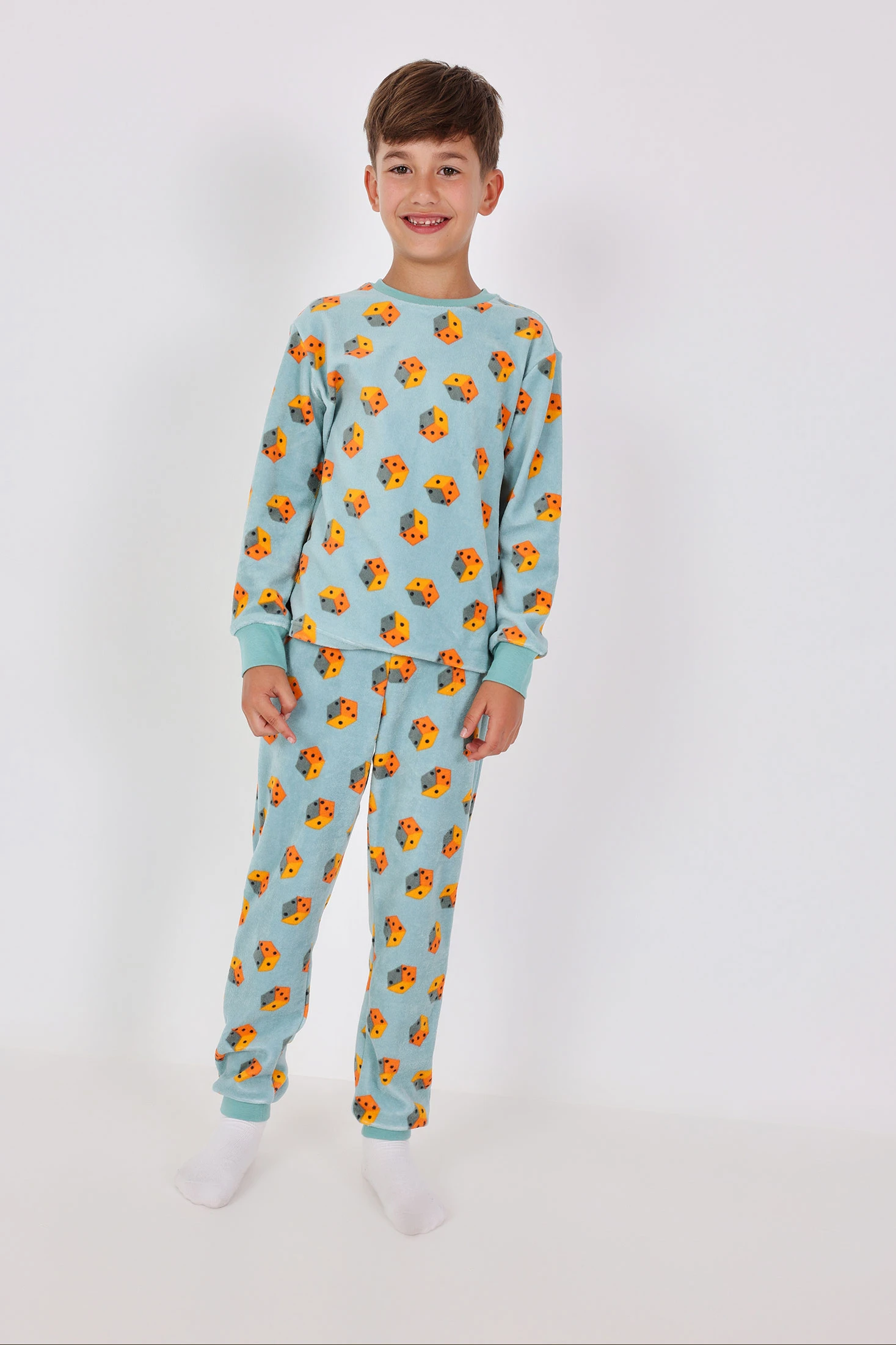 Pijama menino veludo verde dados