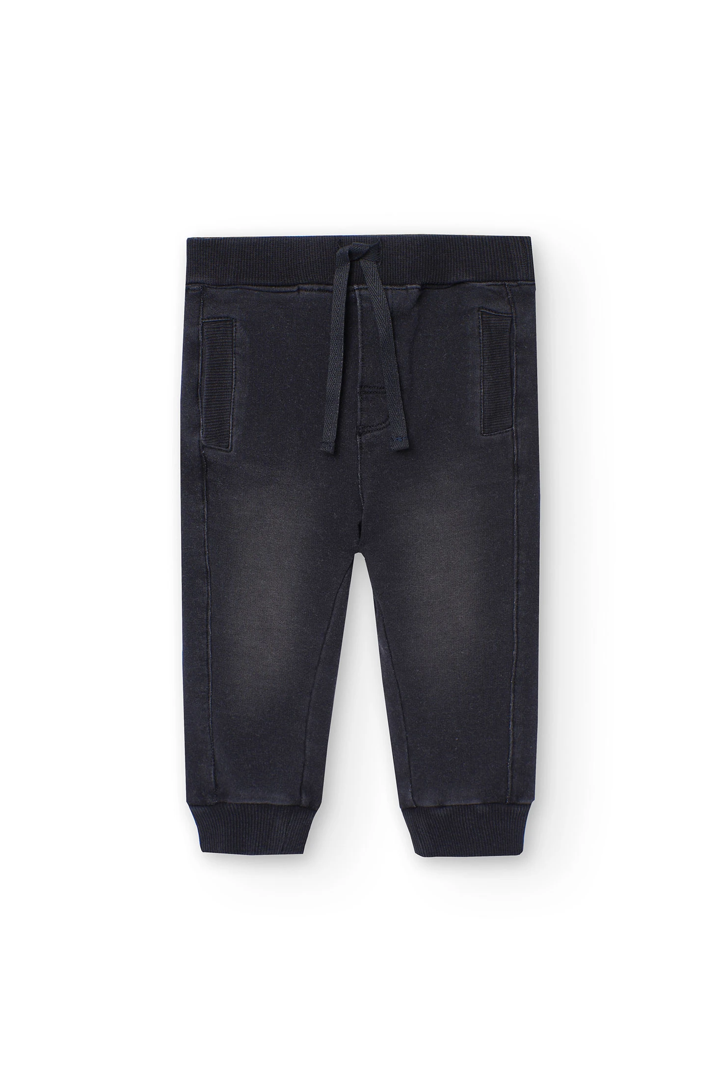 Este es un pantalón de felpa denim para bebé niño, perfecto para el entretiempo. Su tejido de punto le da una textura suave y cómoda, ideal para la delicada piel de los más pequeños. El diseño es liso y de color negro, lo que lo hace fácil de combinar con cualquier prenda. Está disponible en varias tallas, desde los 12 meses hasta los 8 años, por lo que se adapta al crecimiento de tu hijo. Este pantalón es una opción práctica y versátil para el vestuario de tu niño.