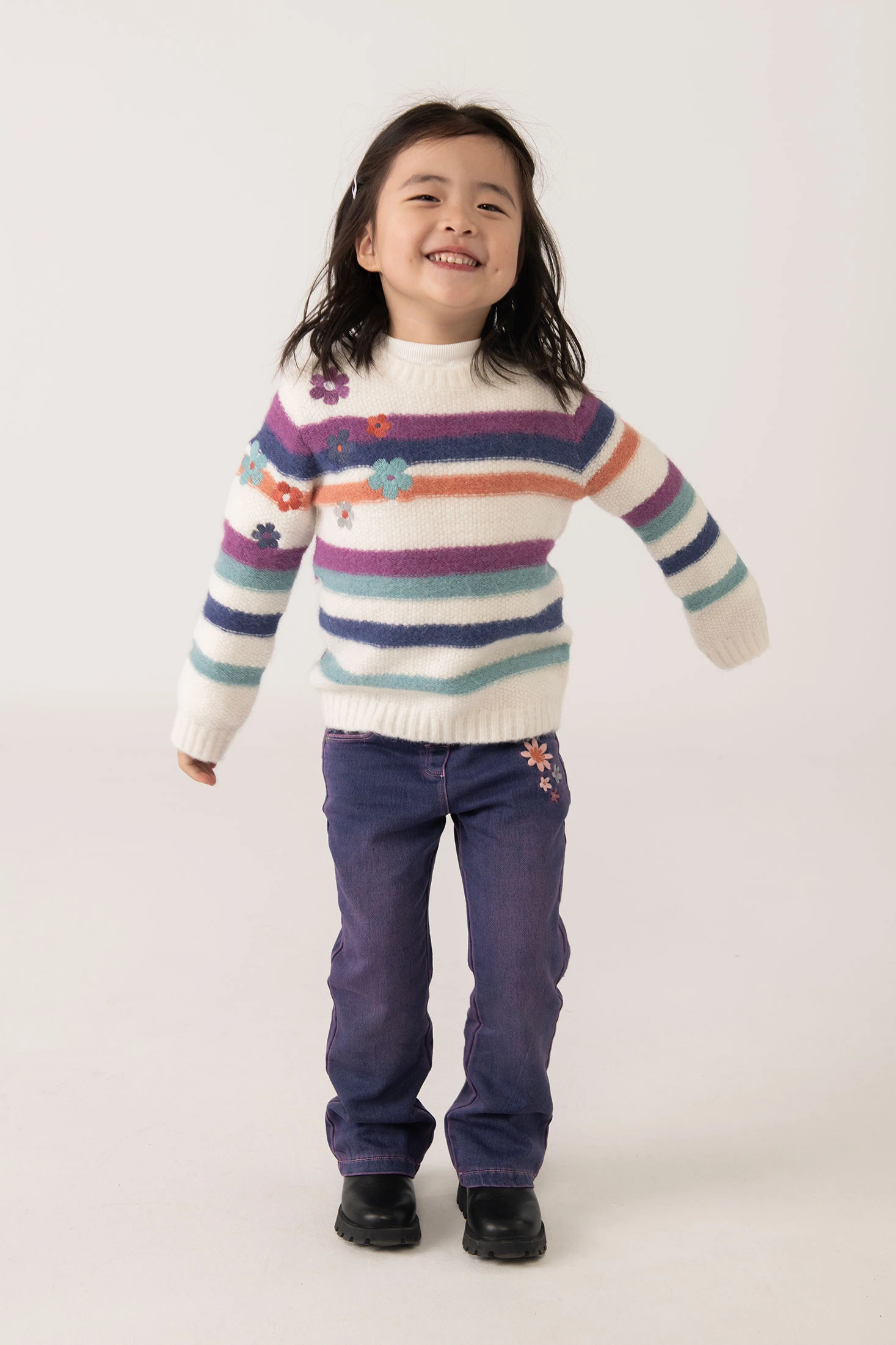 Camisola de malha branca com flores, imprescindível para meninas nas temporadas de outono e inverno. Confeccionada com um tecido suave, oferece conforto e calor durante os dias mais frescos. Os seus delicados detalhes florais acrescentam um toque encantador e elegante, perfeito para múltiplas ocasiões. Possui gola redonda e mangas compridas, garantindo conforto. Disponível em tamanhos de 2 a 10 anos, combina maravilhosamente com jeans ou saias, proporcionando um look estiloso e fresco para qualquer saída informal.