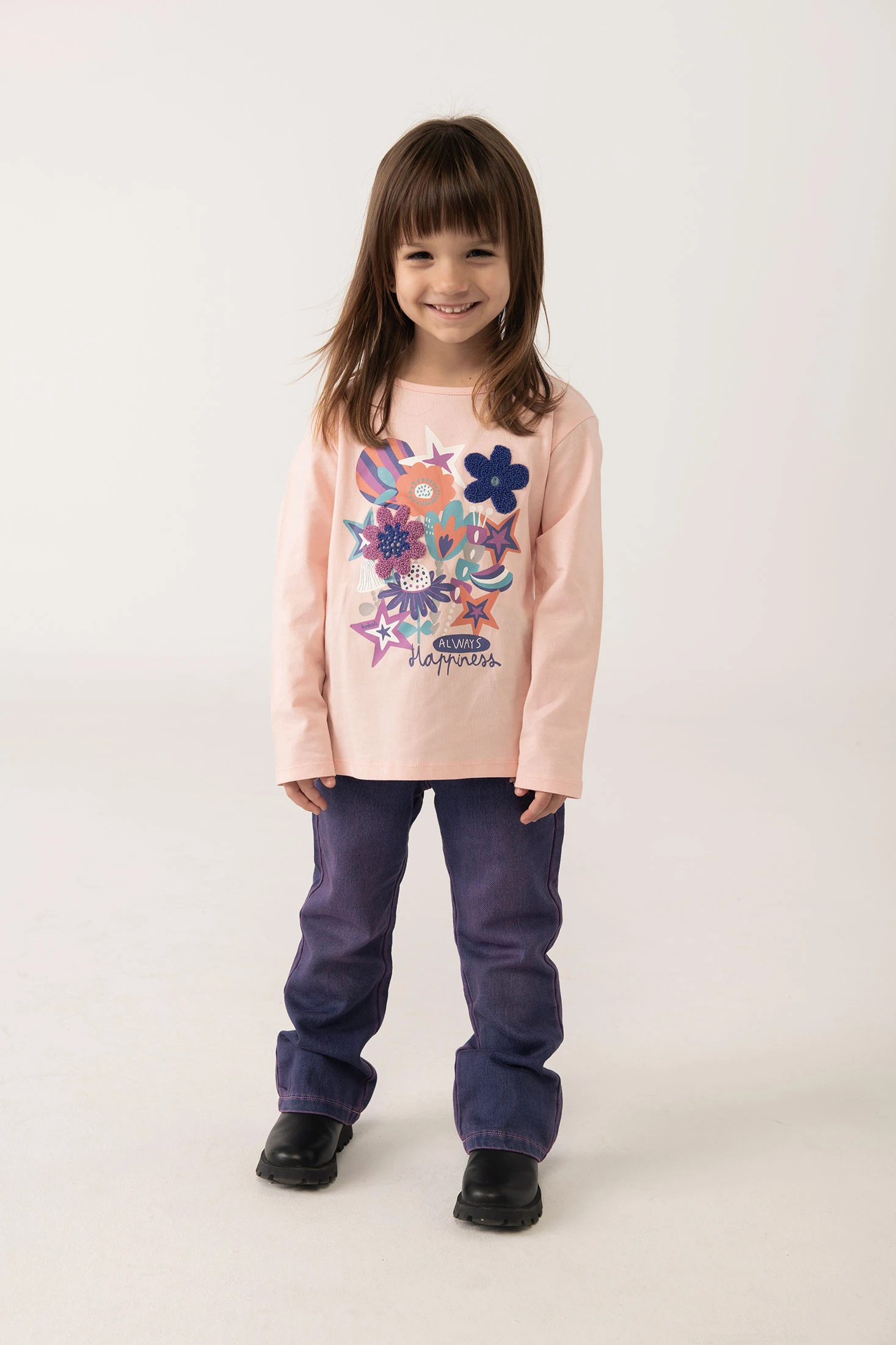 Calças de ganga menina azul flores